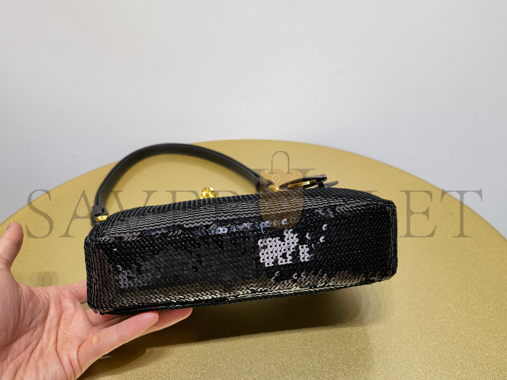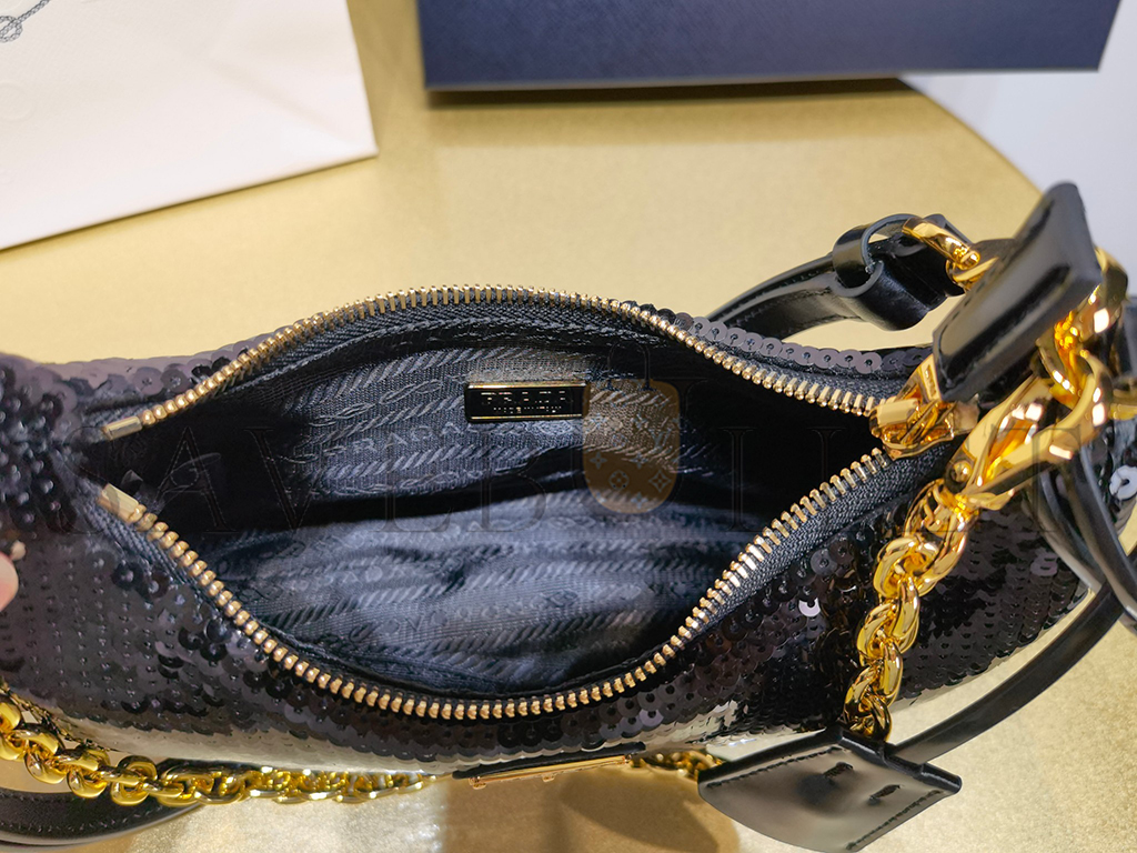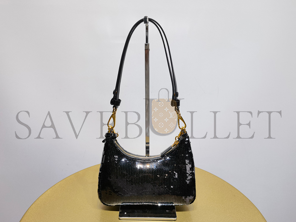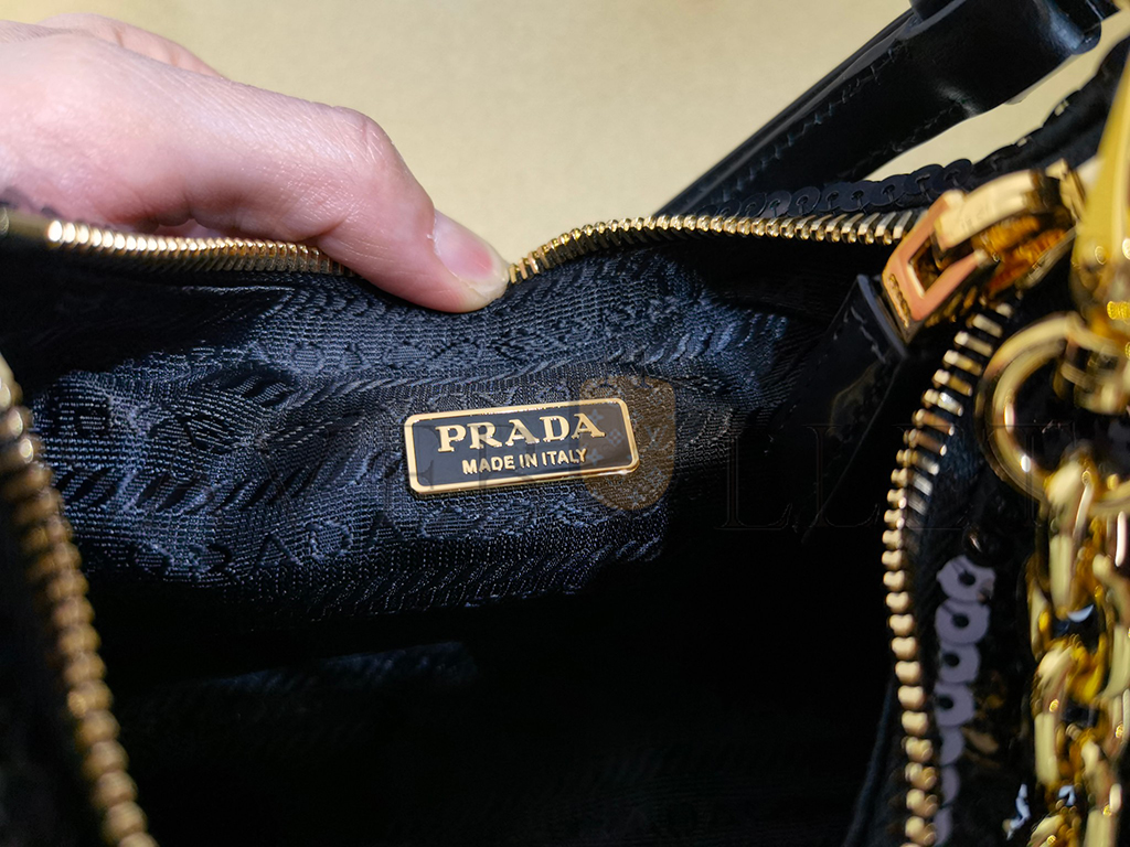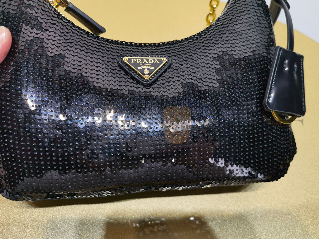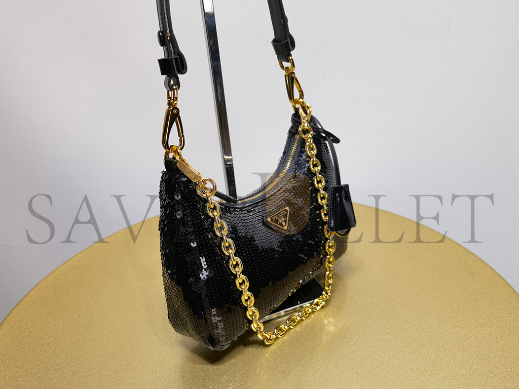 PRADA LEATHER HANDBAG SHOULDER BAG WOMEN'S BLACK 1BC204 (22*18*6cm)