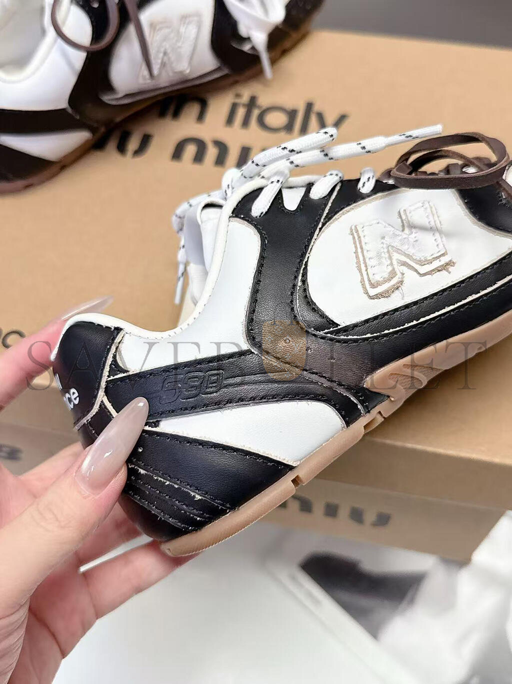 MIU MIU X BALANCE 530 SL EMBELLISHED CALFSKIN SNEAKERS 5E165E