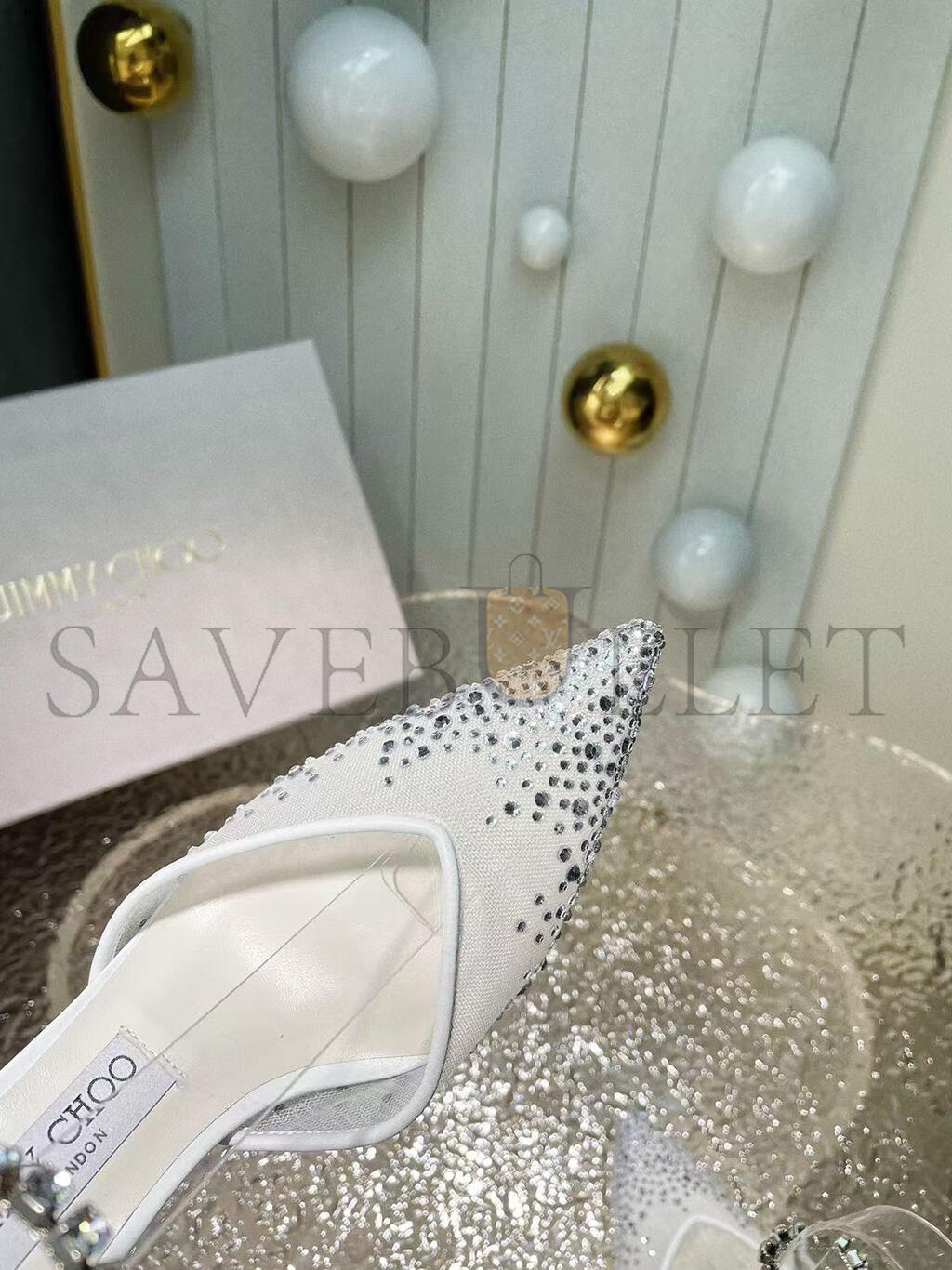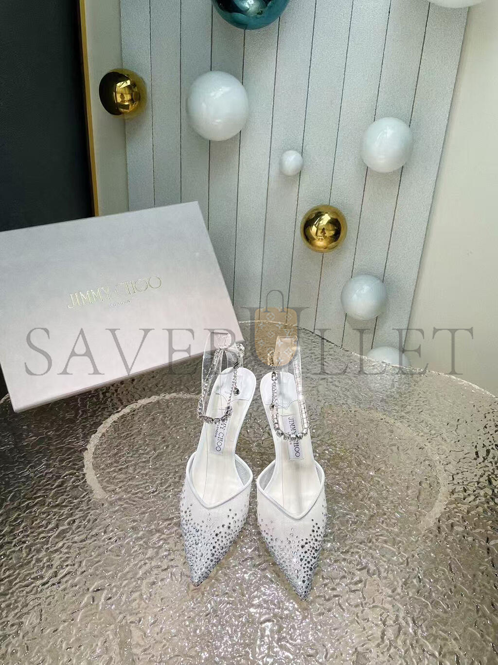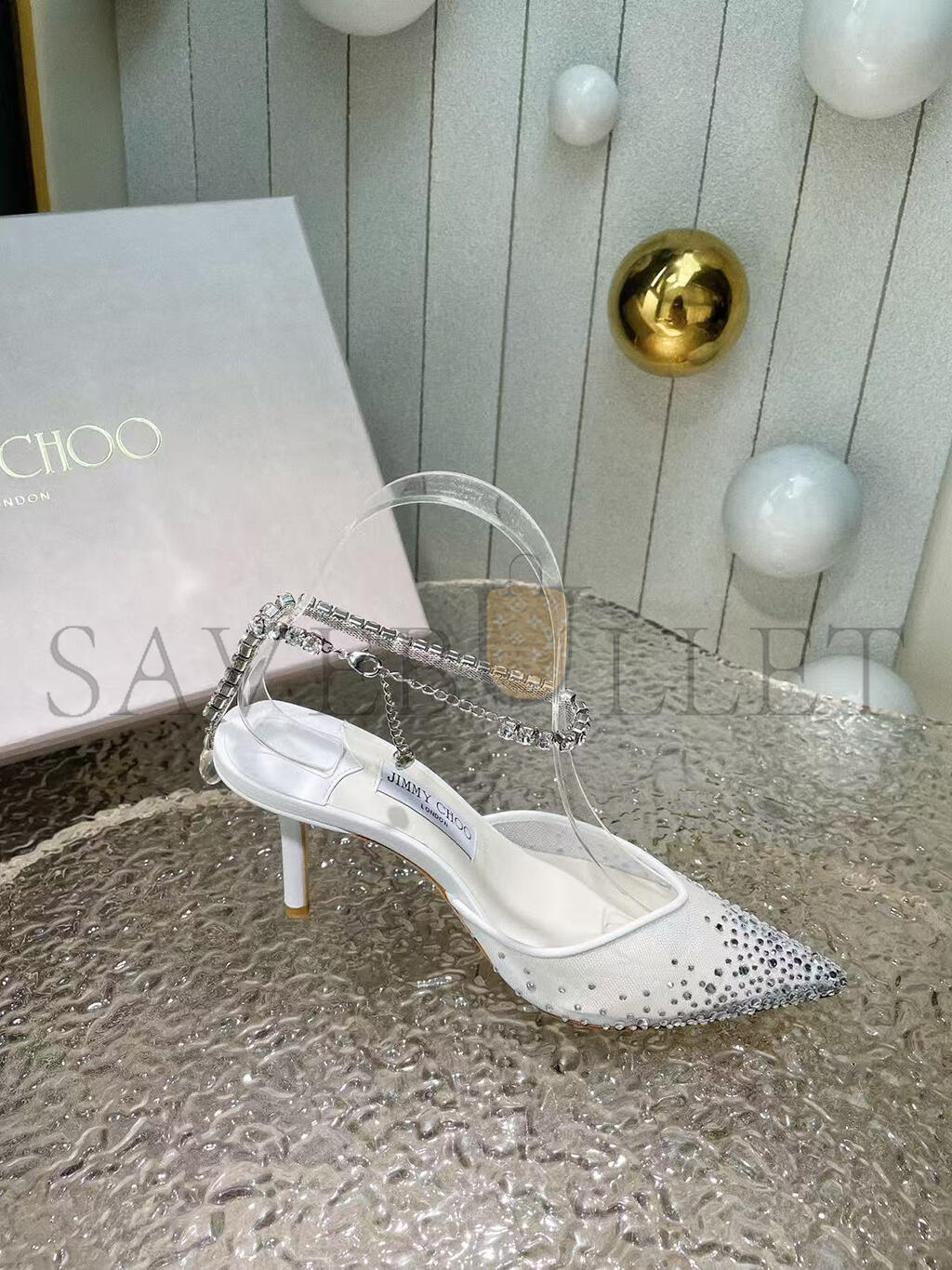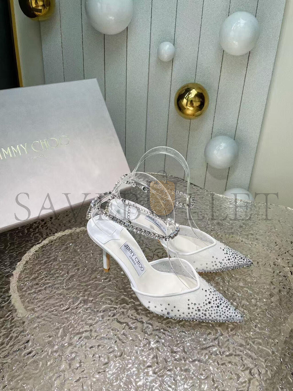 JIMMY CHOO SAEDA 85 WHITE CRYSTAL MESH PUMPS 230562