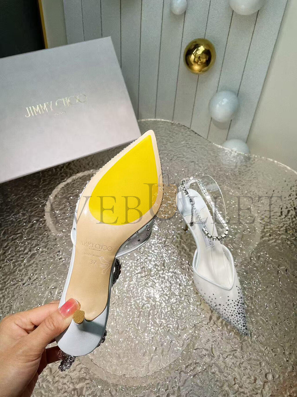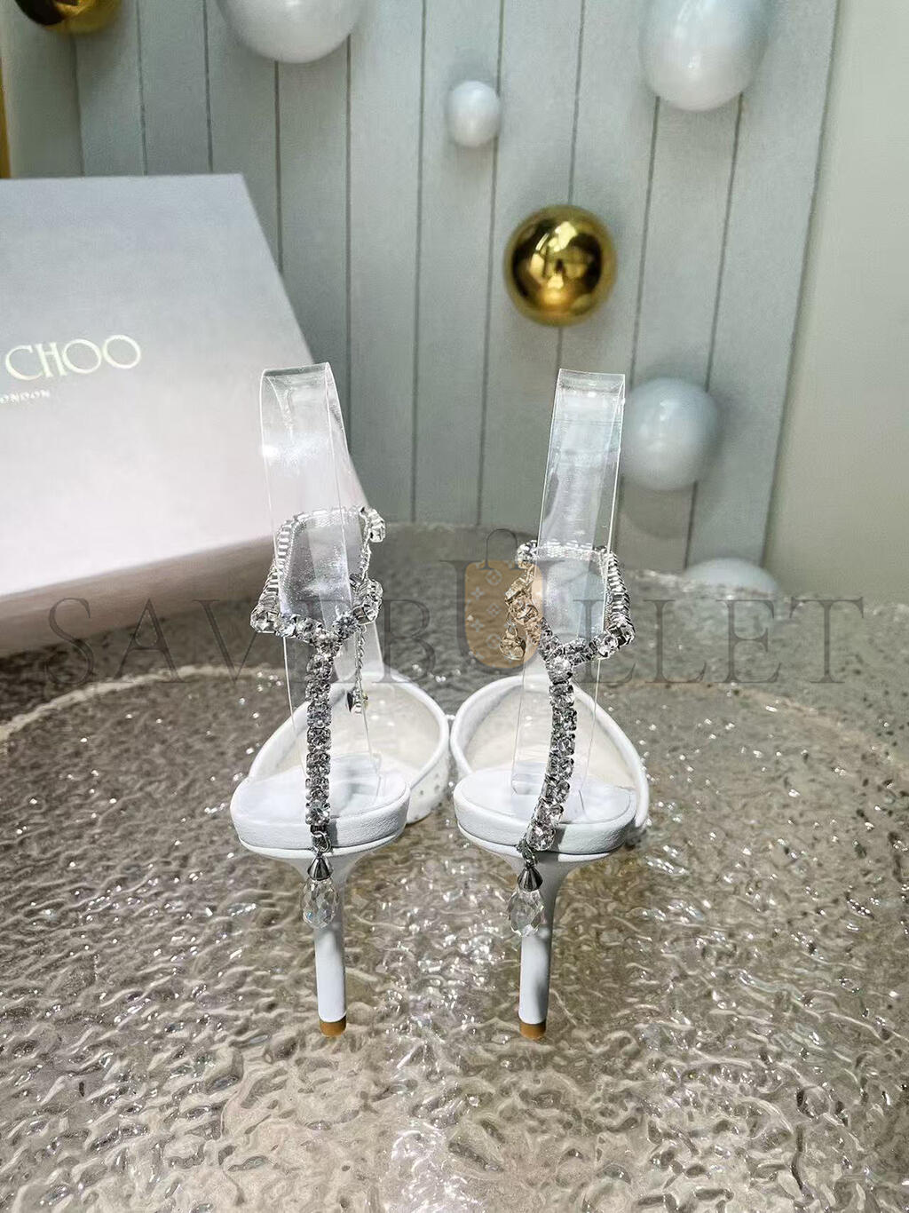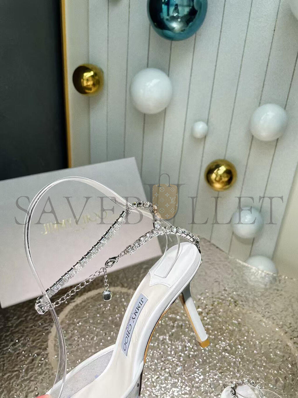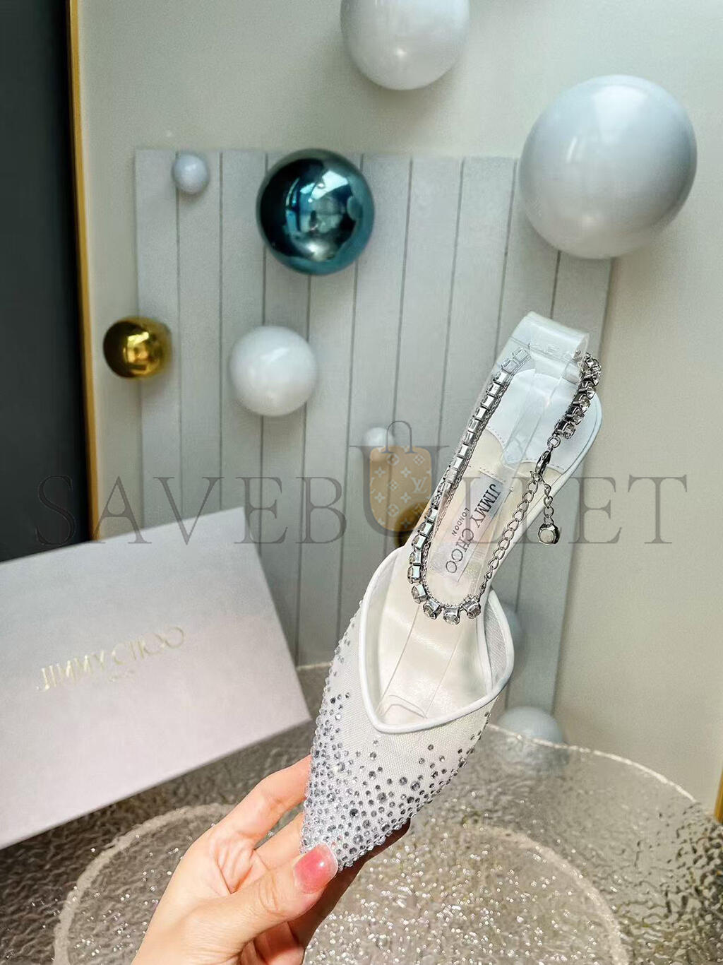 JIMMY CHOO SAEDA 85 WHITE CRYSTAL MESH PUMPS 230562