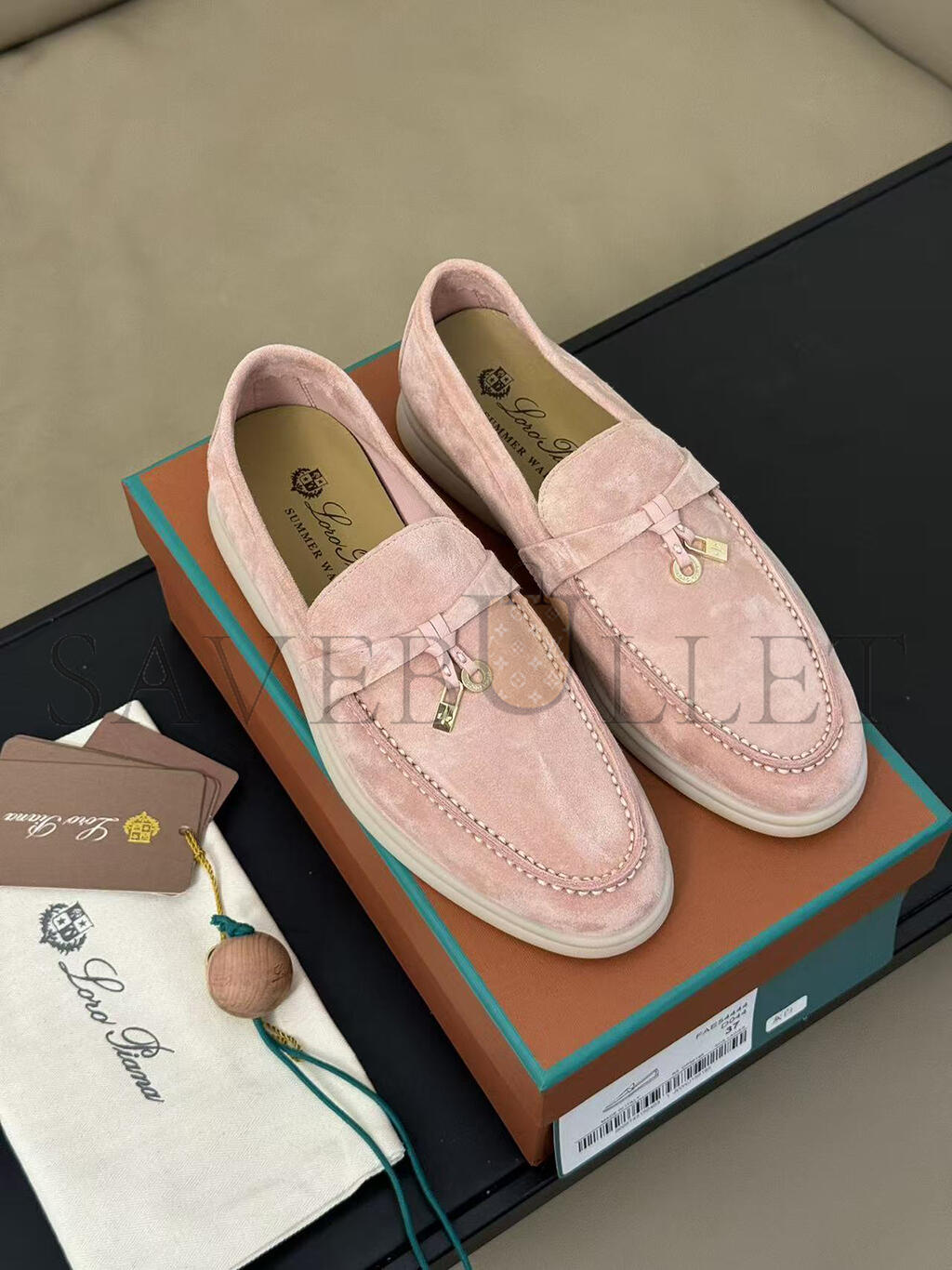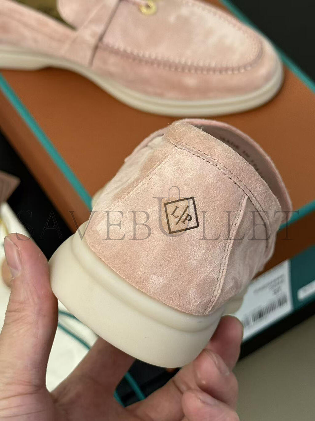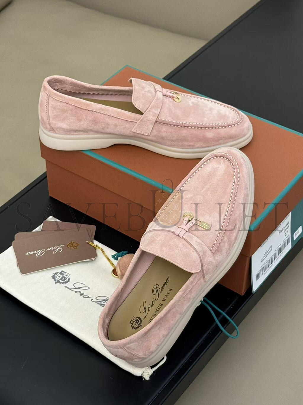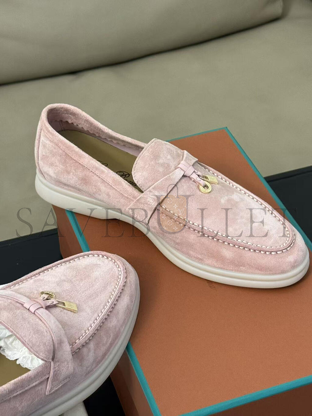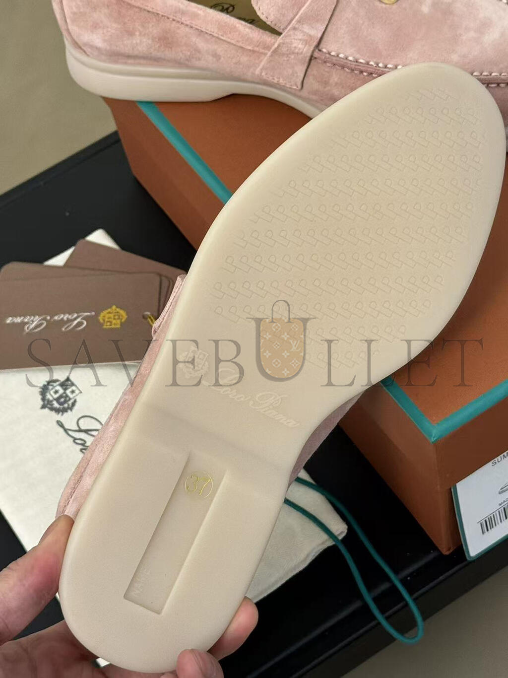 LORO PIANA PINK SUEDE SUMMER CHARMS WALK SLIP ON LOAFERS FAE5444303J