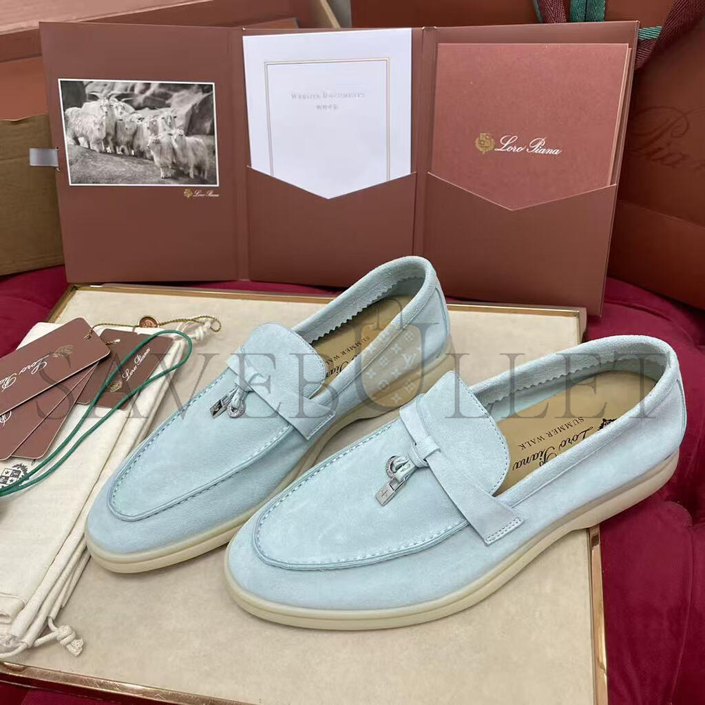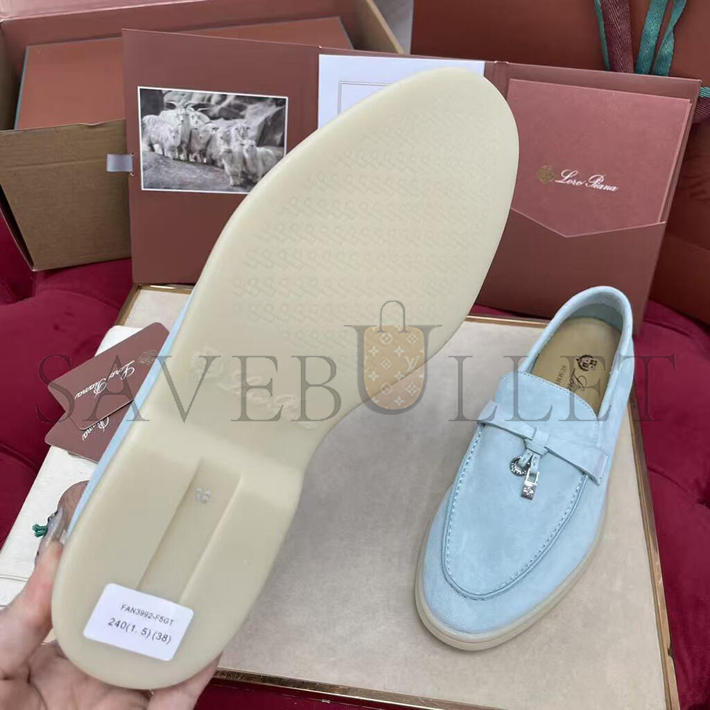 LORO PIANA BLUE SUEDE SUMMER CHARMS WALK LOAFERS FAE5444 01