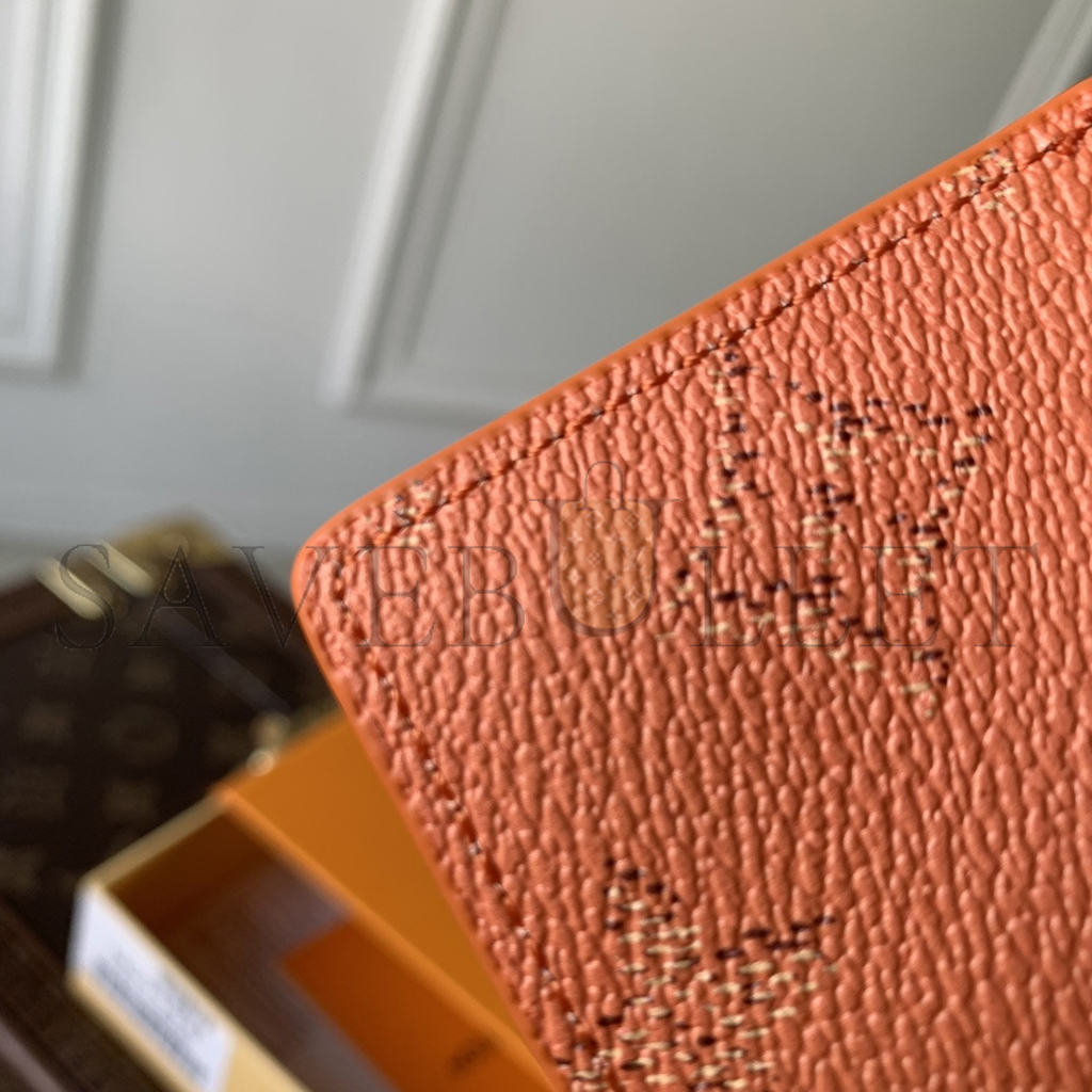 7.5 x 11.1 x 1 cm(Length x Height x Width)Sunrise OrangeMonogram Eclipse coated canvasCowhide-leather trimCowhide leather lining5 inside pockets3 card..