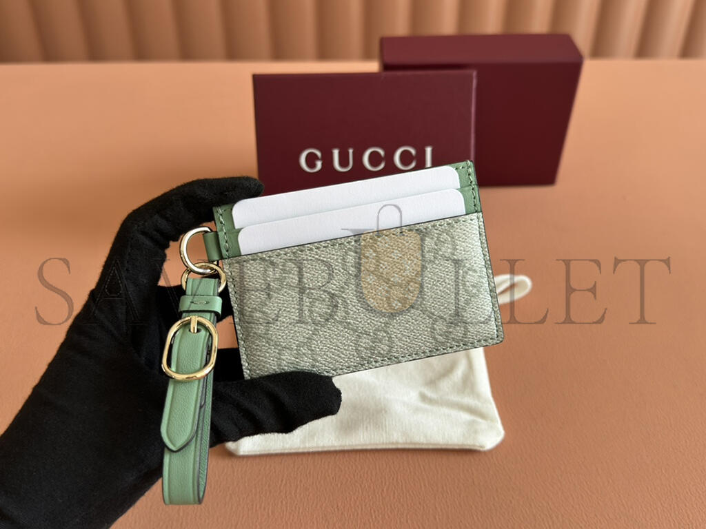 GUCCI GG EMBLEM CARD CASE WITH STRAP 819121 (10*7cm)