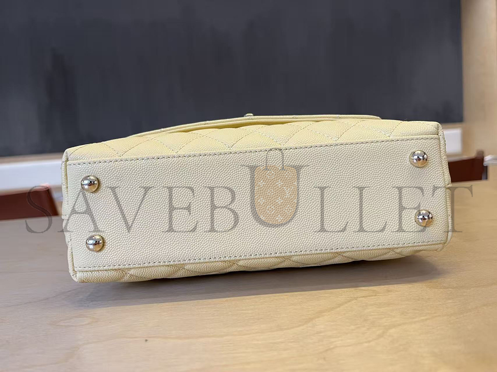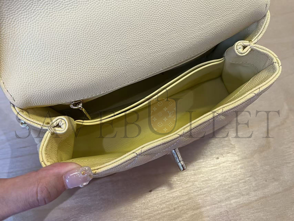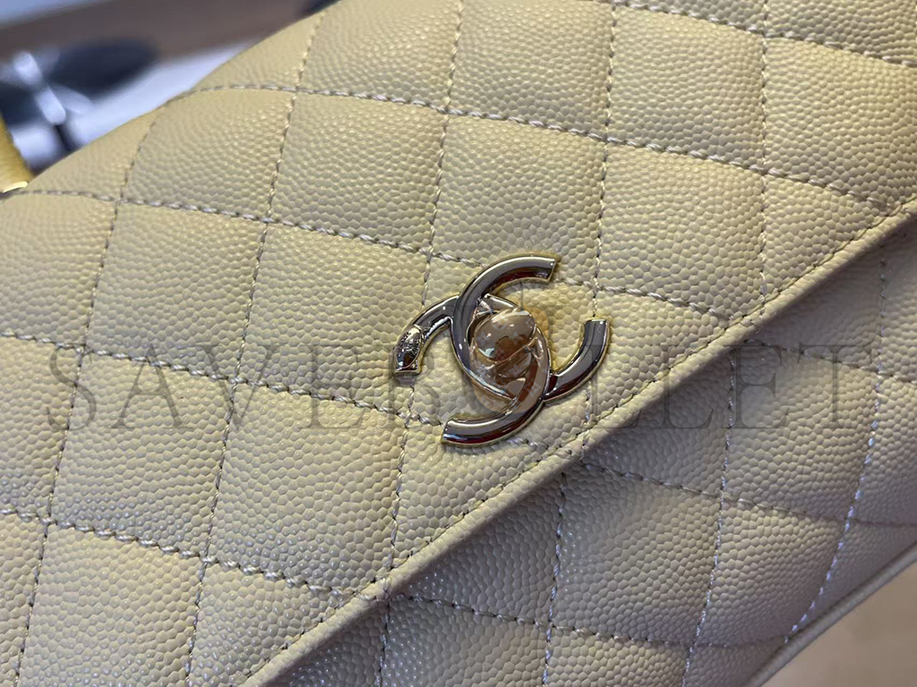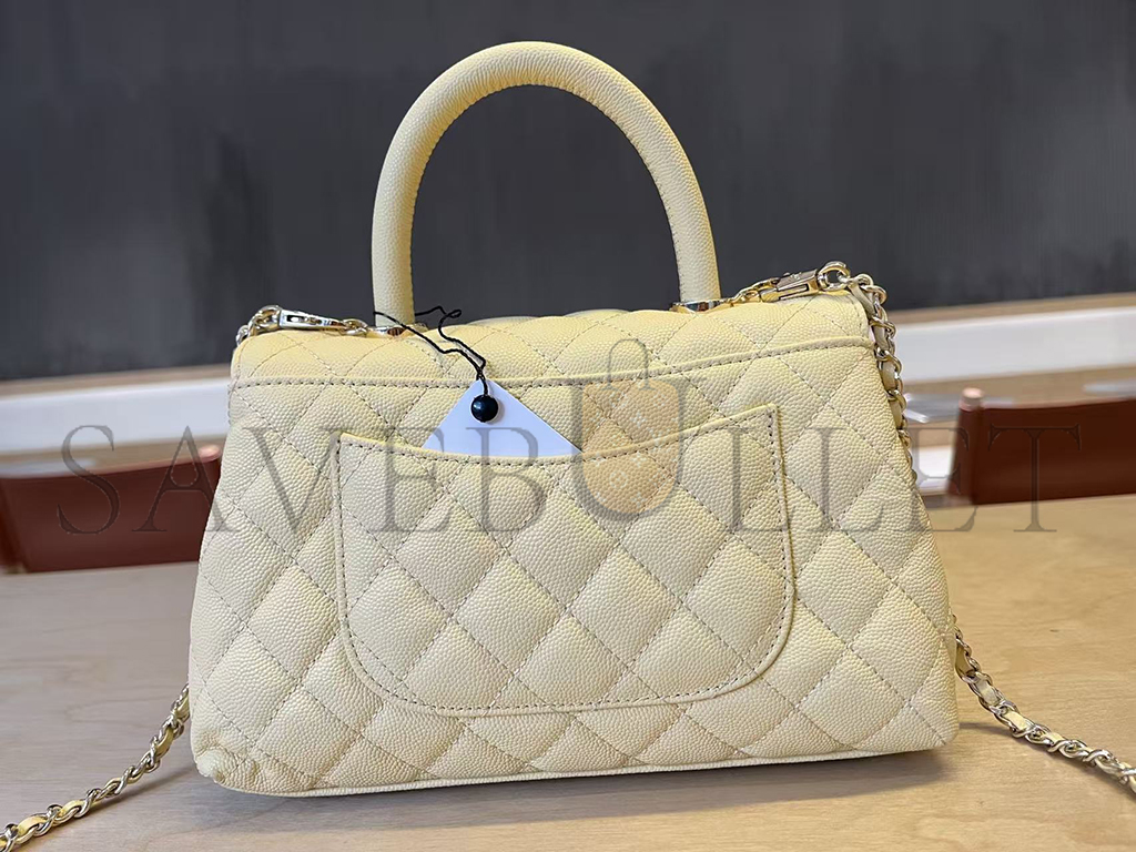 CHANEL YELLOW QUILTED CAVIAR MINI COCO TOP HANDLE LEATHER (24*14*10cm)