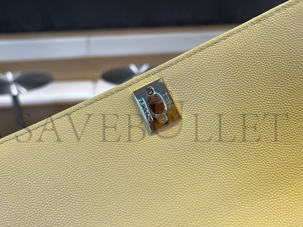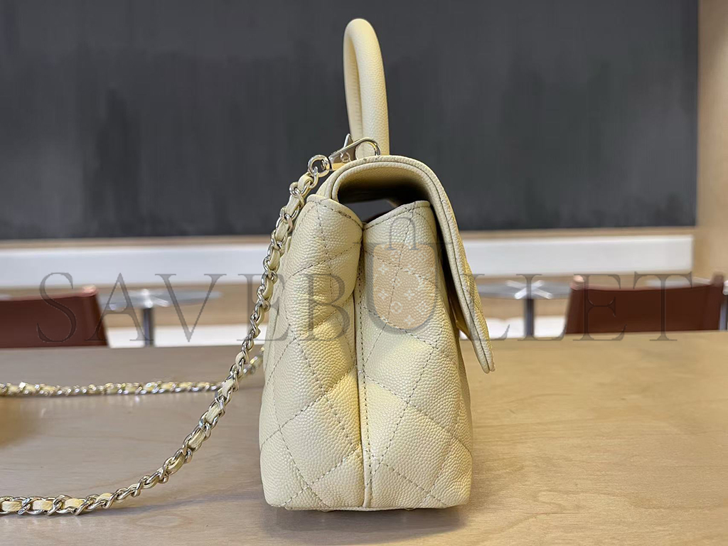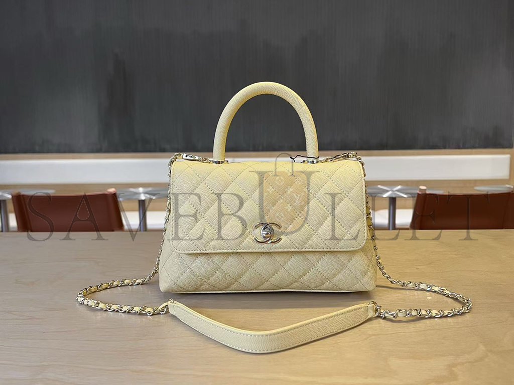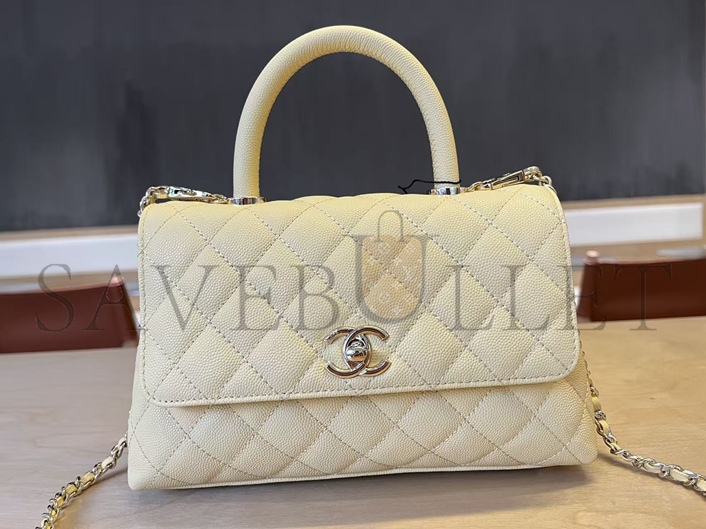 CHANEL YELLOW QUILTED CAVIAR MINI COCO TOP HANDLE LEATHER (24*14*10cm)