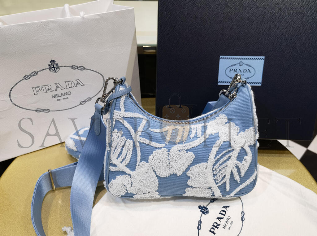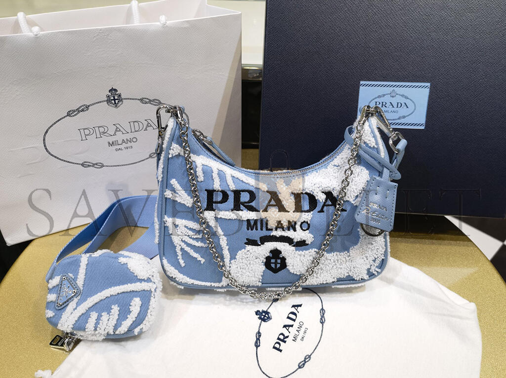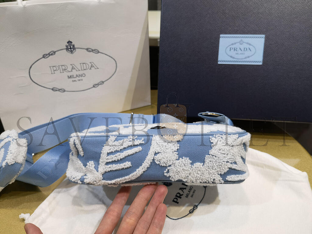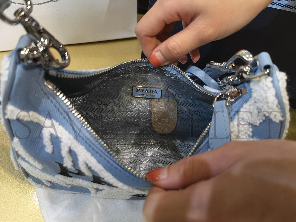 PRADA MINI EMBROIDERED DRILL RE EDITION 2000 SHOULDER BAG 1BH204 (22*18*6cm)