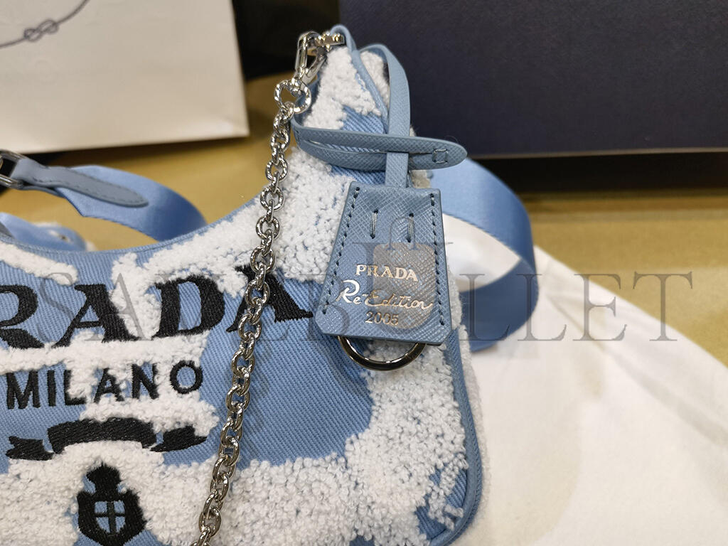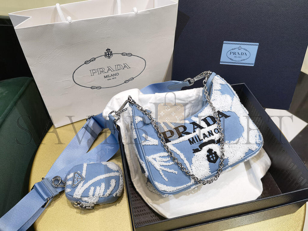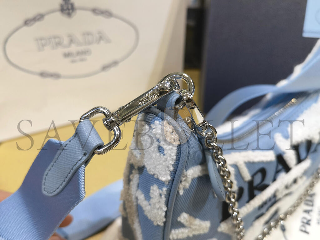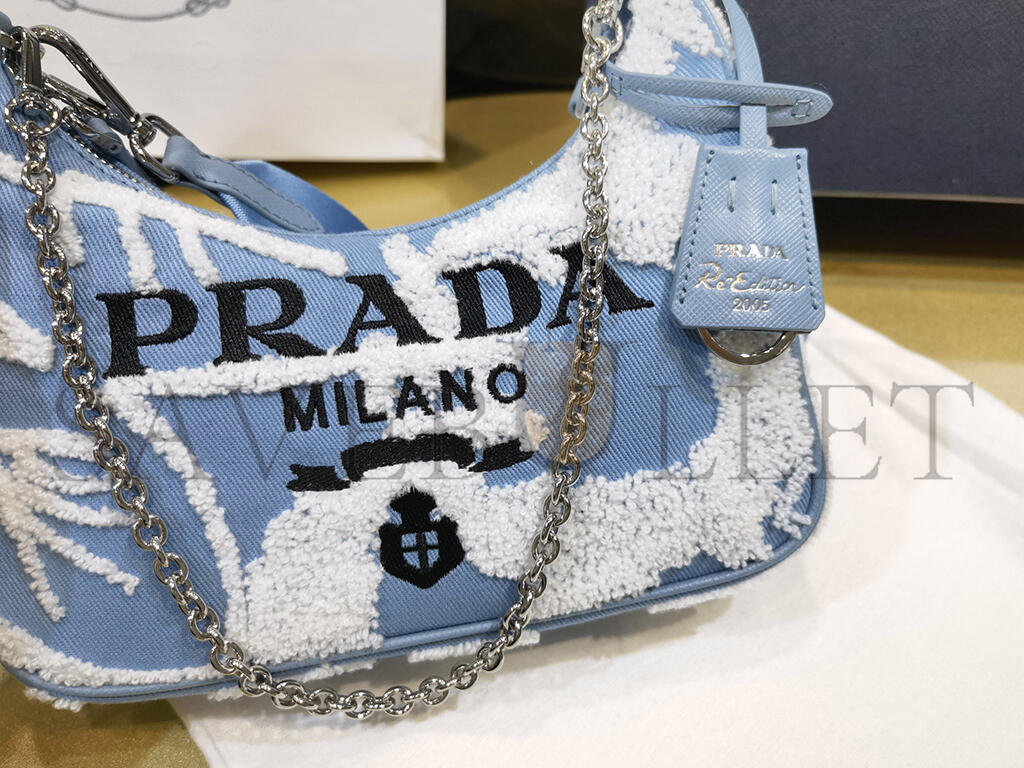 PRADA MINI EMBROIDERED DRILL RE EDITION 2000 SHOULDER BAG 1BH204 (22*18*6cm)
