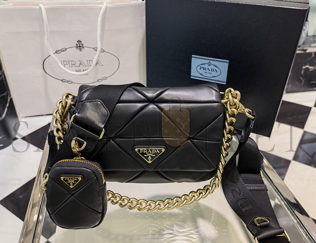 PRADA SYSTEM PATCHWORK MINI SHOULDER BAG BLACK 1BD292 (21*16*7cm)