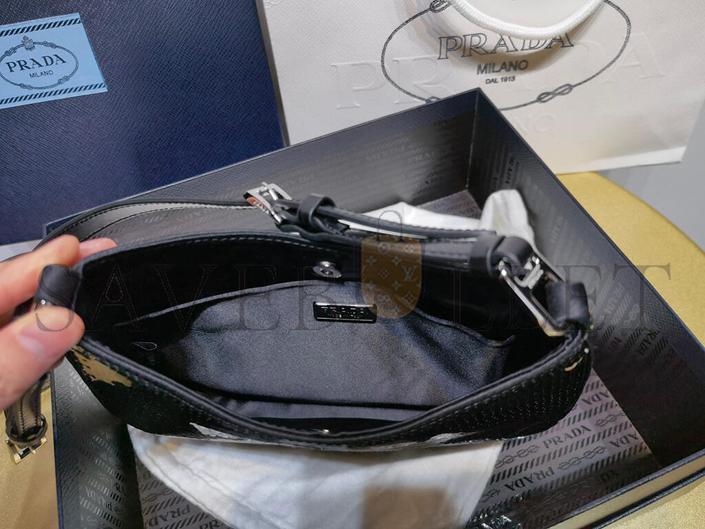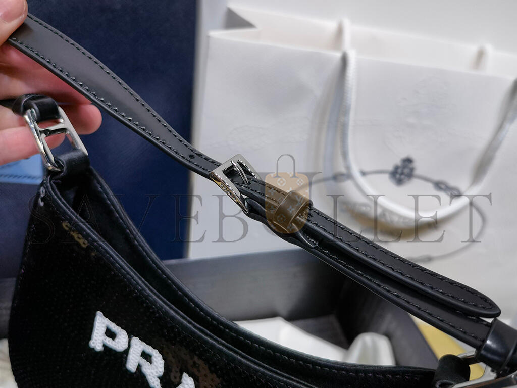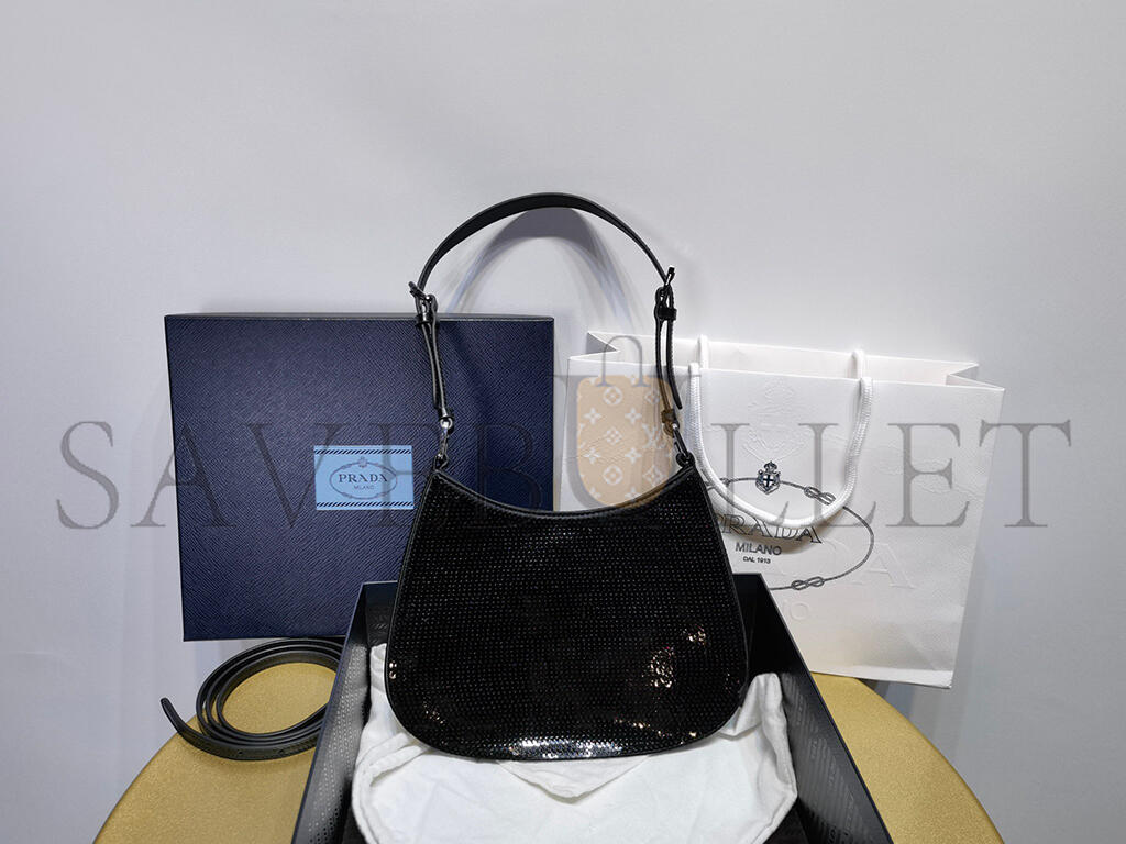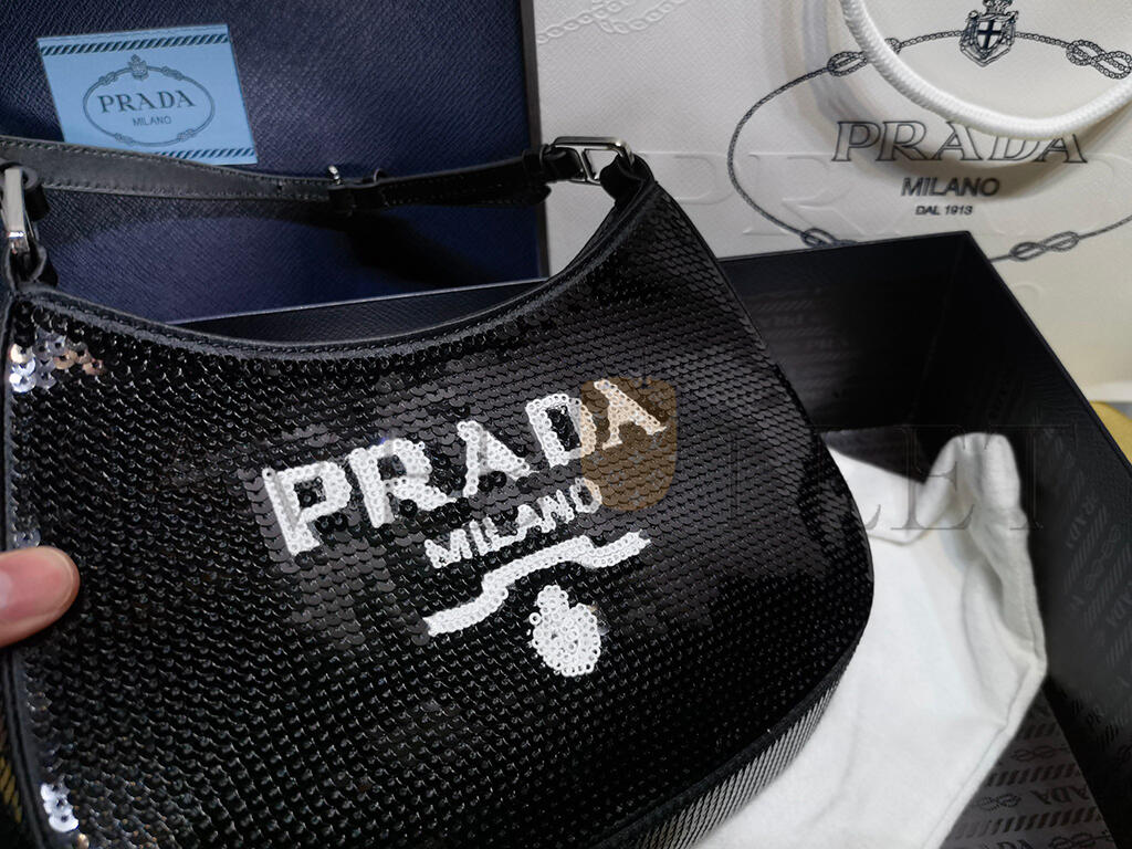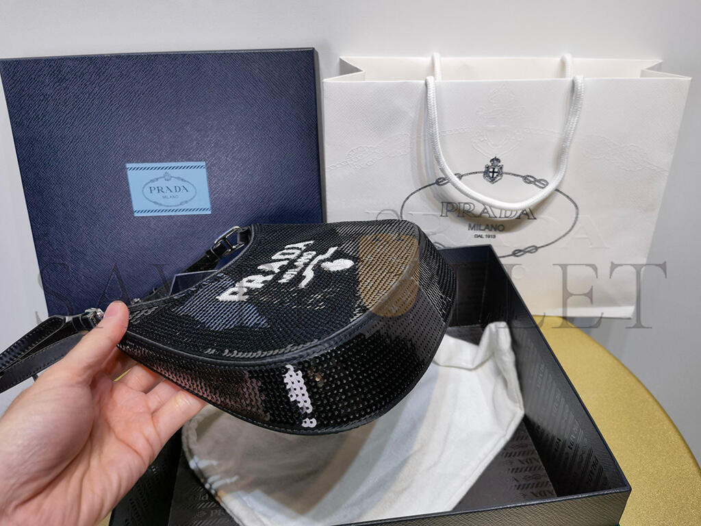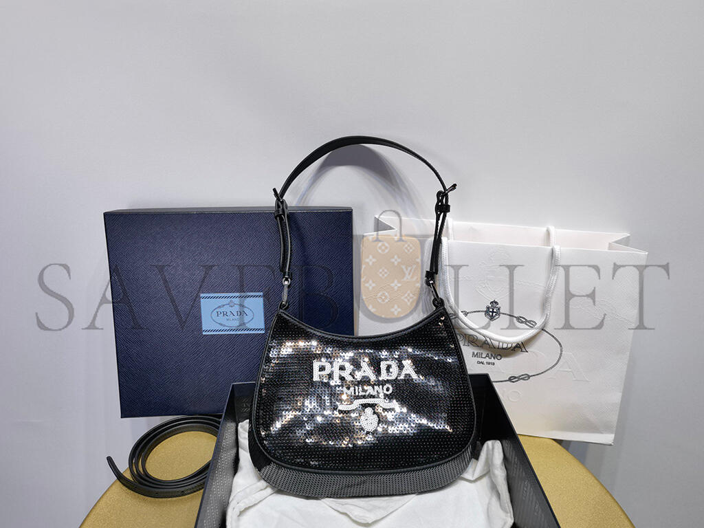 PRADA CLEO SEQUIN-EMBELLISHED LEATHER SHOULDER BAG 1BC169 (22*18.5*4.5cm)