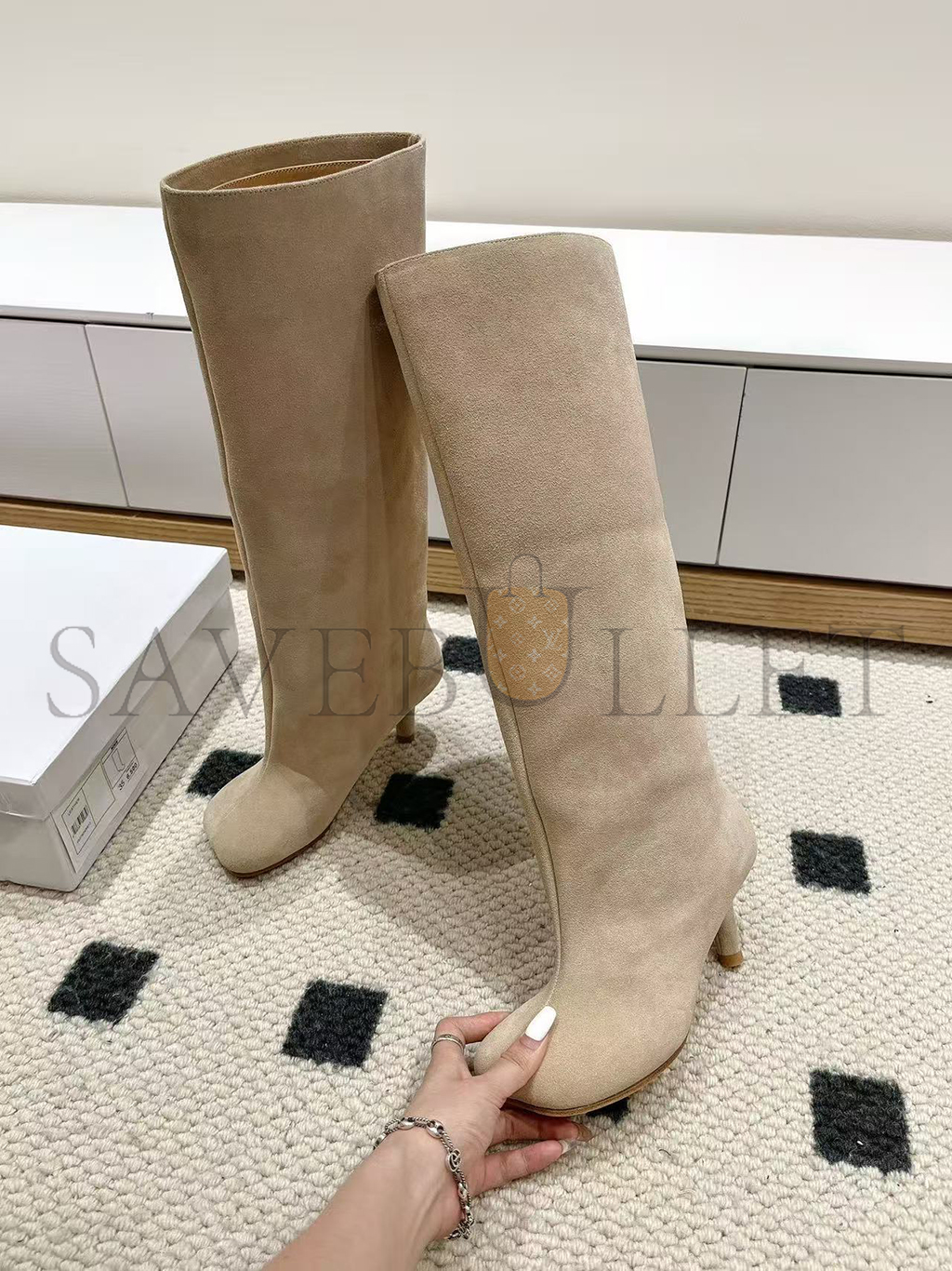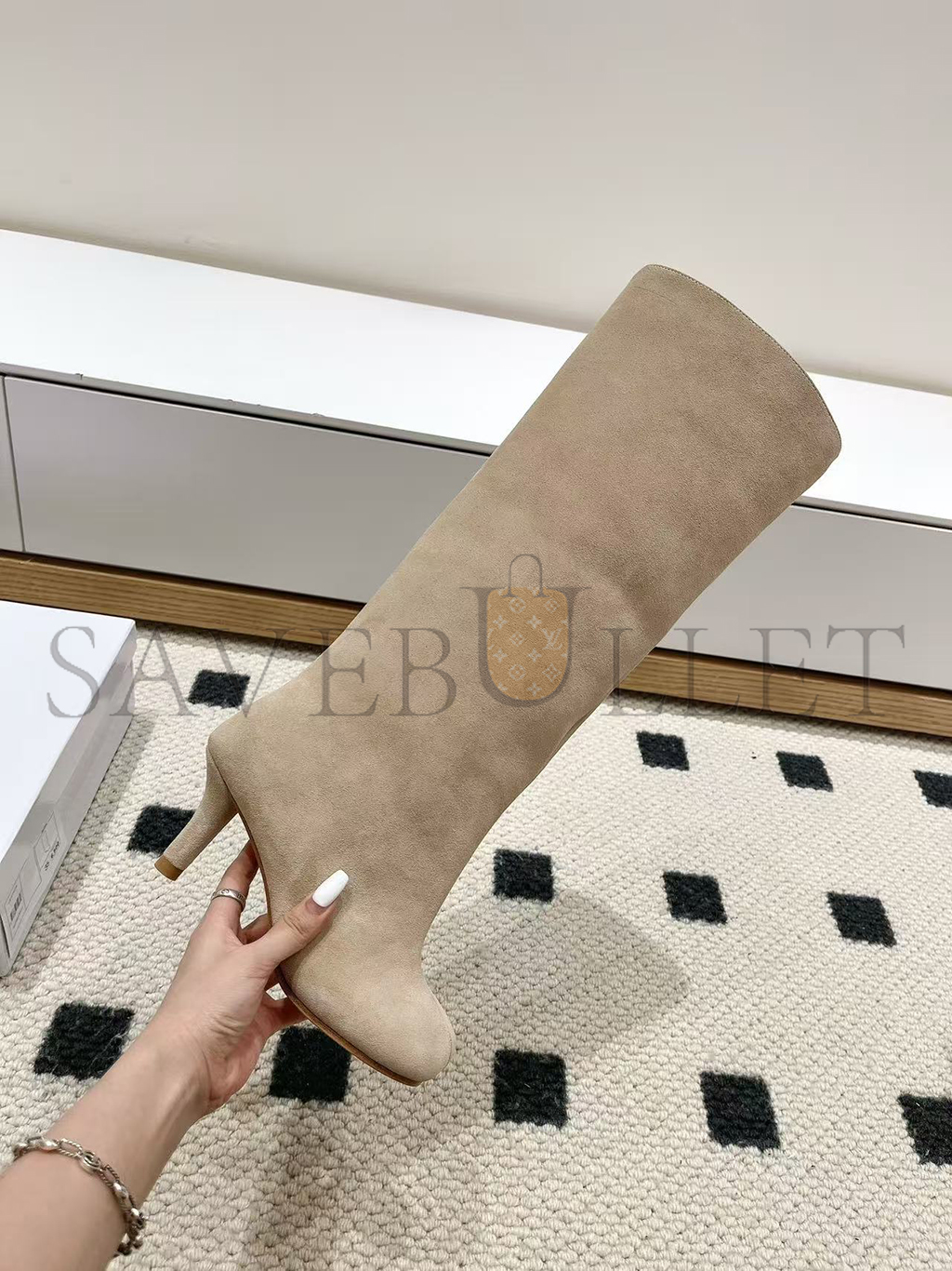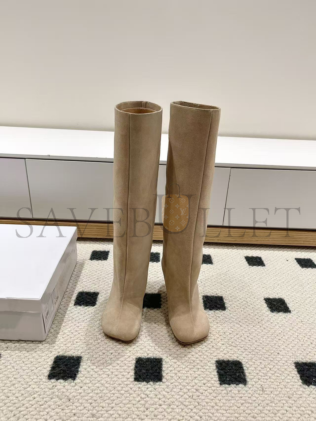 MAISON MARGIELA TAN ANATOMIC SLIP-ON SUEDE TALL BOOTS 252188F115000