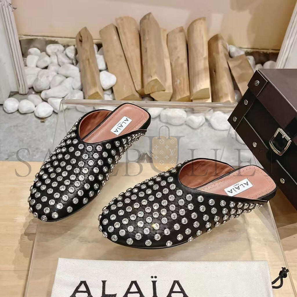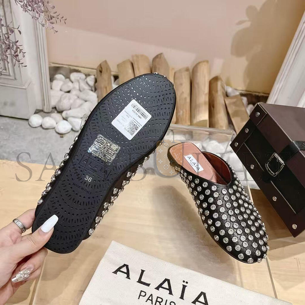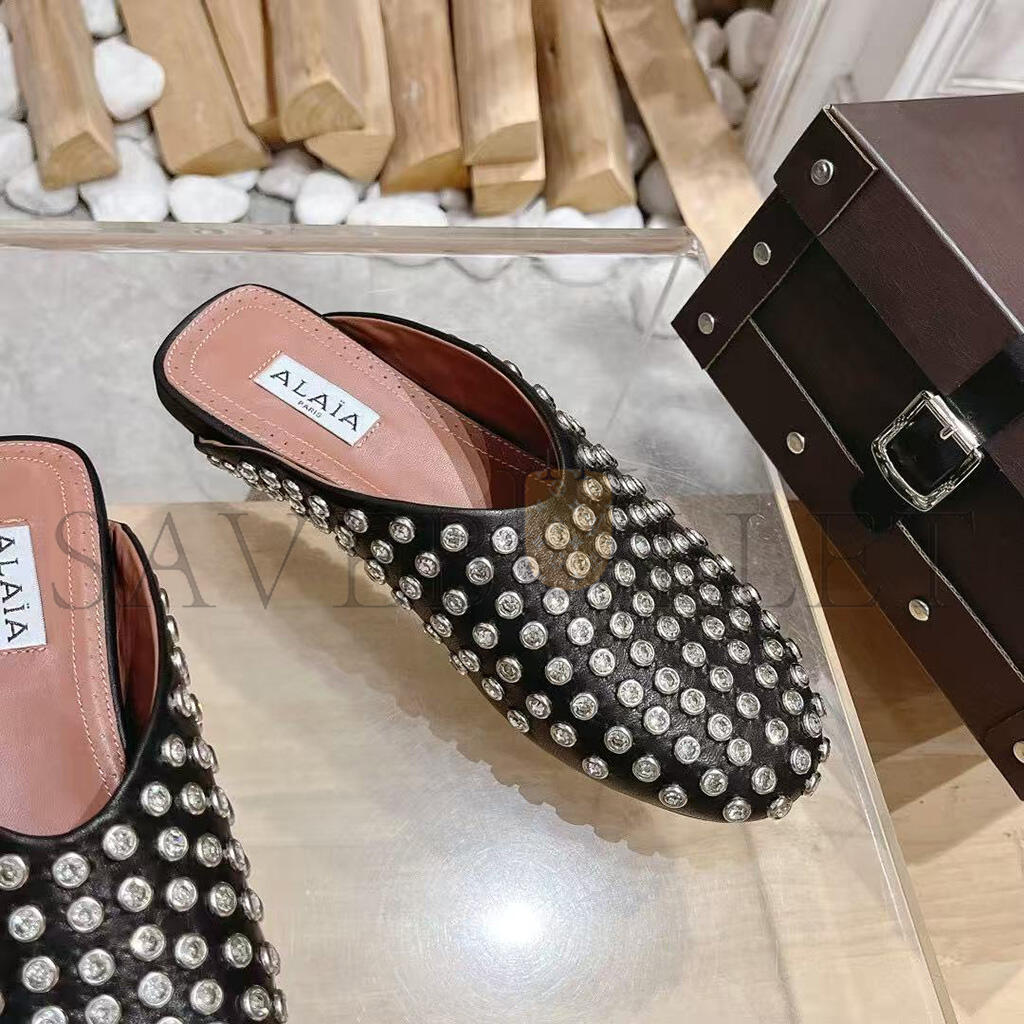 ALAÏA CRYSTAL-EMBELLISHED LEATHER MULES