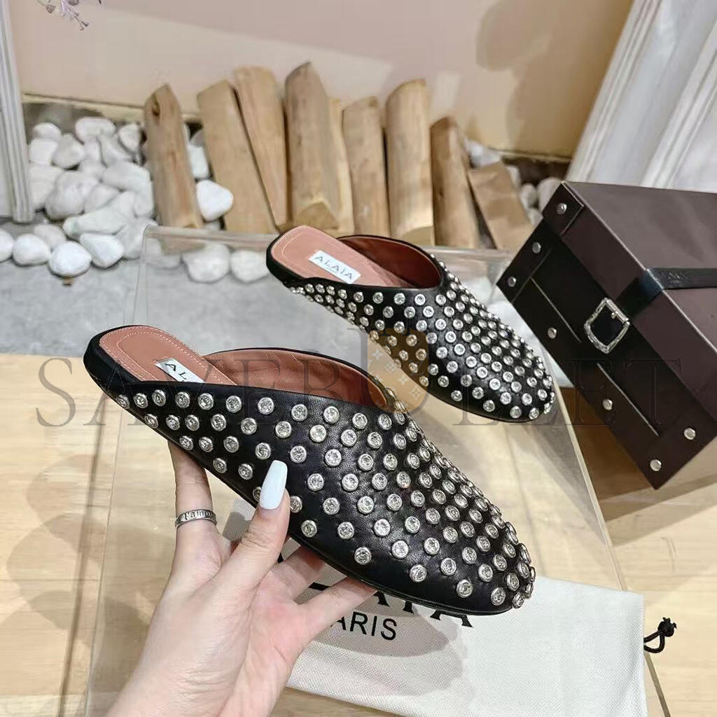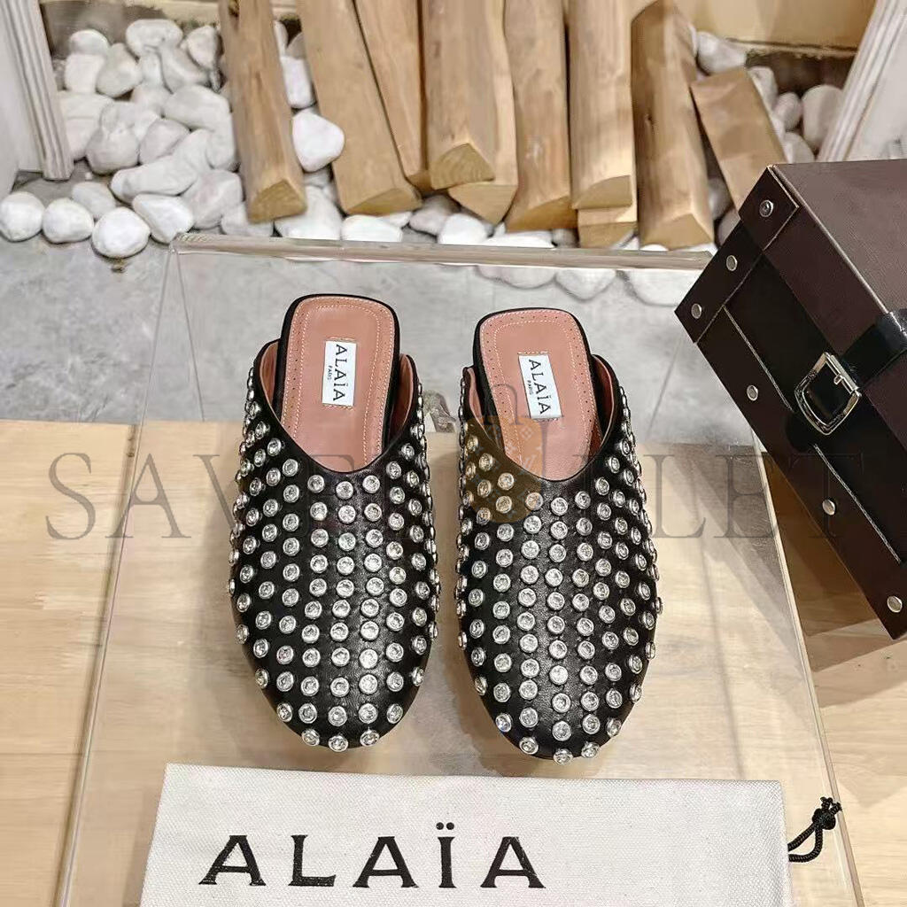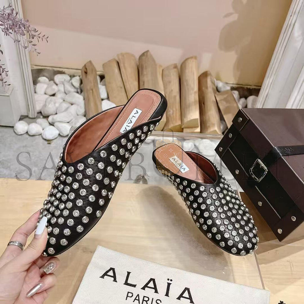 ALAÏA CRYSTAL-EMBELLISHED LEATHER MULES