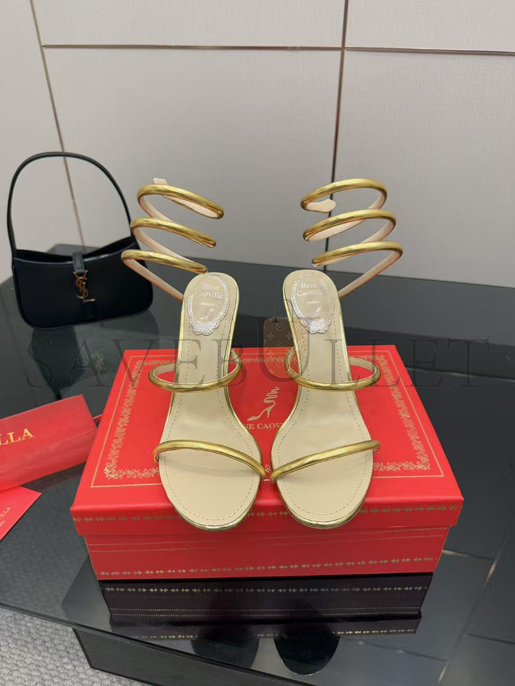 RENÉ CAOVILLA CLEO METALLIC GOLD SANDAL 105 C12351