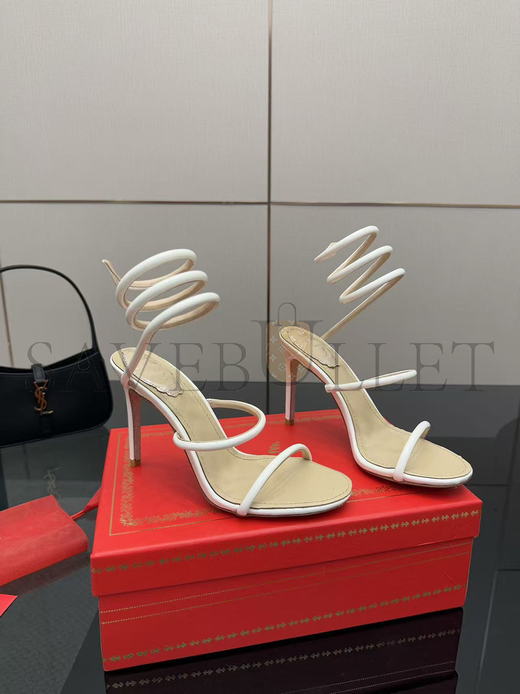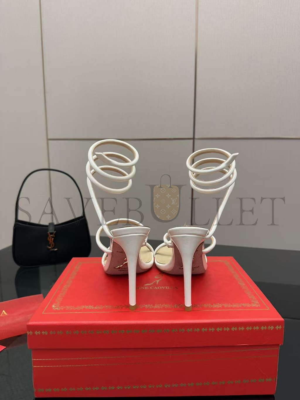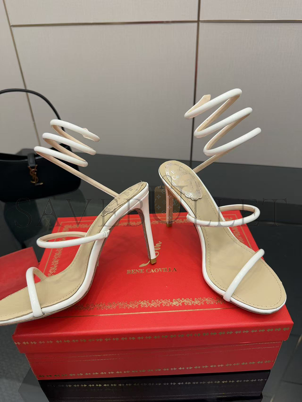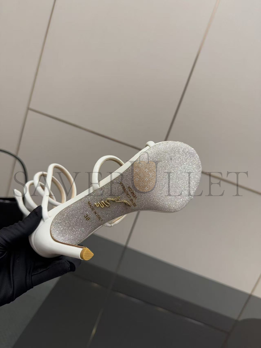 RENÉ CAOVILLA CLEO METALLIC WHITE SANDAL 105 C12351