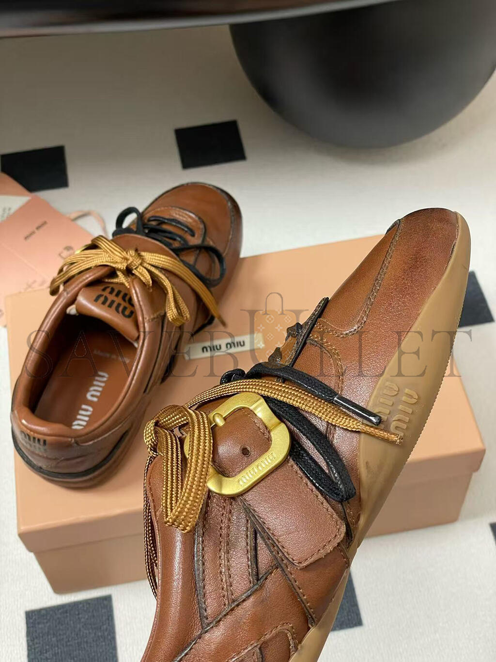 MIU MIU LEATHER SNEAKERS WITH BUCKLE 5E549E