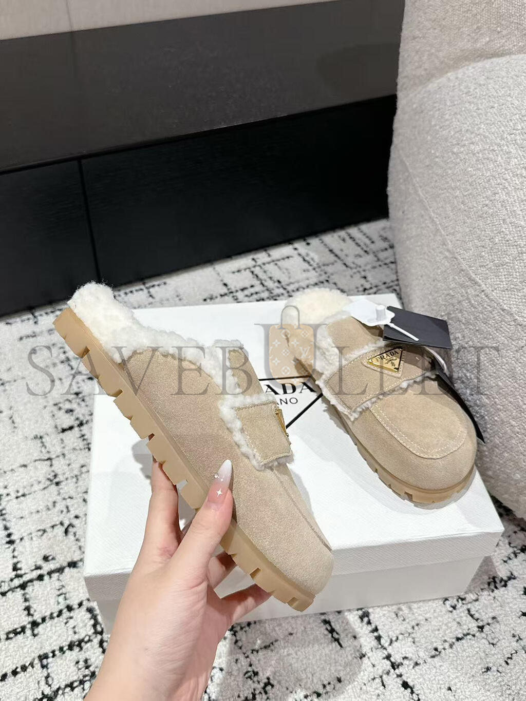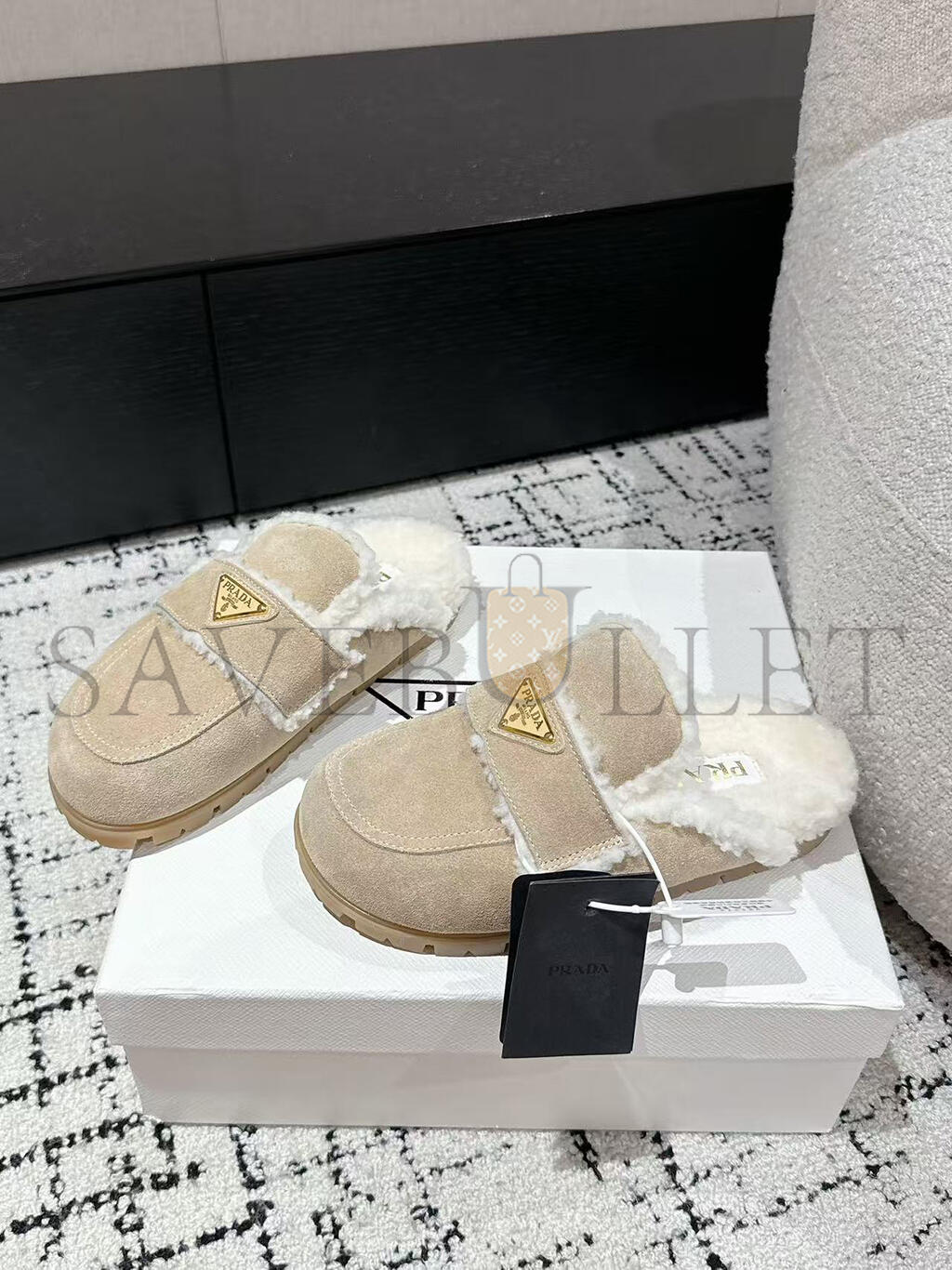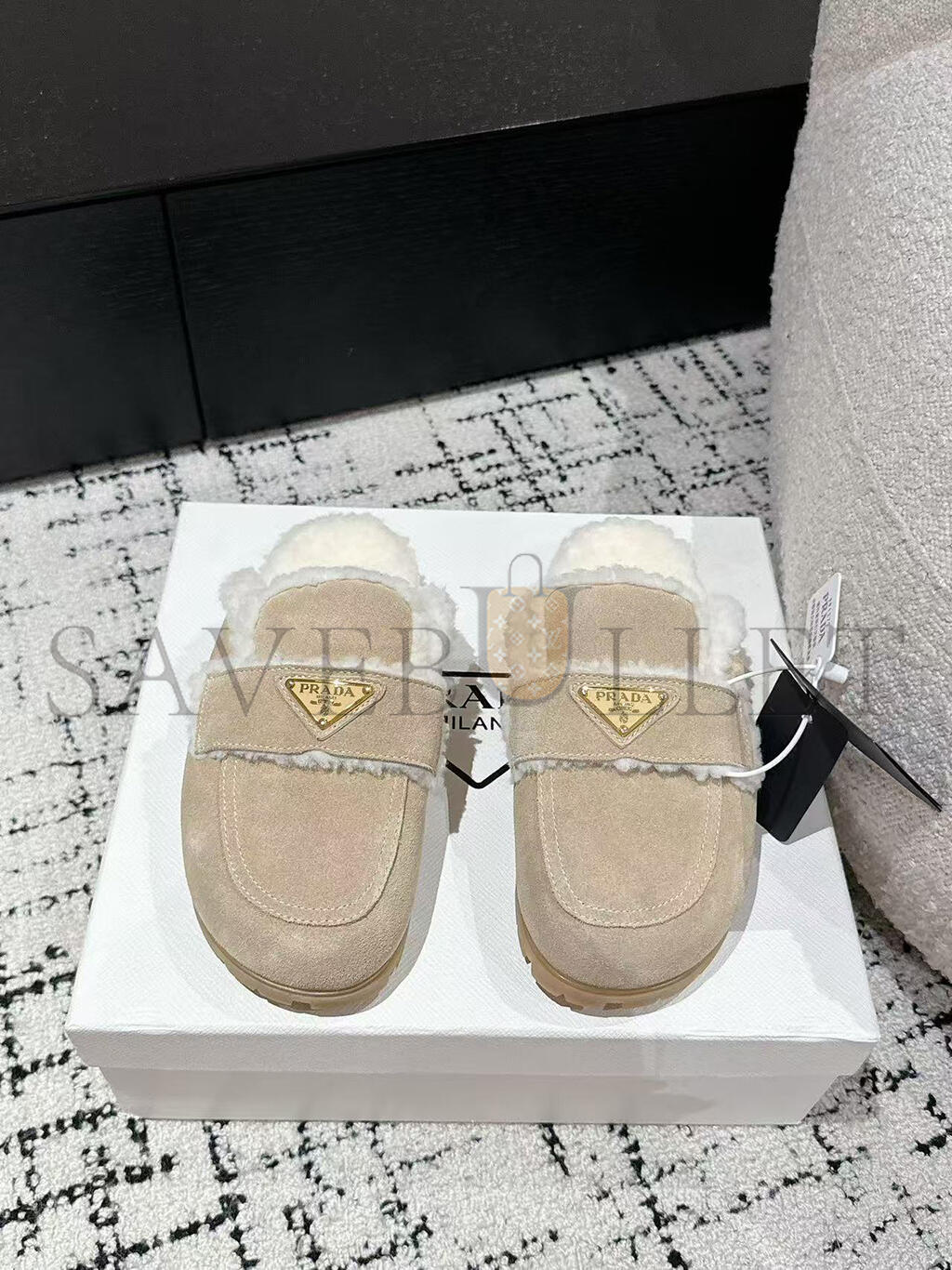 PRADA SUEDE AND SHEARLING SLIPPERS 1S711M