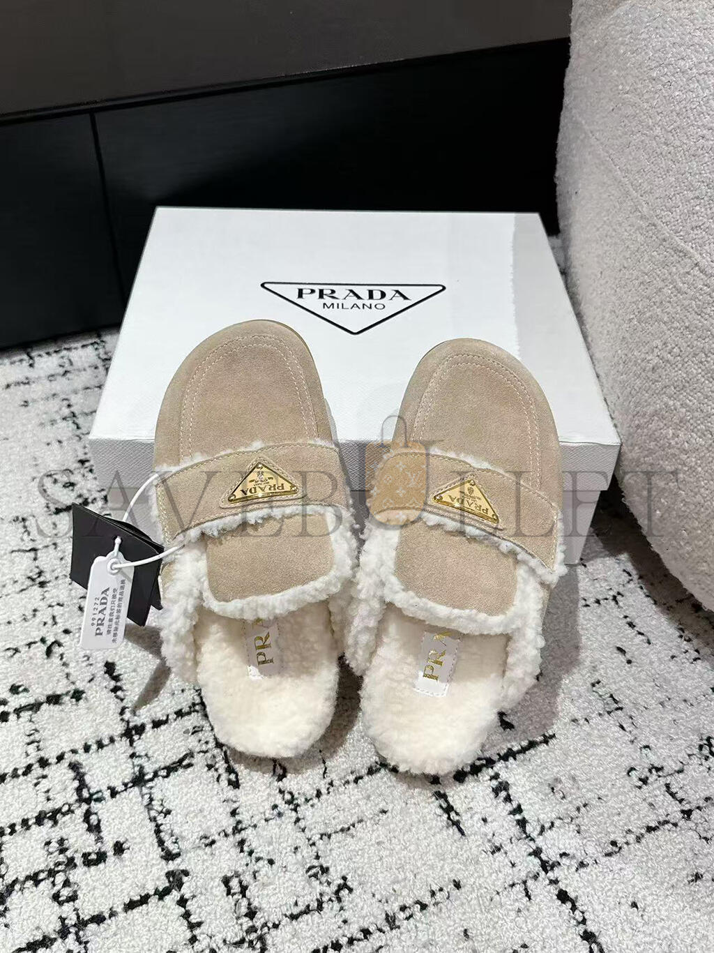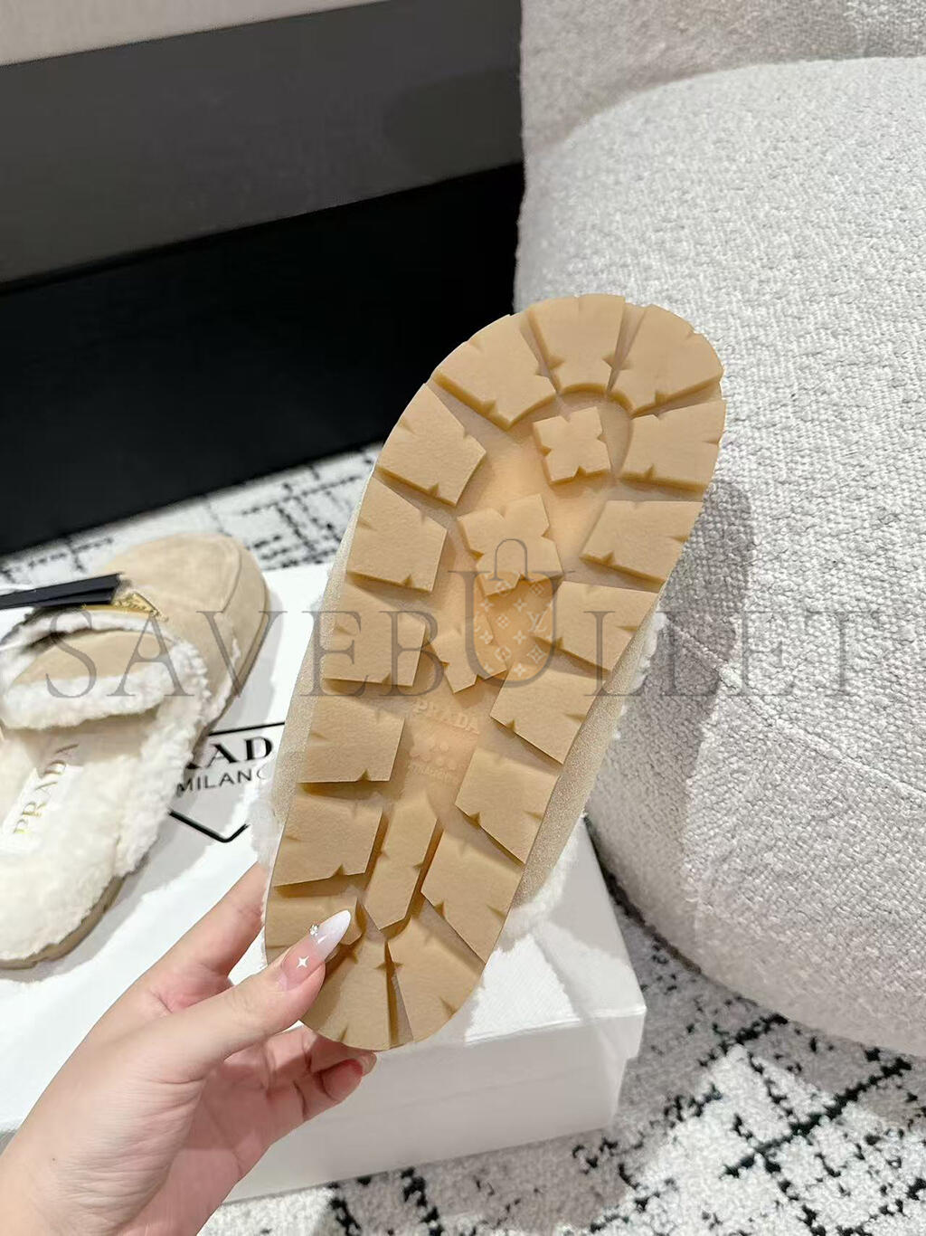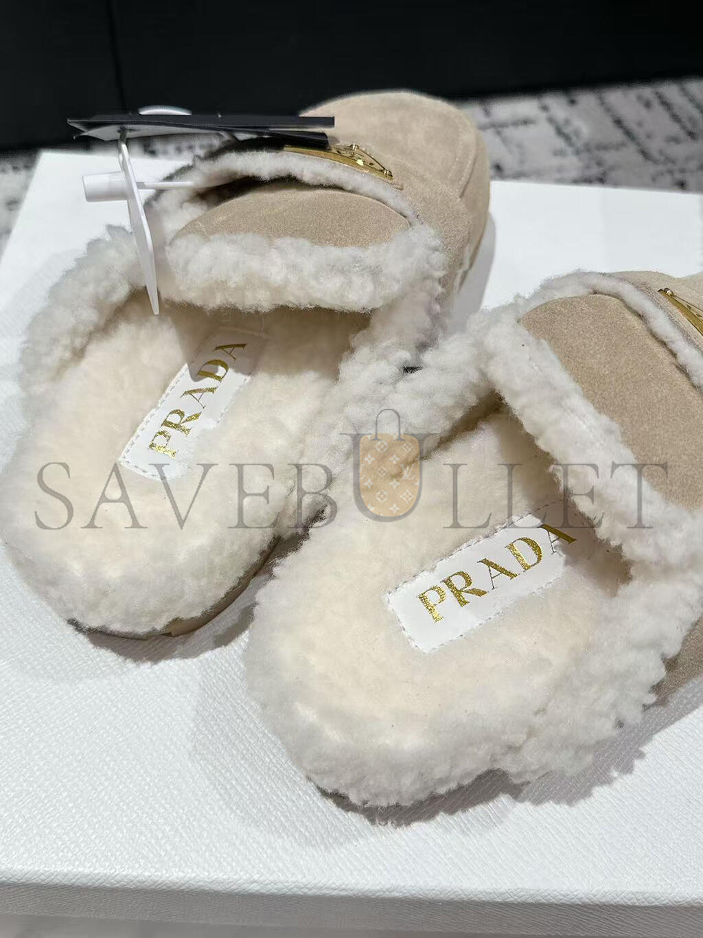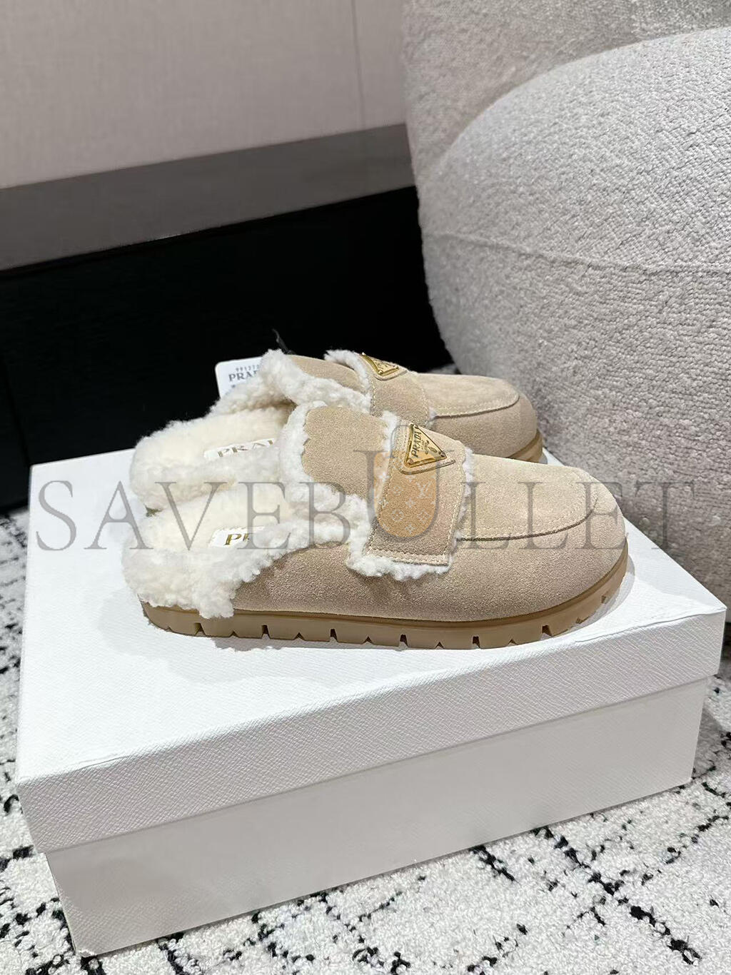 PRADA SUEDE AND SHEARLING SLIPPERS 1S711M
