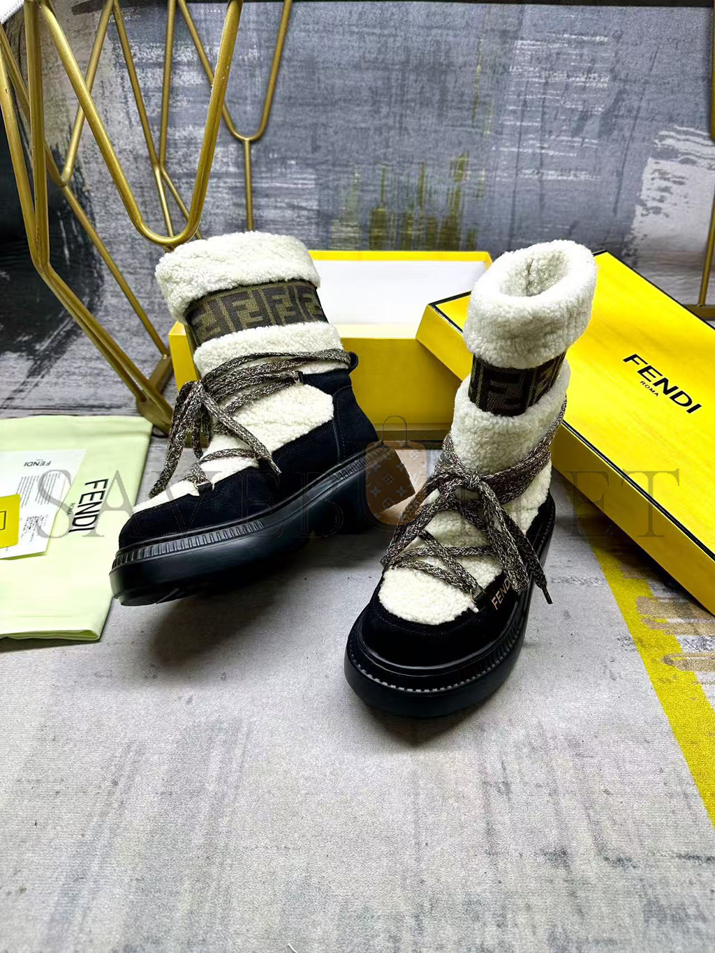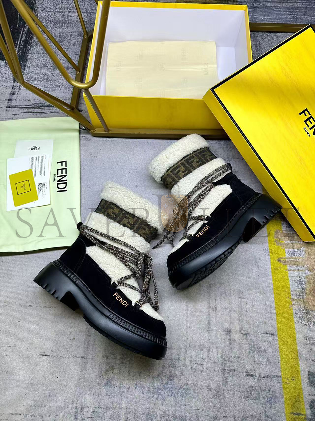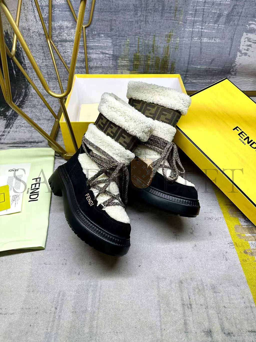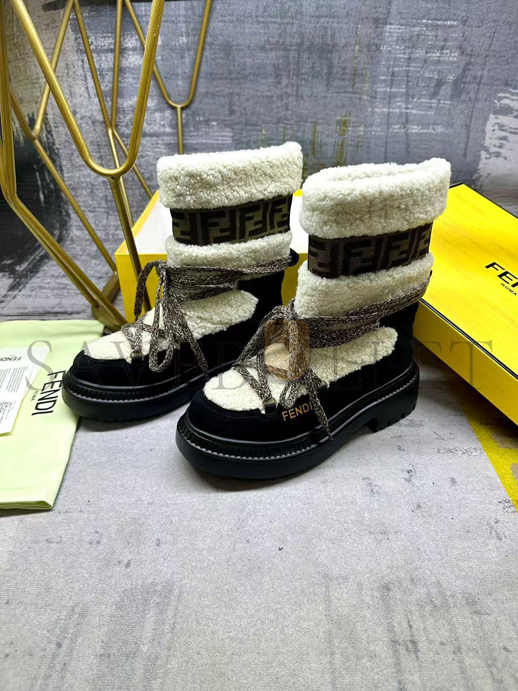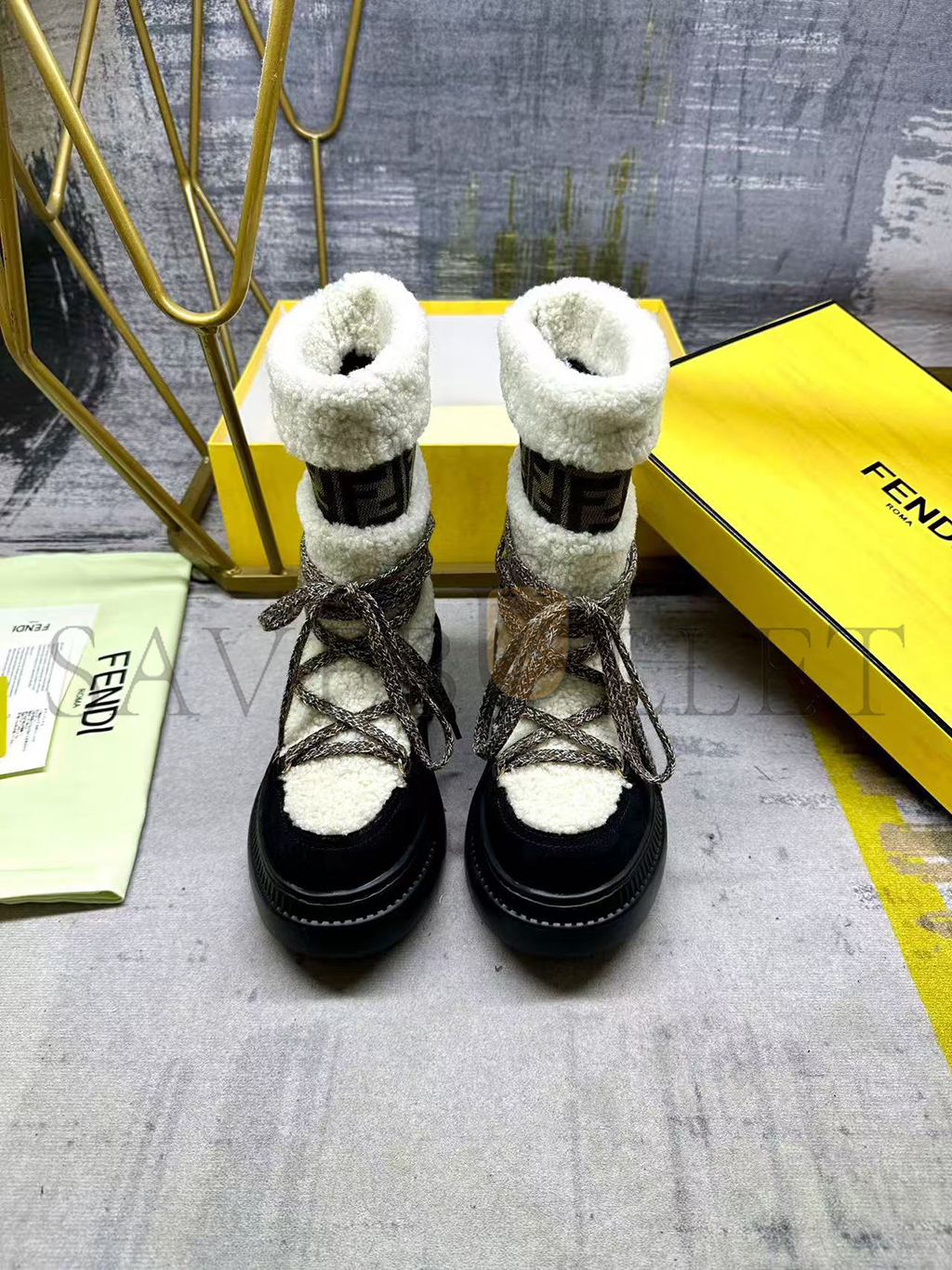 FENDI APRES CHIC WHITE SHEEPSKIN AND BLACK SUEDE BOOTS 8T8591AOSSF1QJH