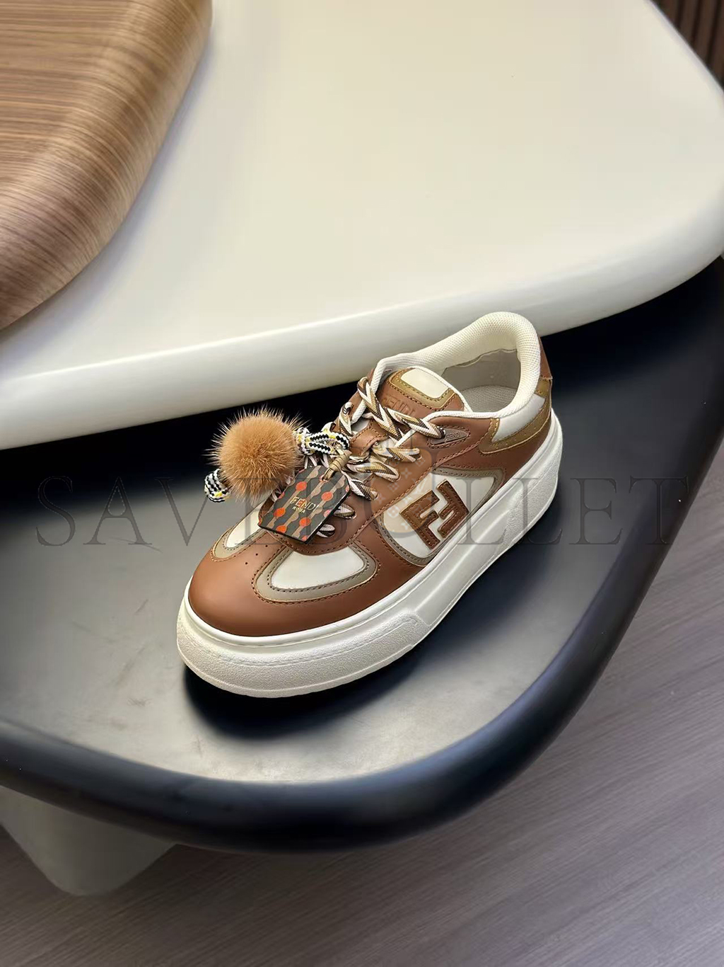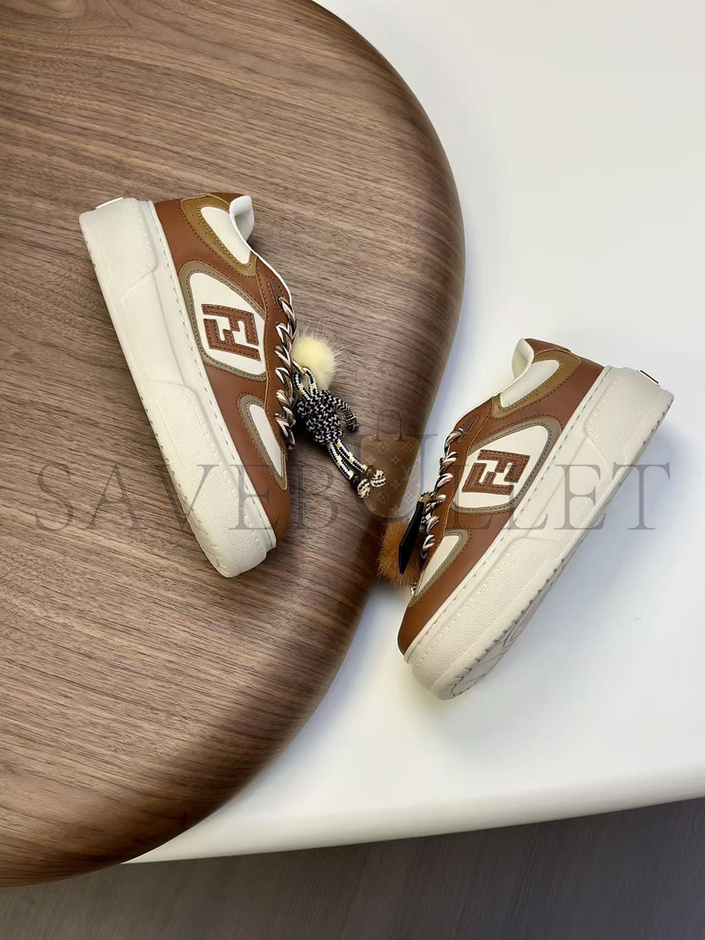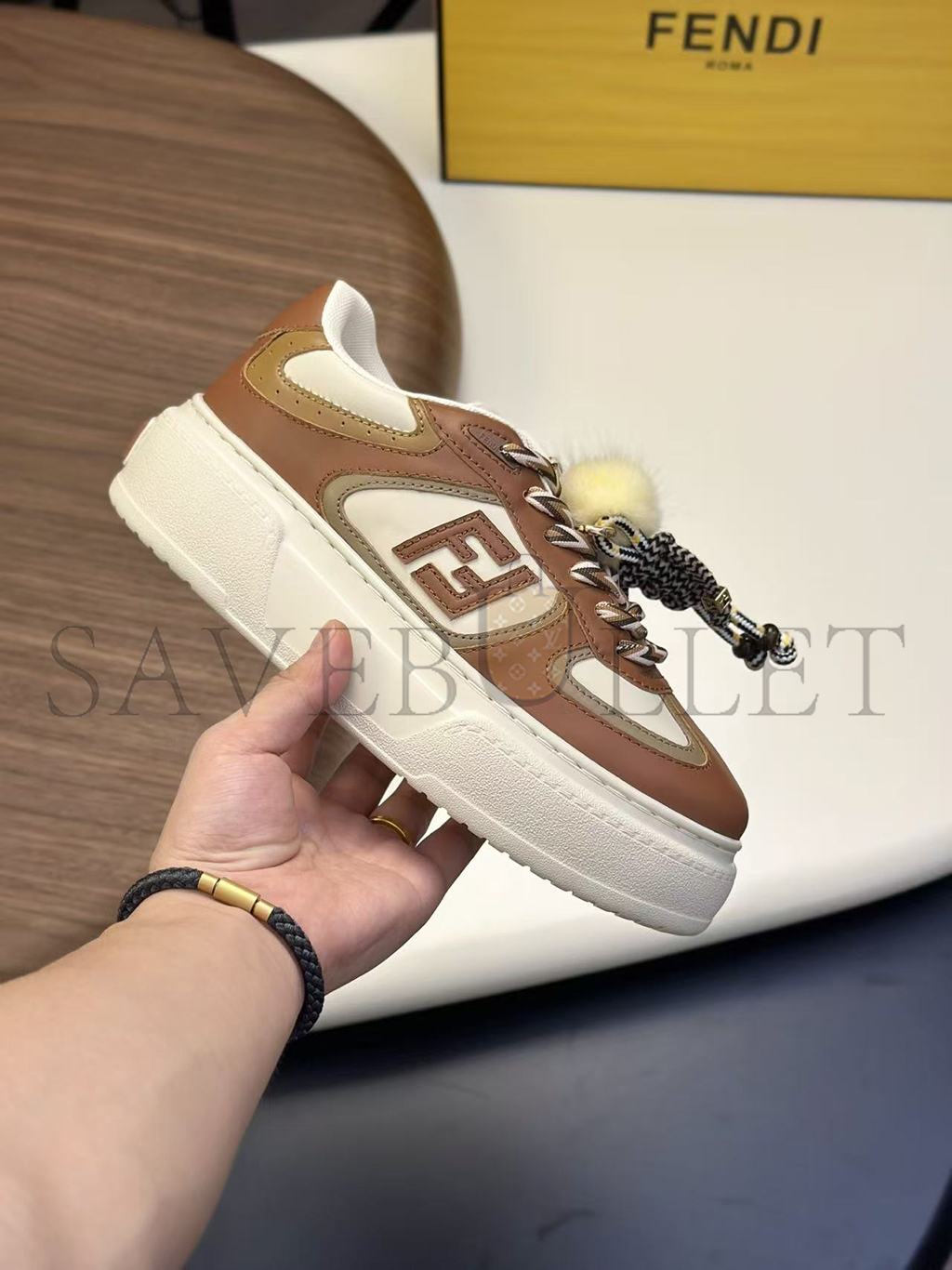 FENDI MATCH BROWN LEATHER PLATFORM LOW-TOPS WITH CHARM 8E8721AY9NF1TO6