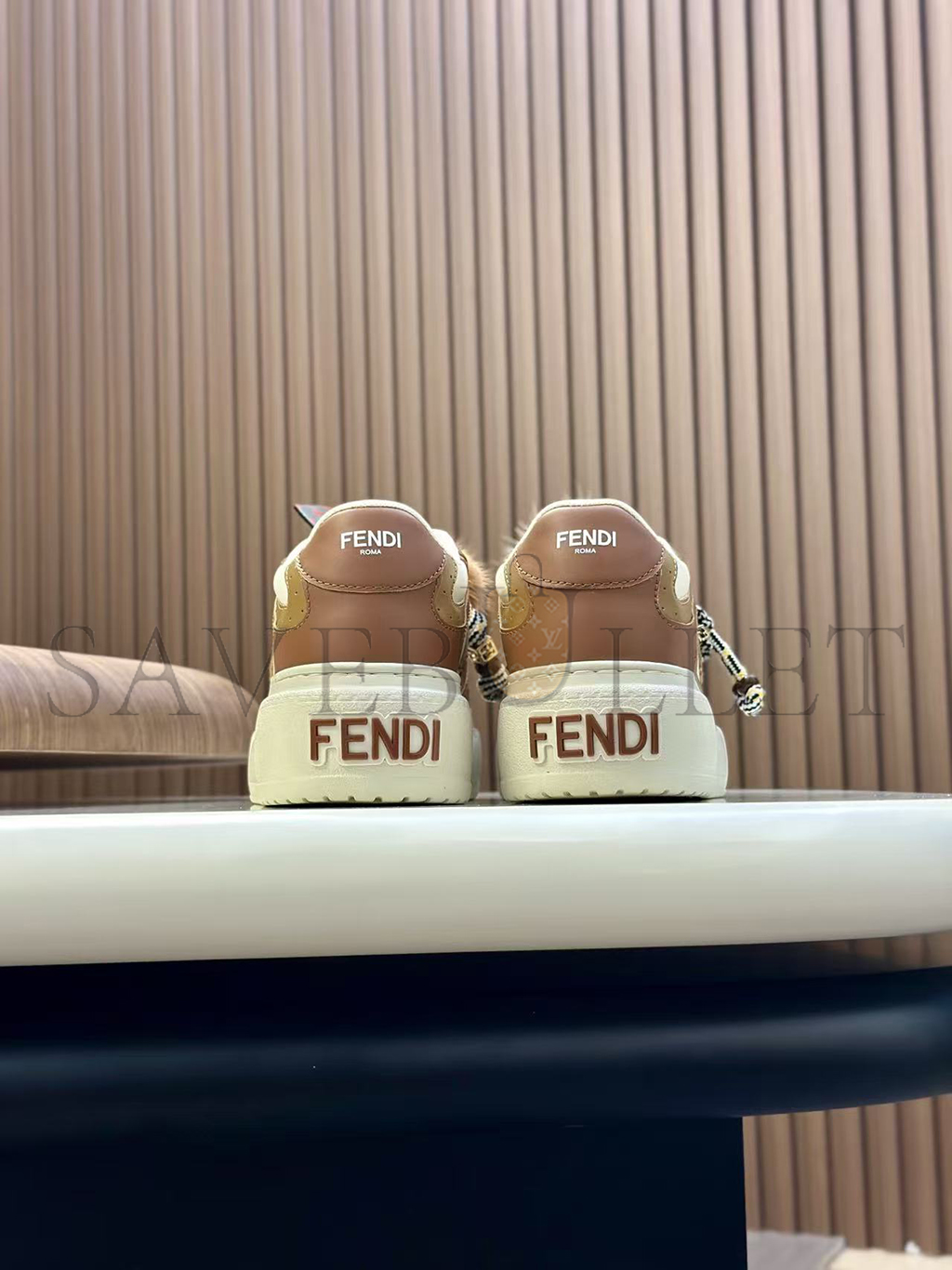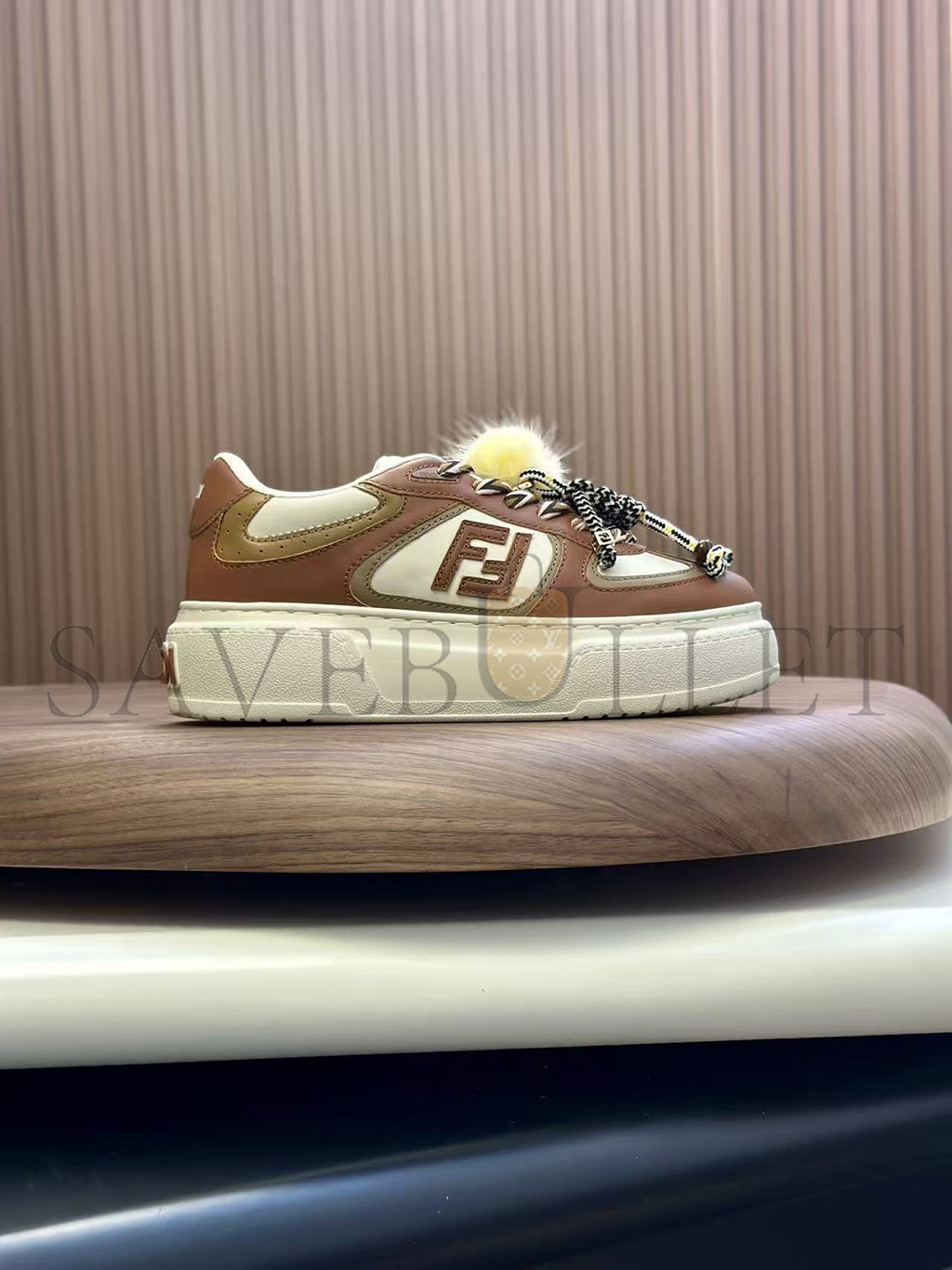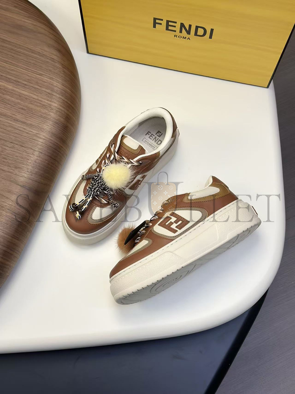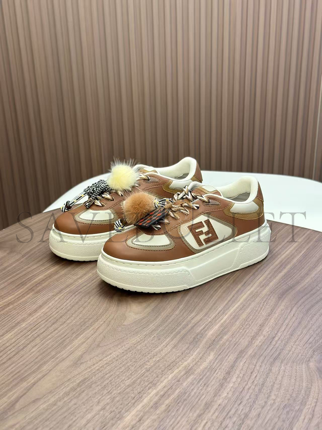 FENDI MATCH BROWN LEATHER PLATFORM LOW-TOPS WITH CHARM 8E8721AY9NF1TO6