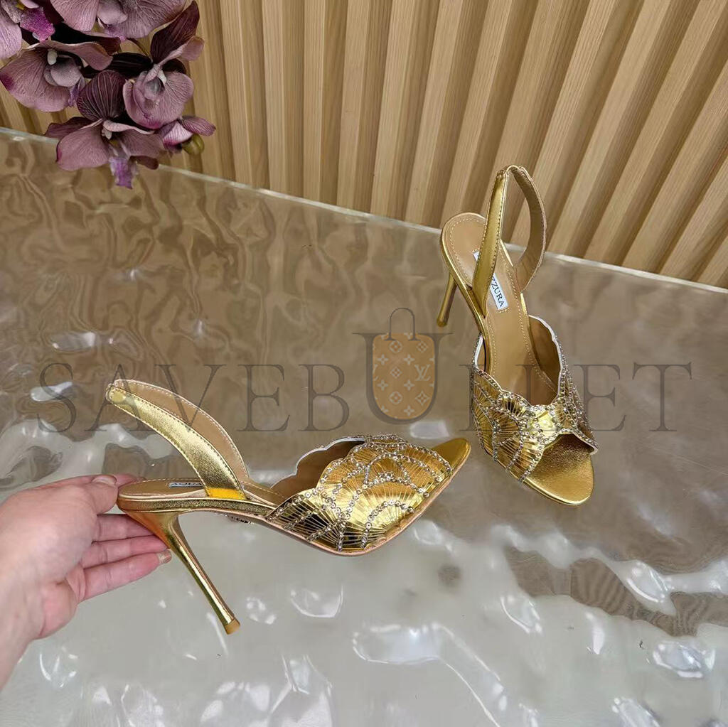 AQUAZZURACE SOIR 105 EMBELLISHED LEATHER SANDALS