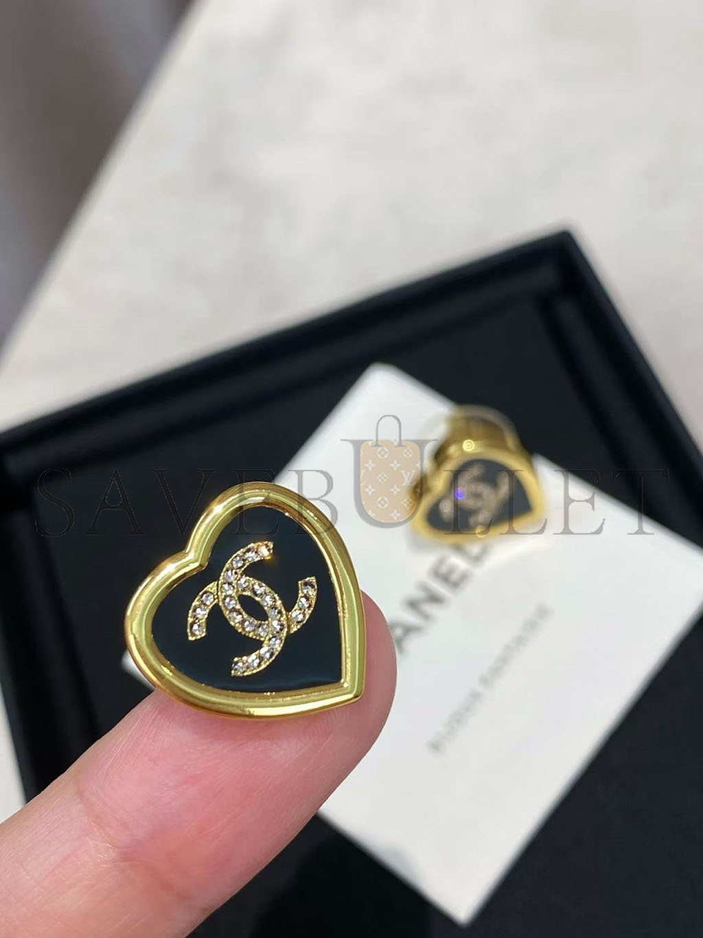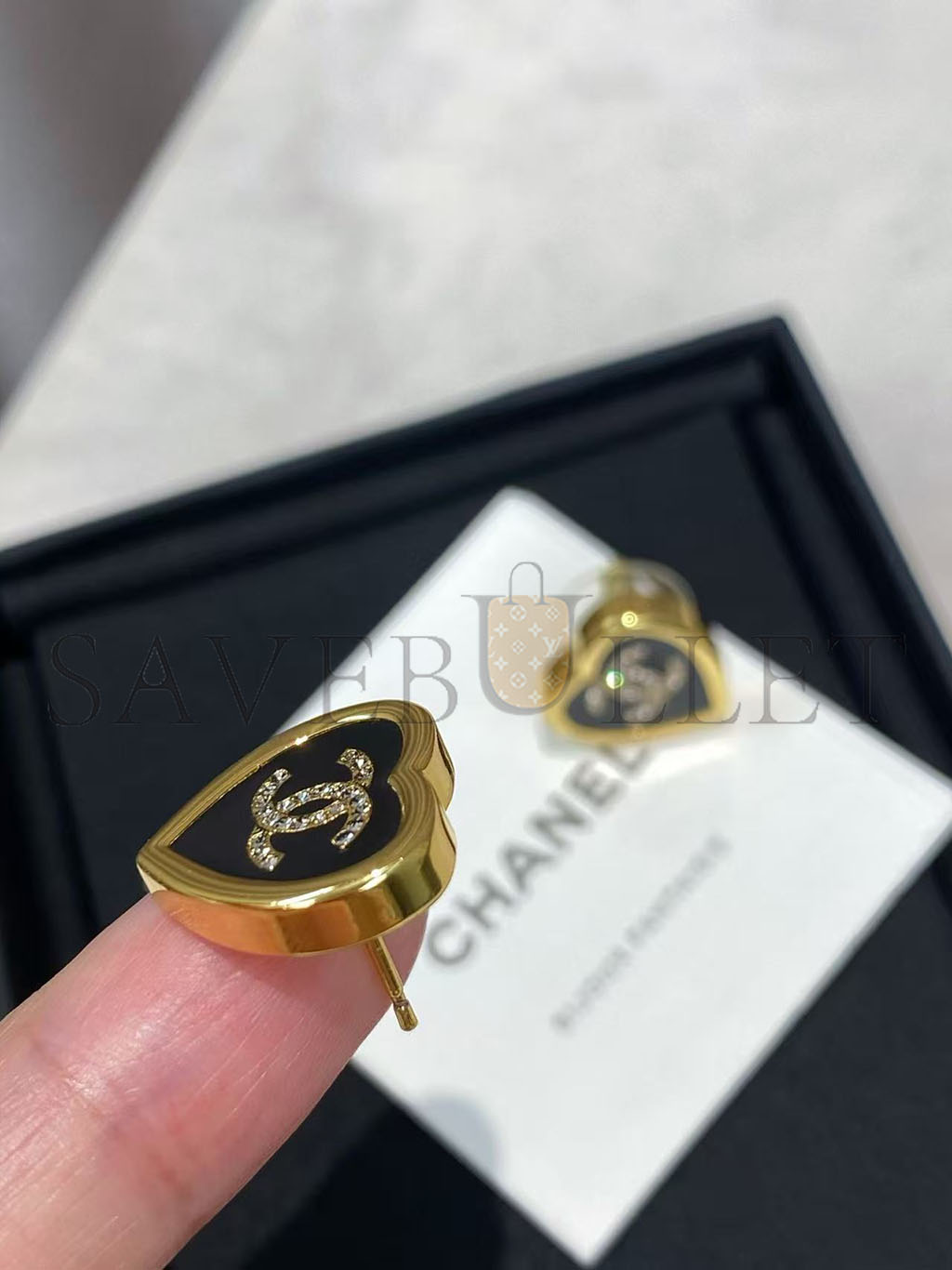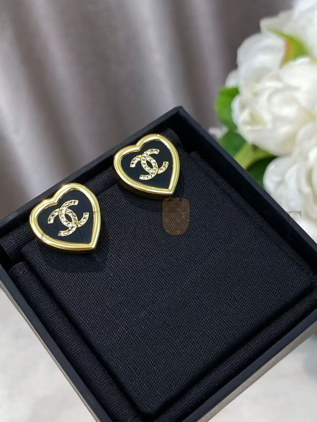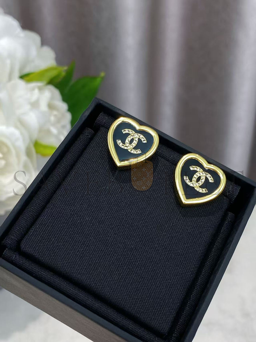 CHANEL HEART HEART BLACK GOLD EARRINGS ABG311