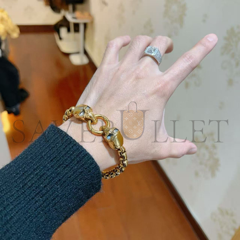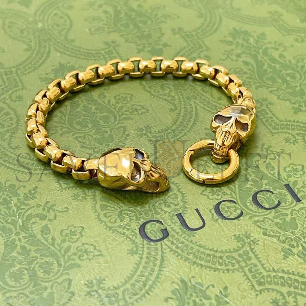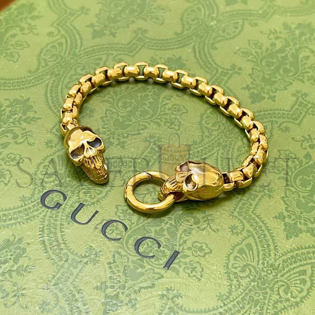 GUCCI GOLD SKULL CUFF BANGLE BRACELET BASKET WEAVE GOLD