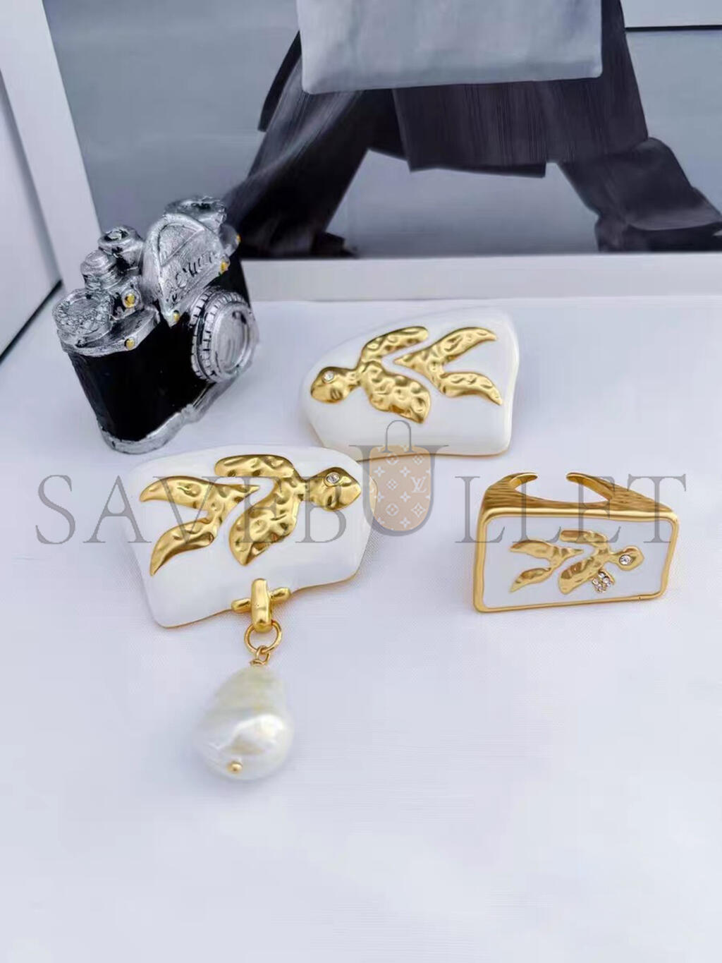 SCHIAPARELLI PEACE DOVE ENAMEL BAROQUE EARRINGS
