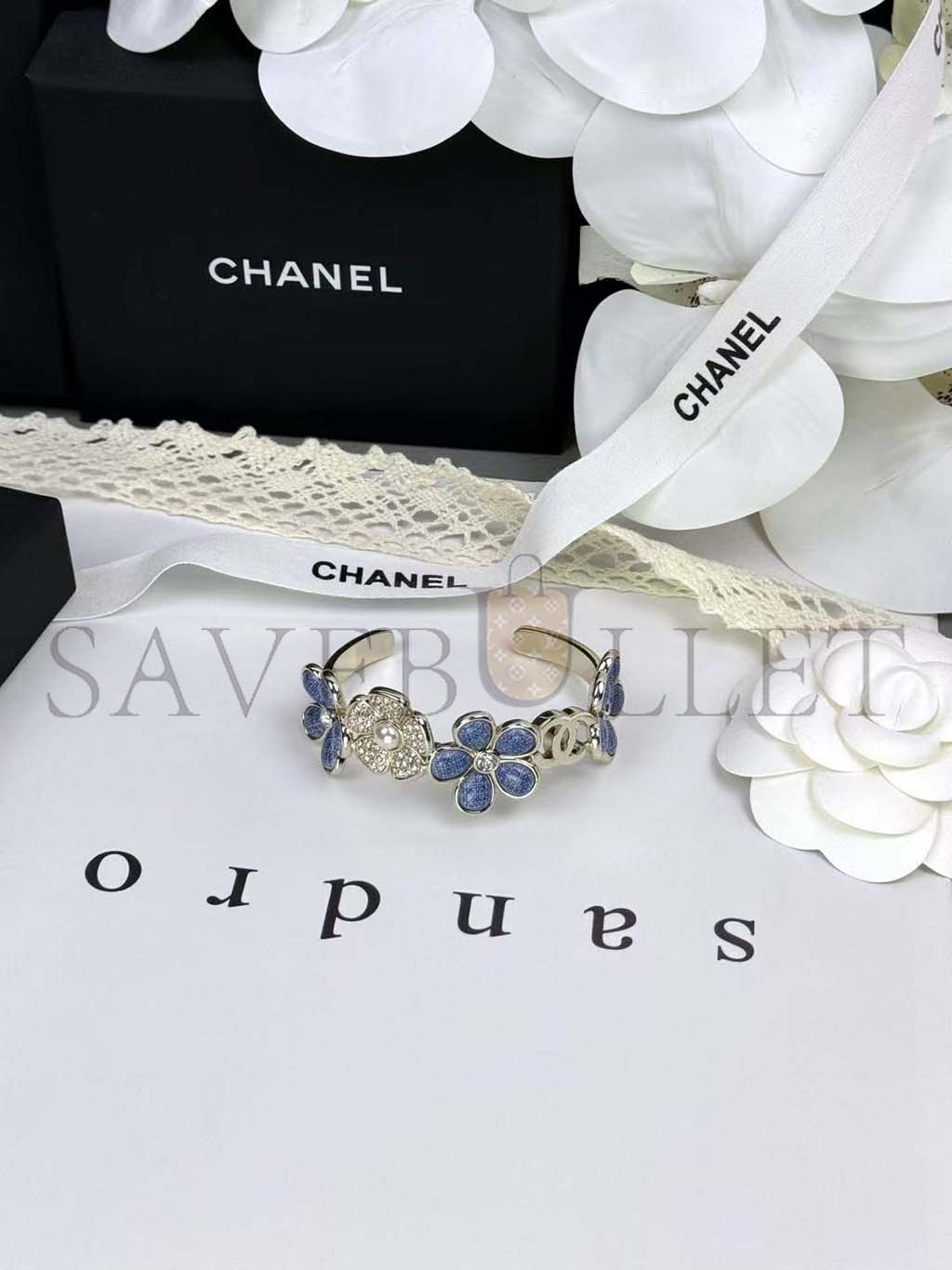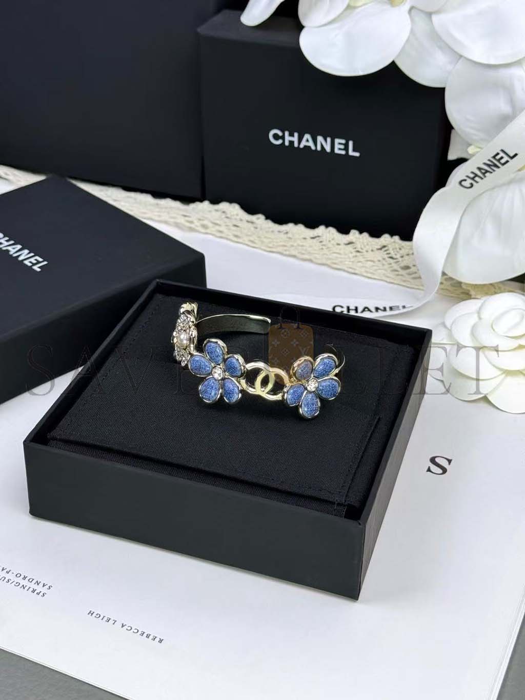 CHANEL DENIM BANGLE WITH FLOWER MOTIF ABG832