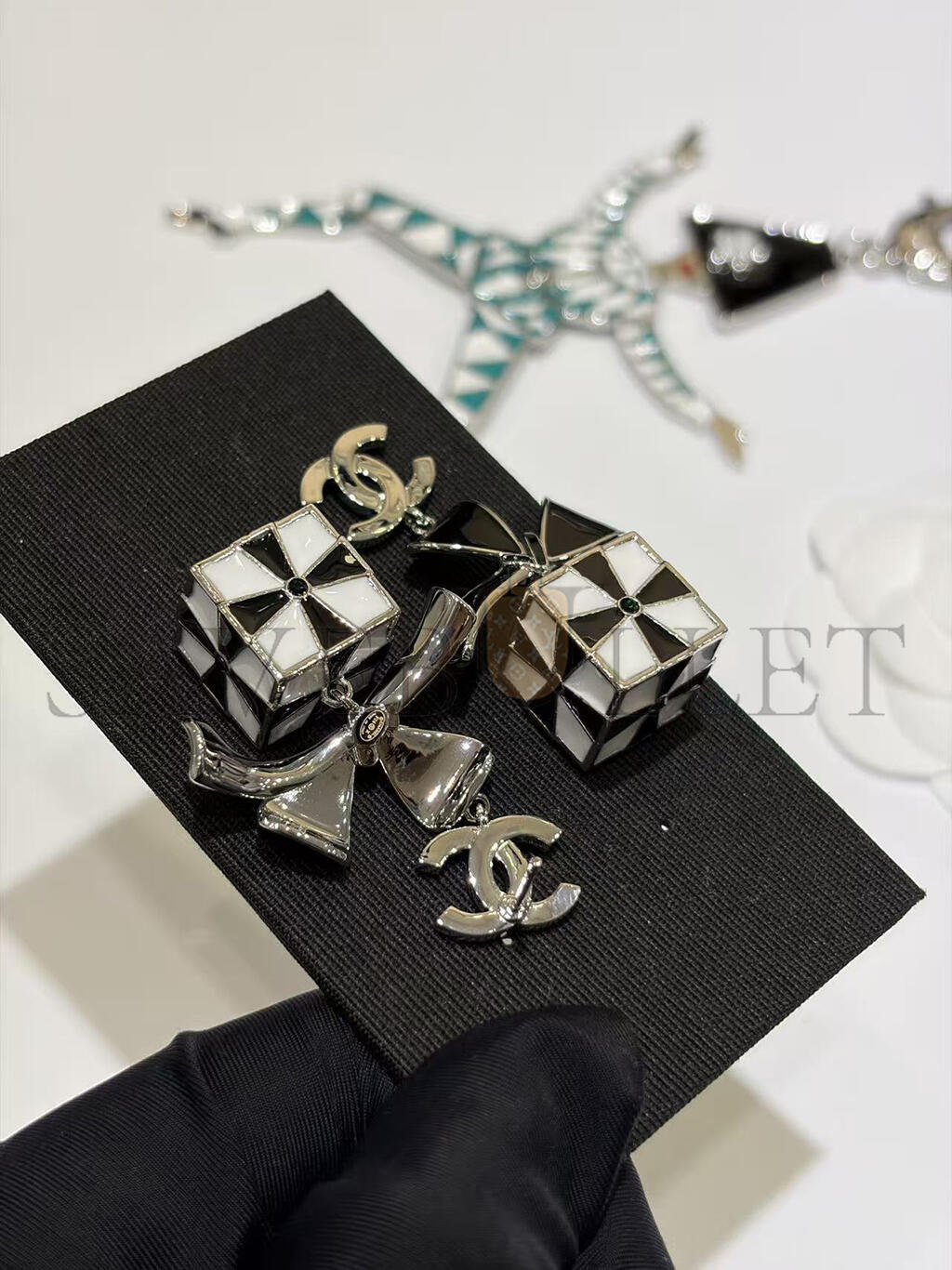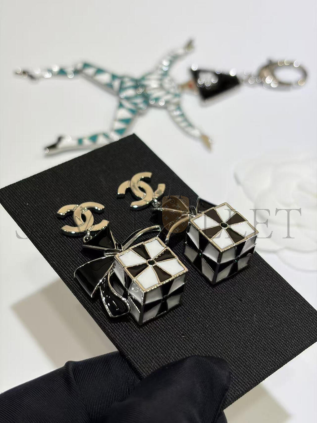 CHANEL CHRISTMAS EDITION METAL EARRINGS IN BLACK