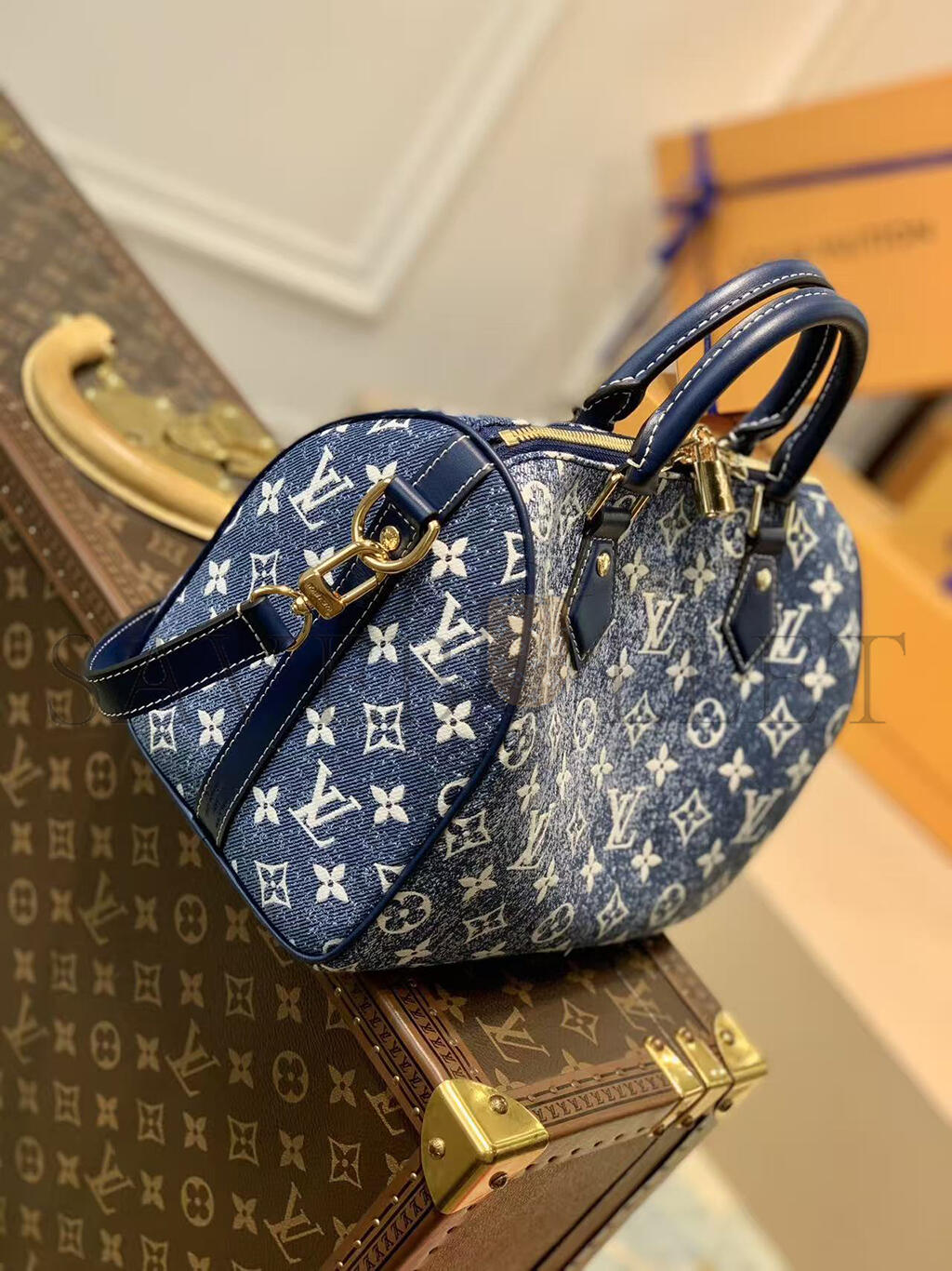 LOUIS VUITTON DENIM MONOGRAM JACQUARD SPEEDY BANDOULIERE 25 BLEU M59609 (25*19*15cm)