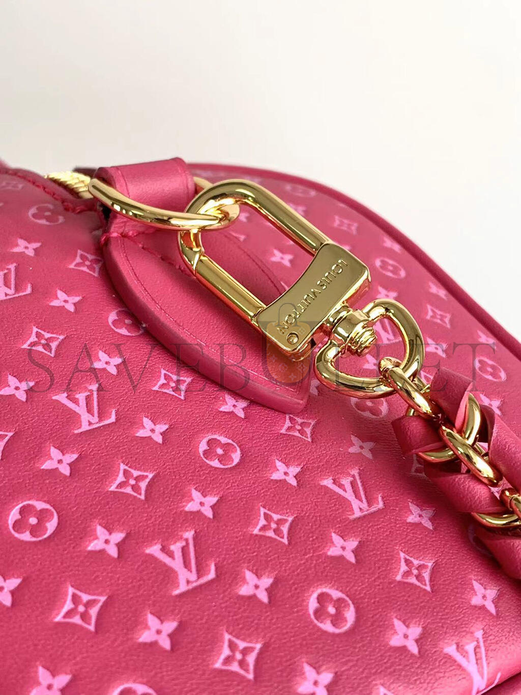 Fashioned from calfskin with a very small Monogram motif embossed then printed on the leather, this Speedy 20 handbag is part of the Nanogram capsule. Its inimitable silhouette, and engraved padlock, make this bag instantly recognizable. A removable and adjustable braided-chain-and-leather strap enables shoulder or cross-body carry.