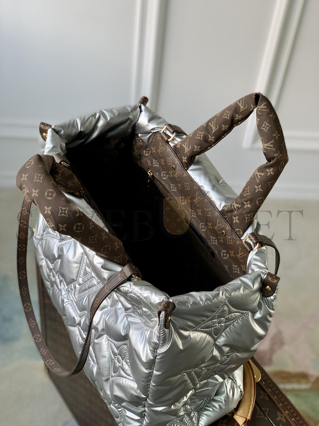 A sporty-chic tote with room for all the essentials: the LV Pillow OnTheGo GM is a stand-out piece for the winter season. Eco-designed using recycled and sustainable materials, it is made from silvery padded nylon, embroidered with Monogram motifs. With padded top handles and two long canvas straps, the bag is easy to wear and comfortable to carry.