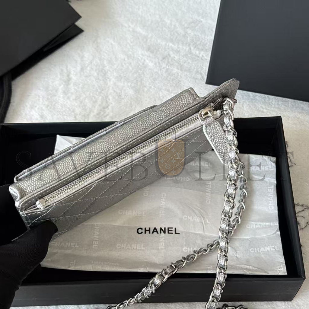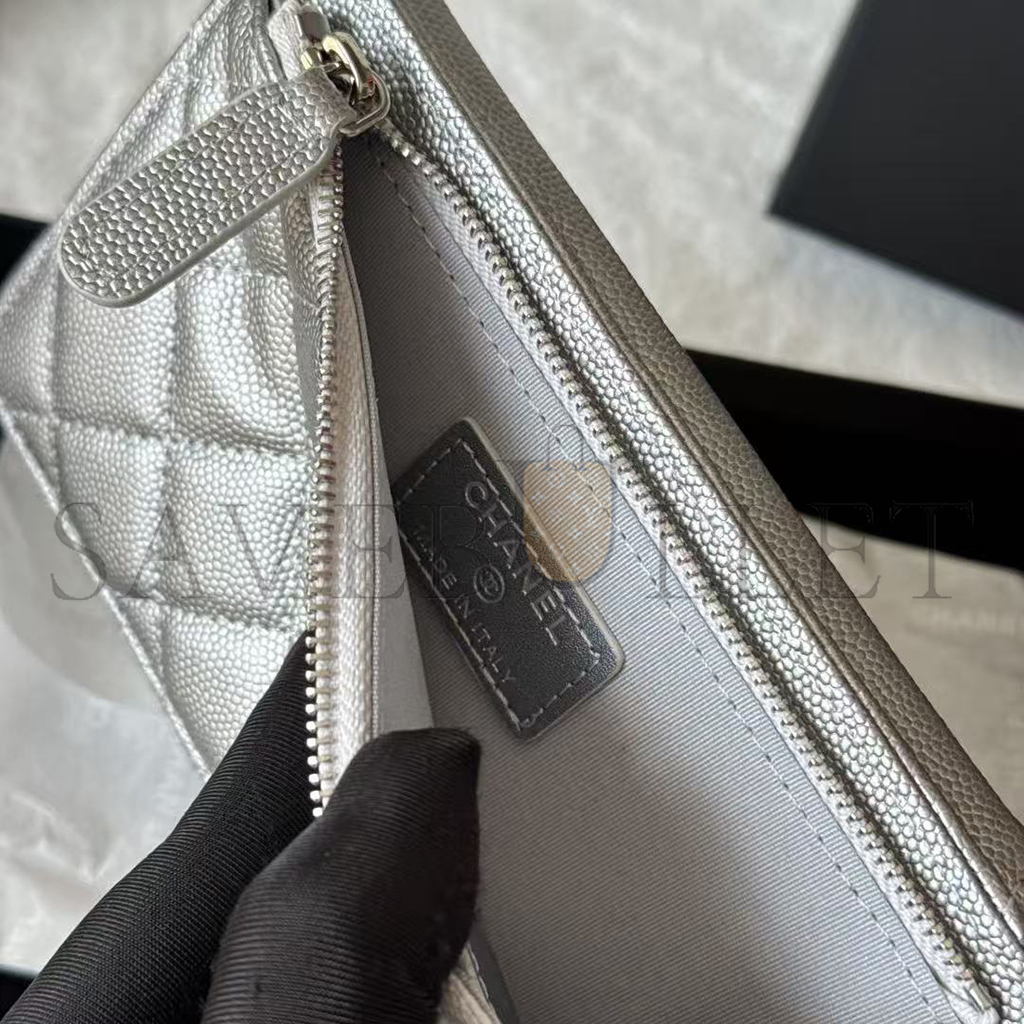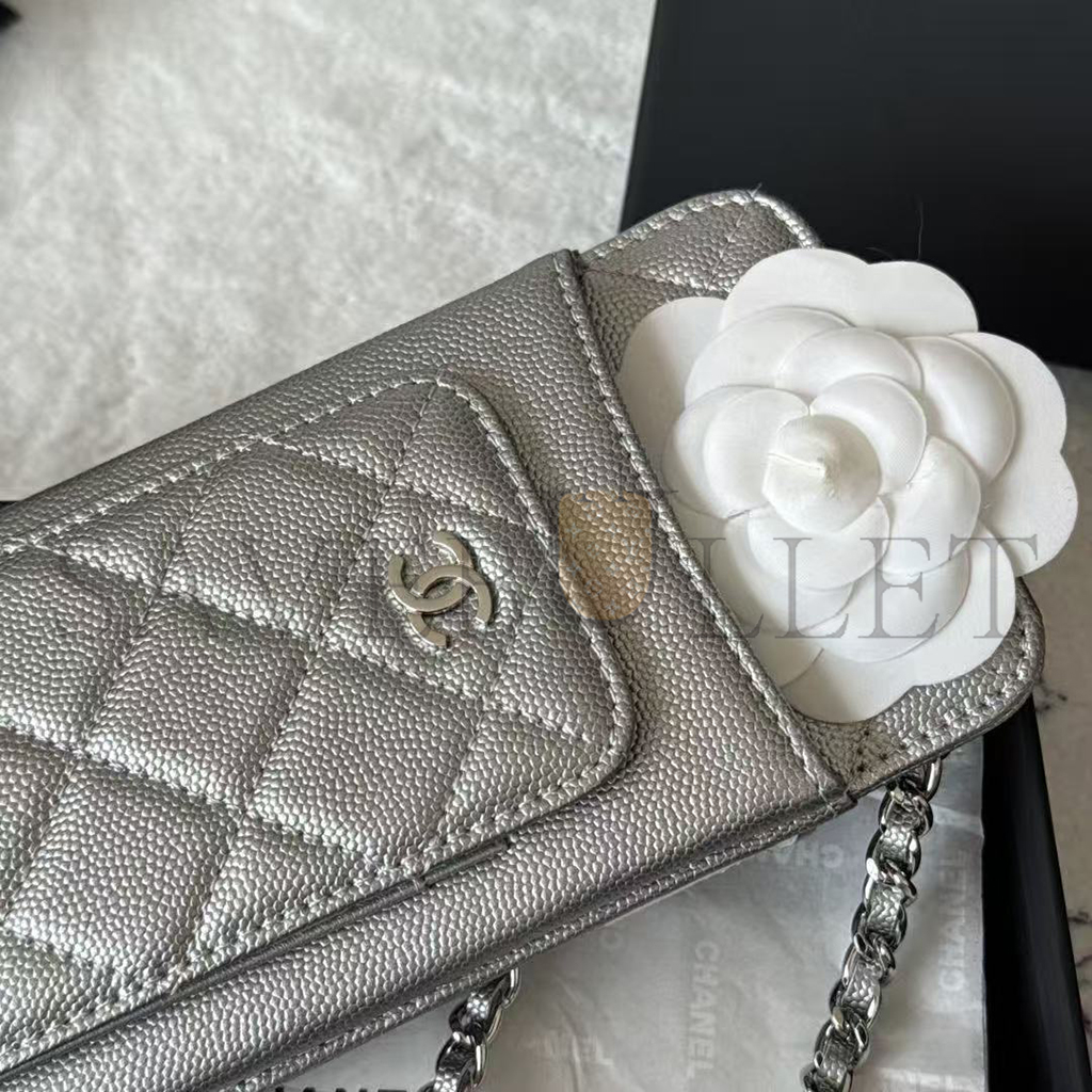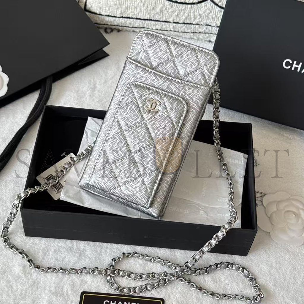 CHANEL CAVIAR QUILTED CC PHONE HOLDER METALLIC SILVER AP0990 (18*10*3cm)