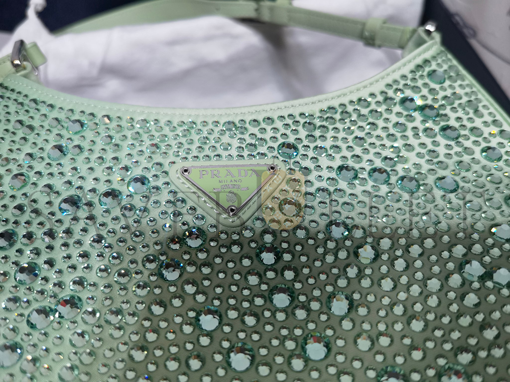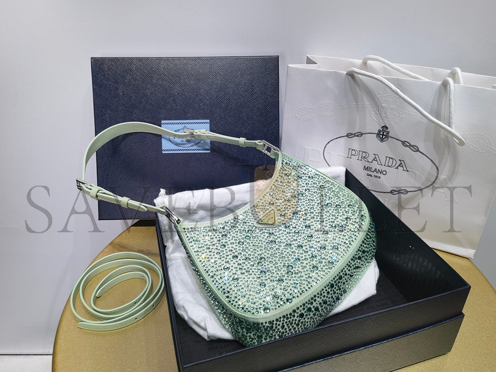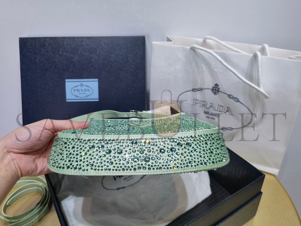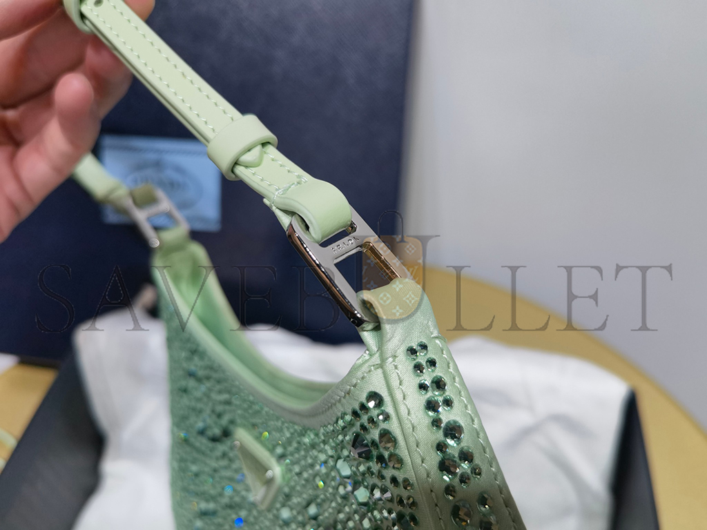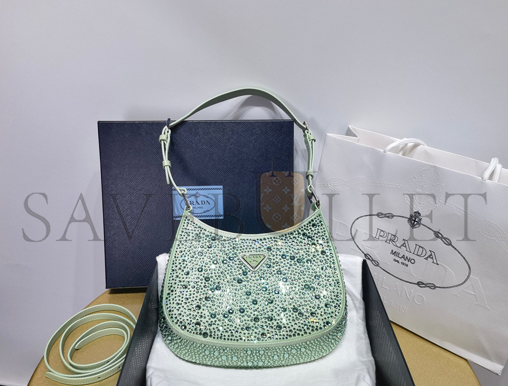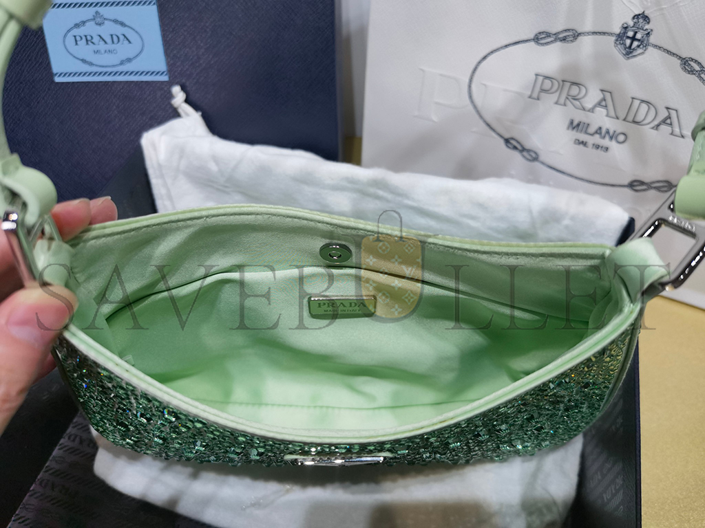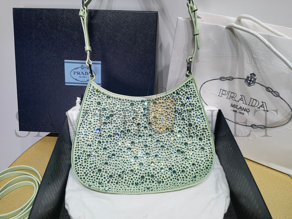 PRADA CLEO SATIN BAG WITH APPLIQUES 1BC169 (22*18.5*4.5cm)