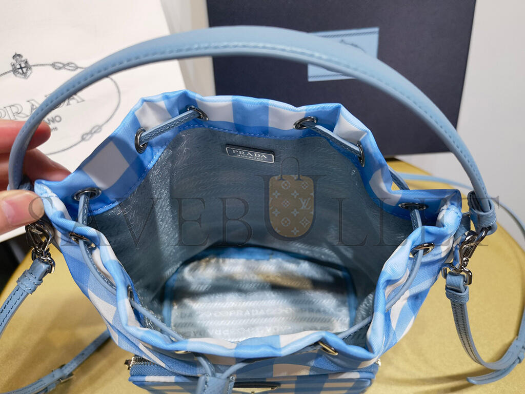 PRADA DUET DRAWSTRING BUCKET BAG PRINTED TESSUTO SMALL 1BH038 (22.5*17.5*12cm)