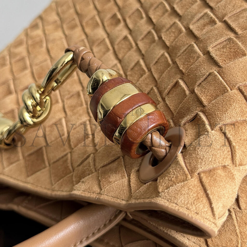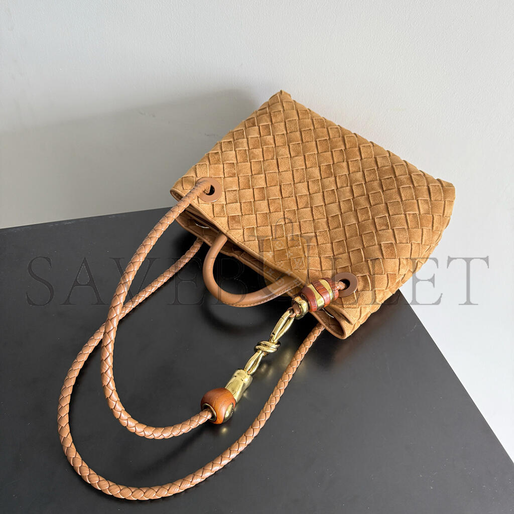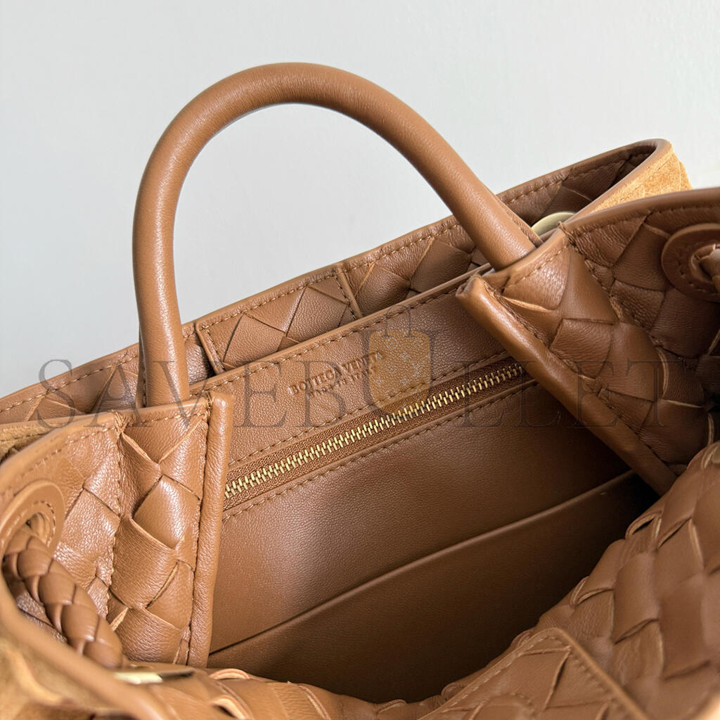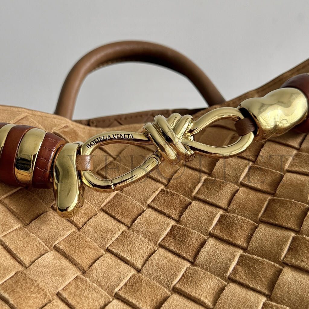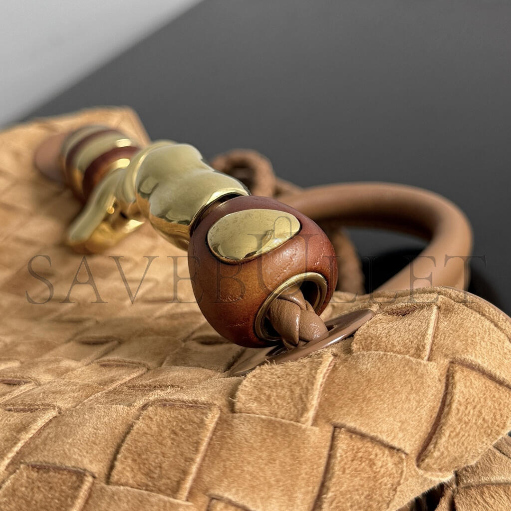 BOTTEGA VENETA ANDIAMO SMALL SUEDE TOTE SUEDE AMBER BROWN BAG 743568 (25*22*10.5cm)