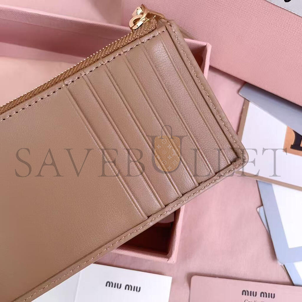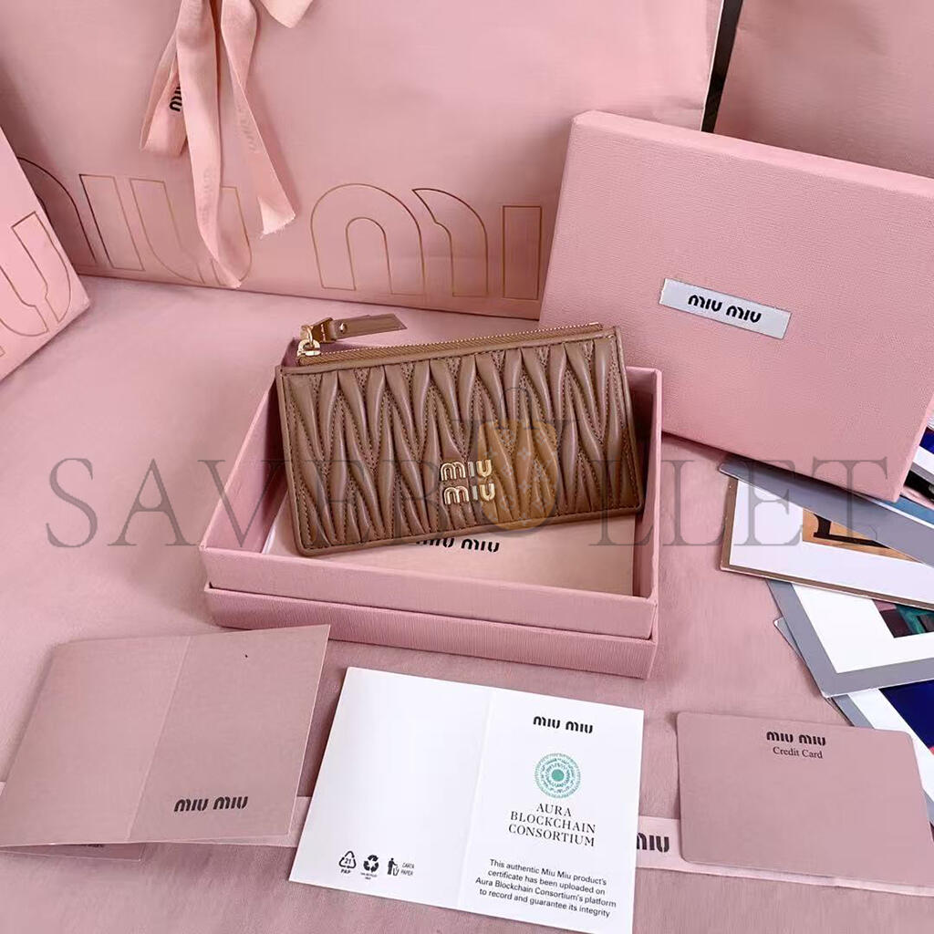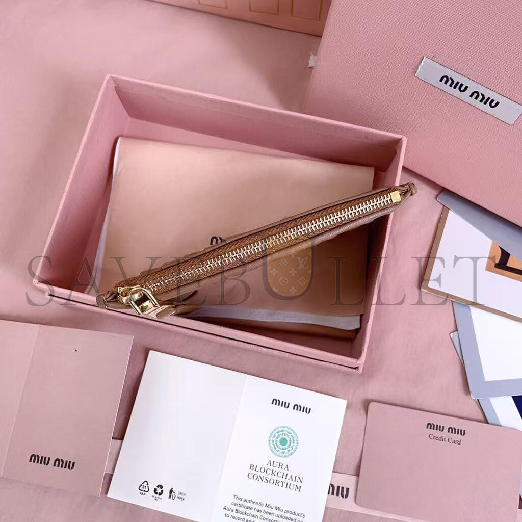 MIU MIU MATELASSÉ ZIPPERED SOLID COLOR LOGO LEATHER WALLET 5MB006-F0770 (15*8cm)
