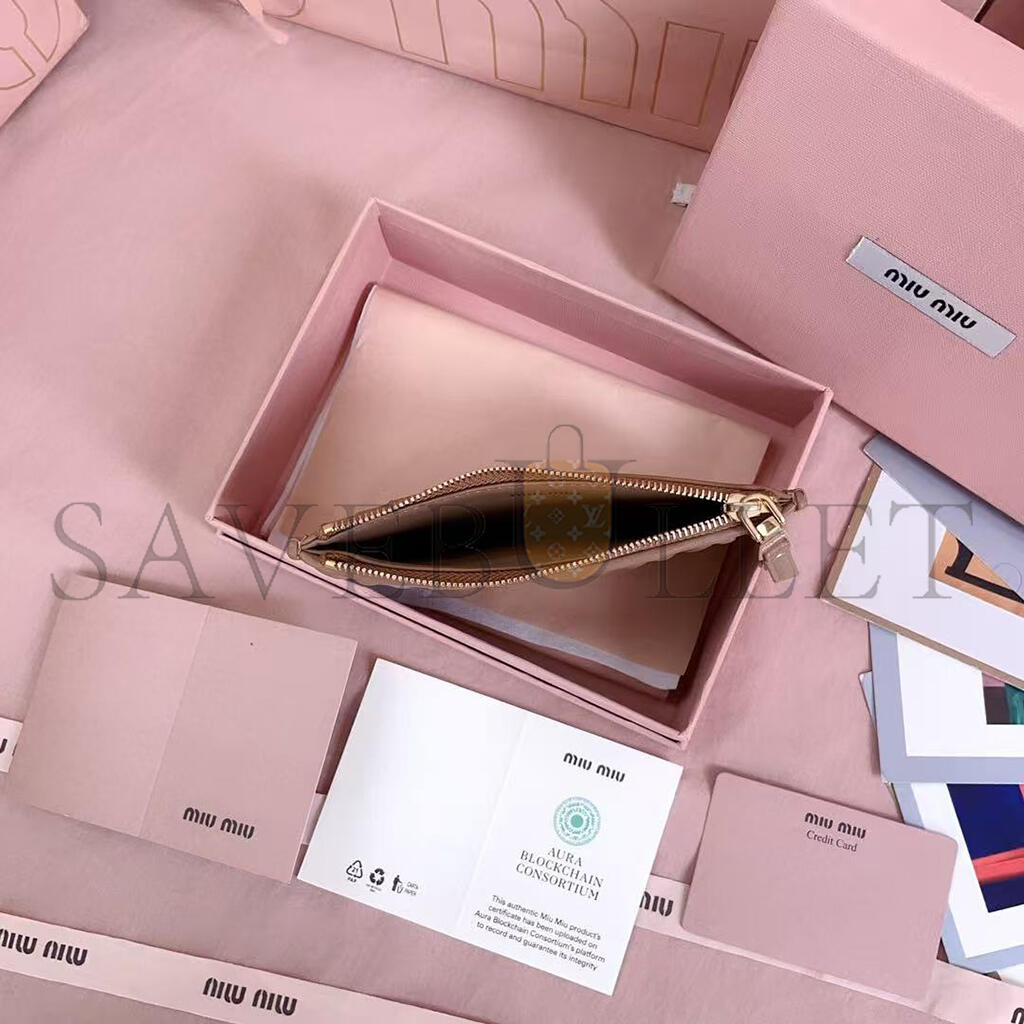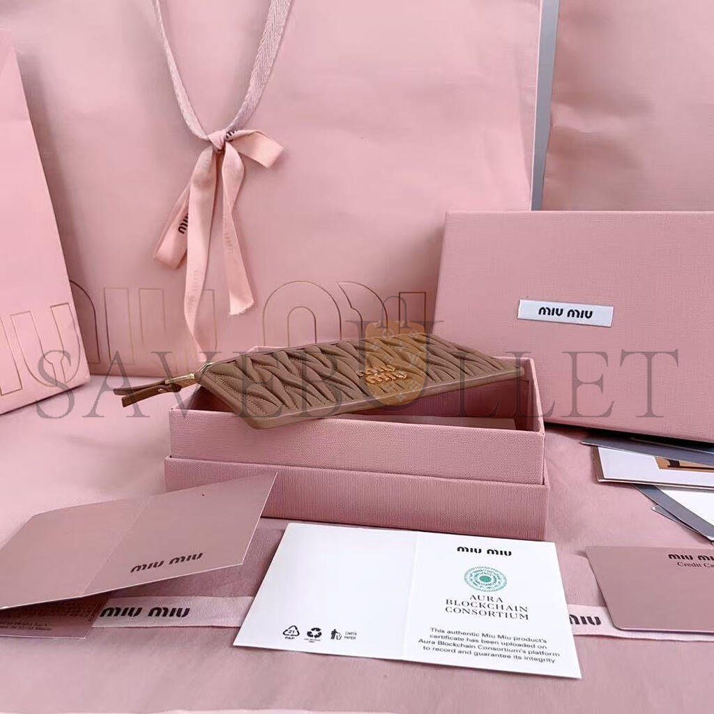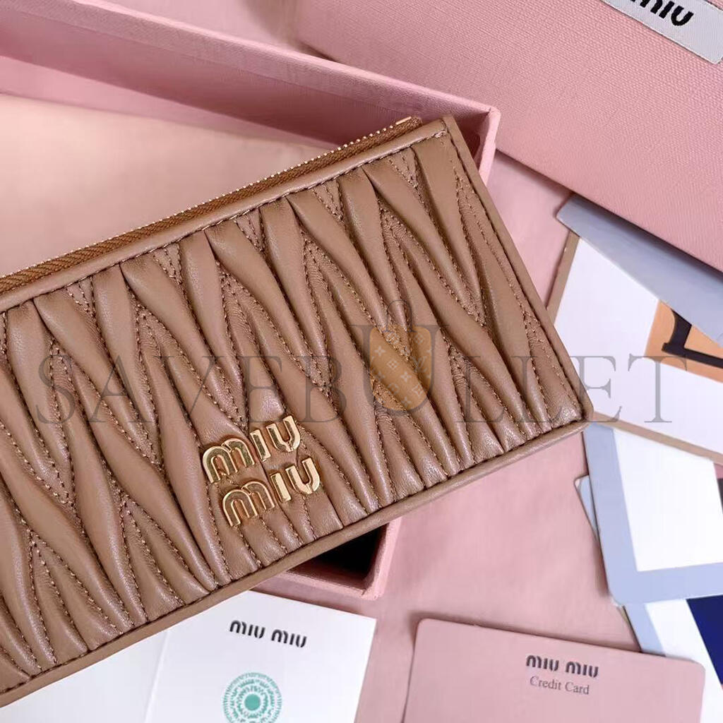 MIU MIU MATELASSÉ ZIPPERED SOLID COLOR LOGO LEATHER WALLET 5MB006-F0770 (15*8cm)