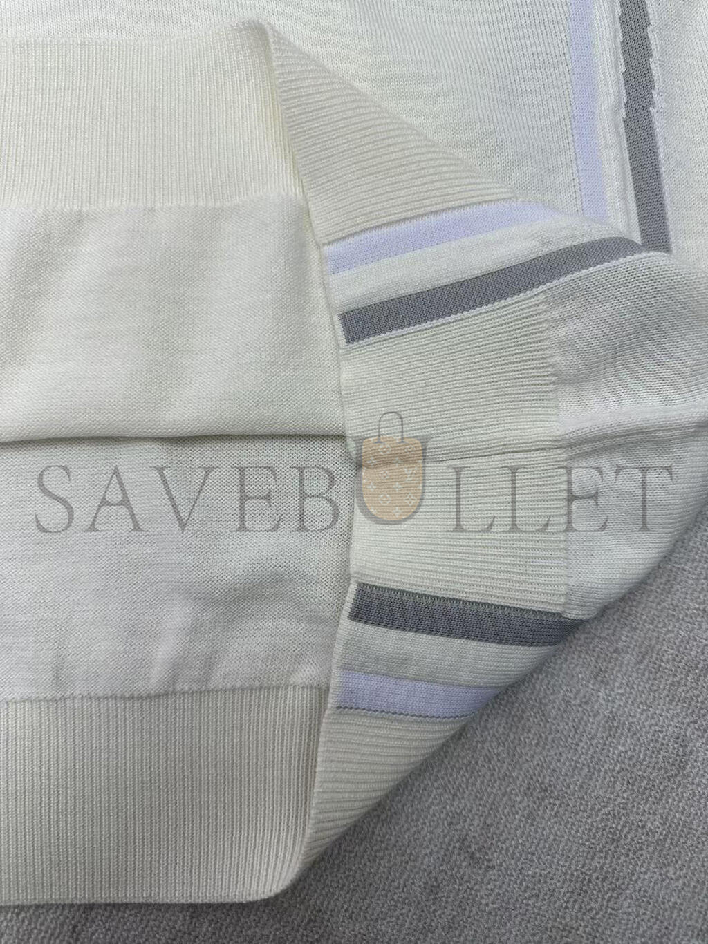 Intarsia signature motif on sleeves and sides