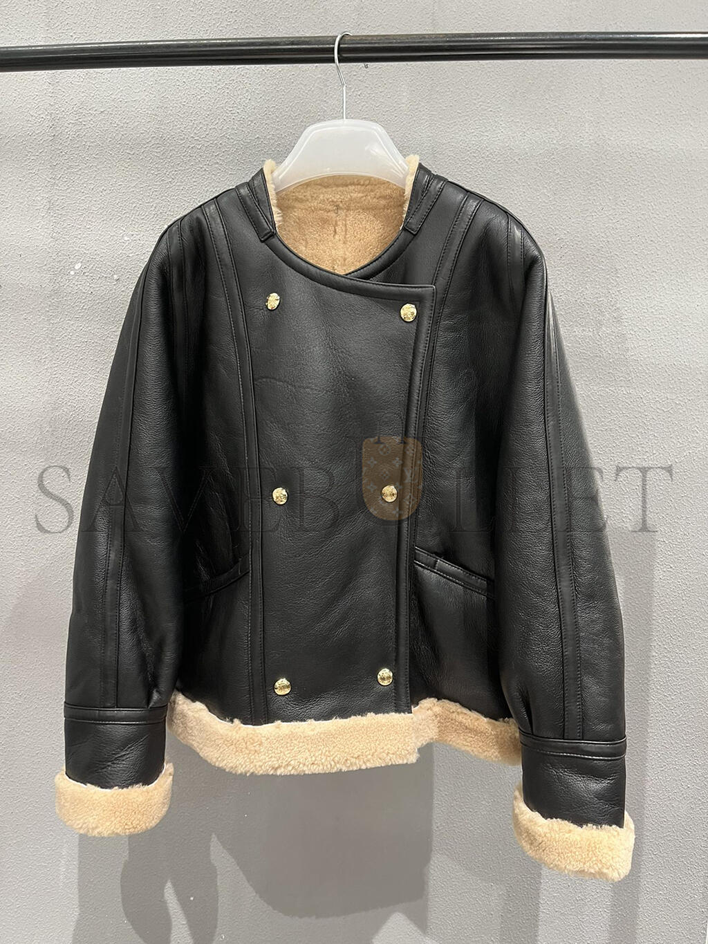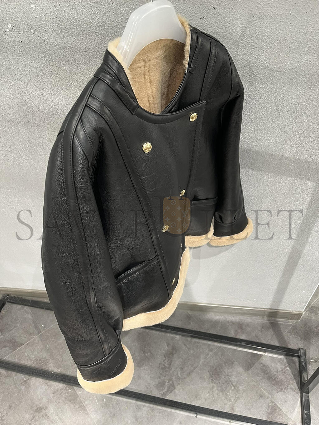 CELINE BLACK SHEARLING AND LEATHER JACKET FR