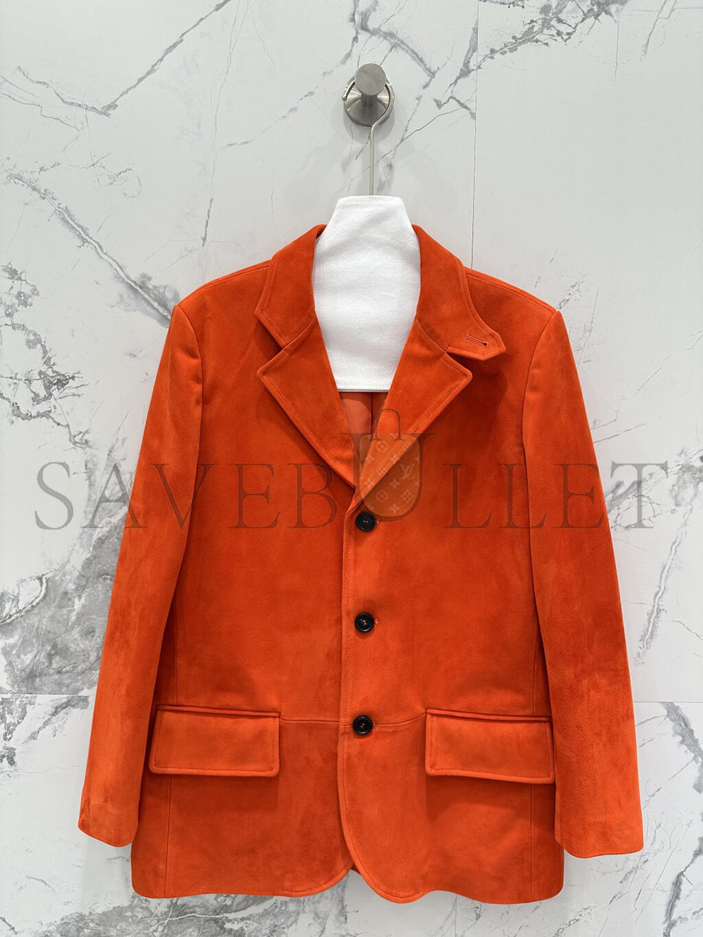 Notch lapels with leather insert