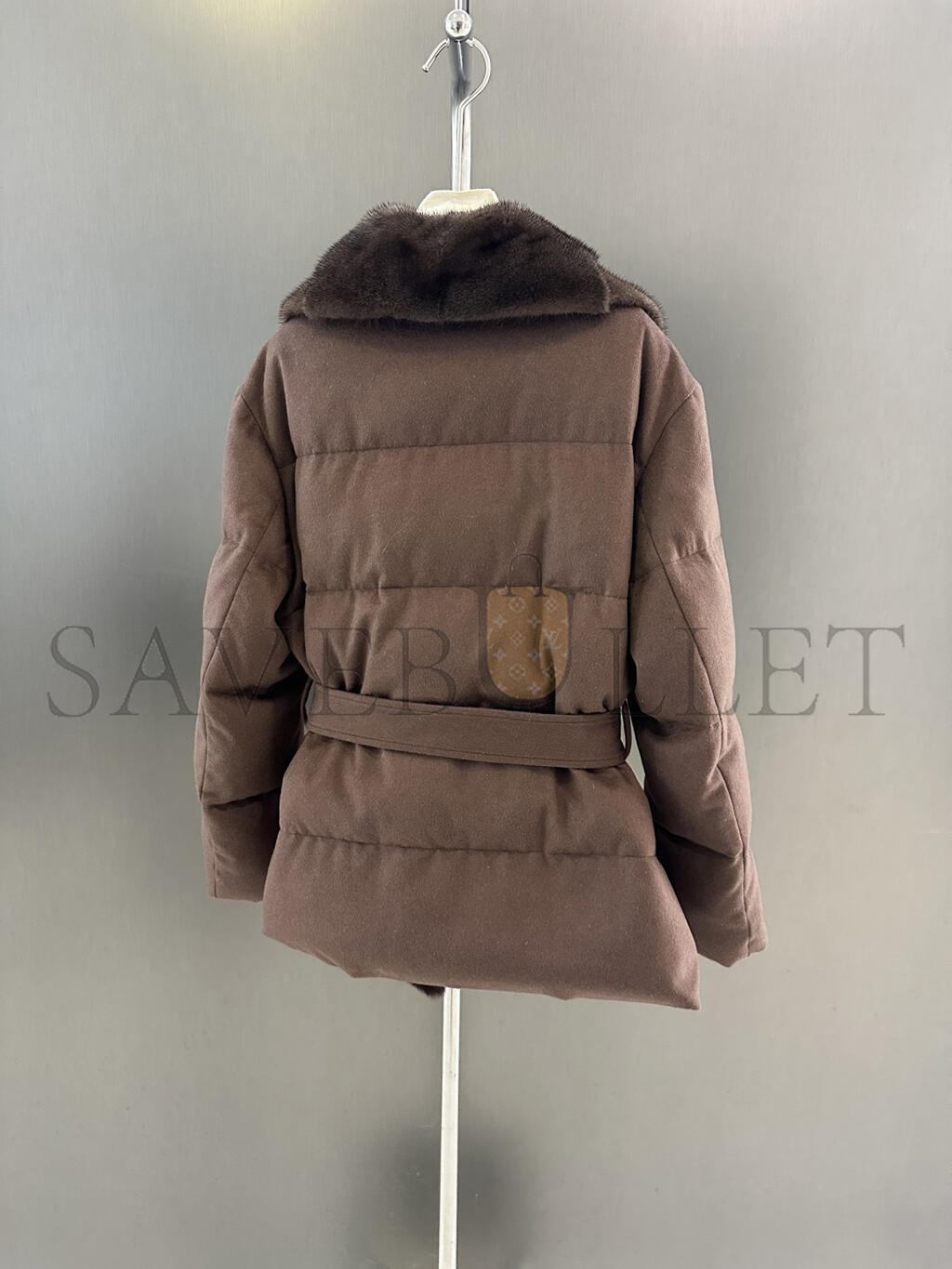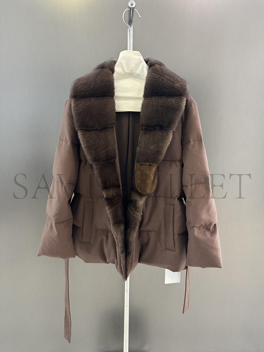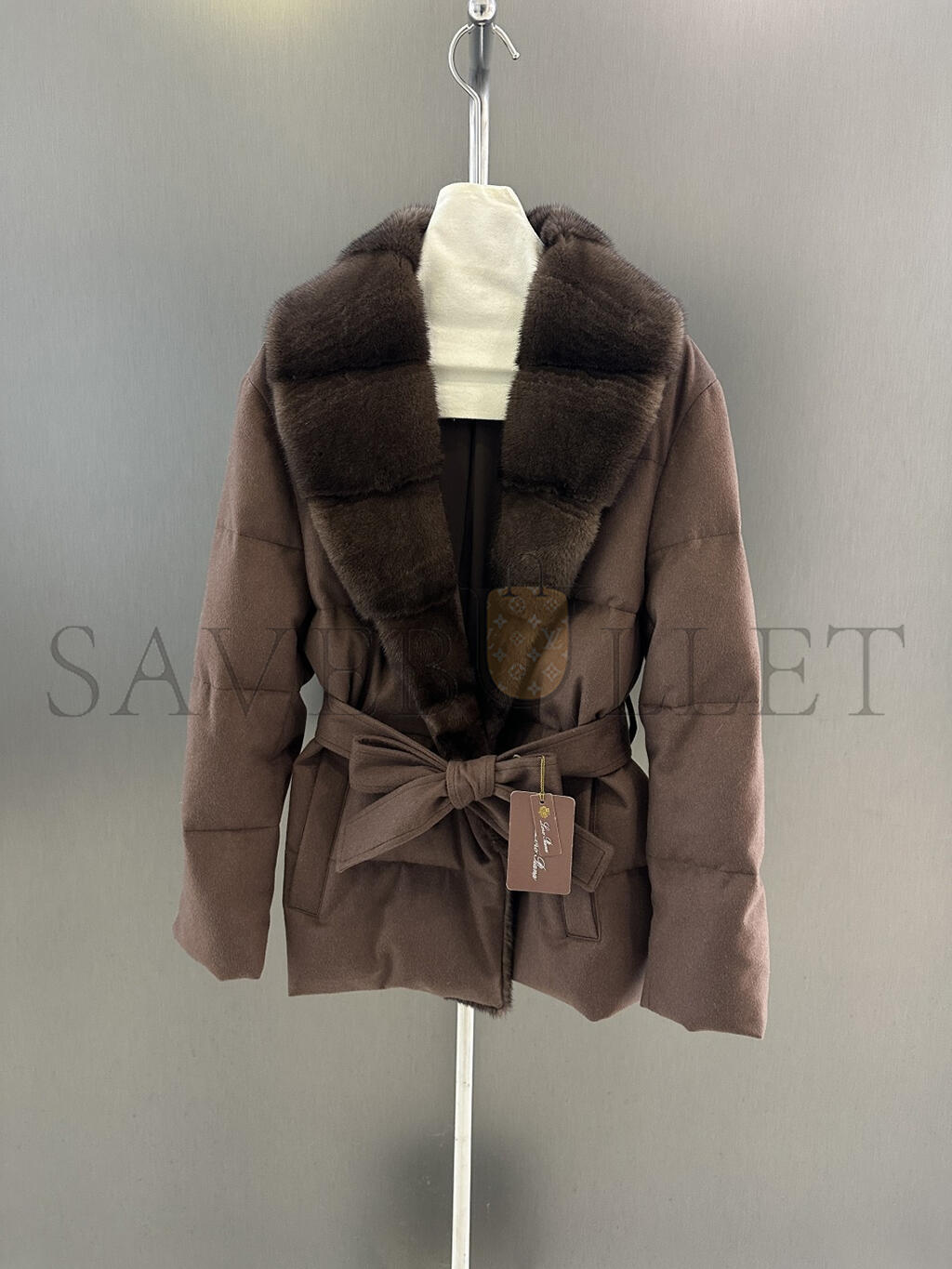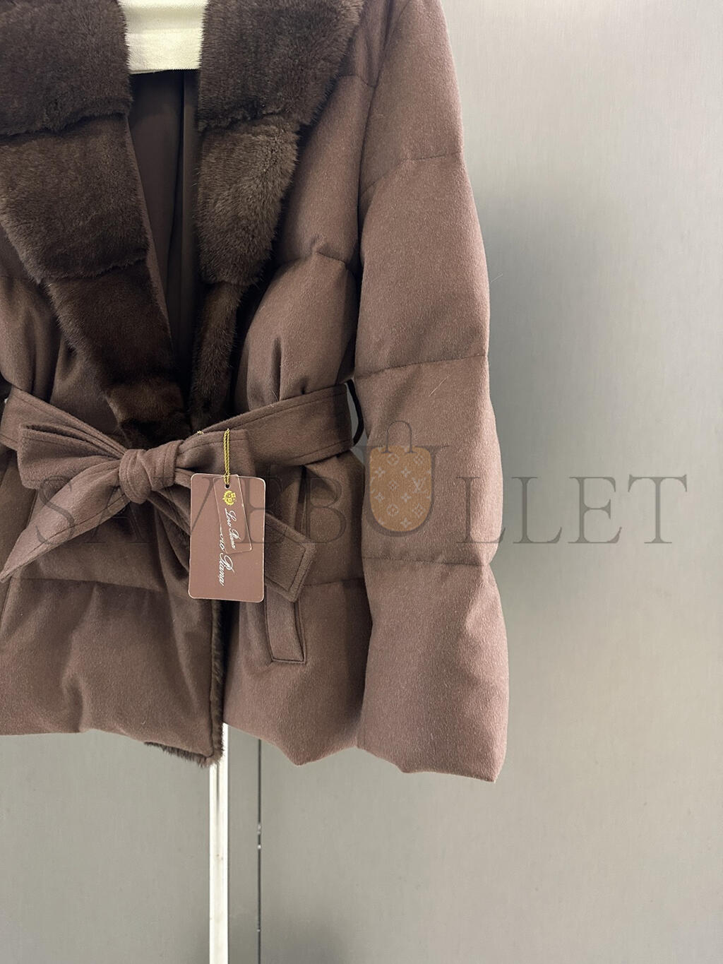LORO PIANA MINK COLLAR BELTED DOWN JACKET