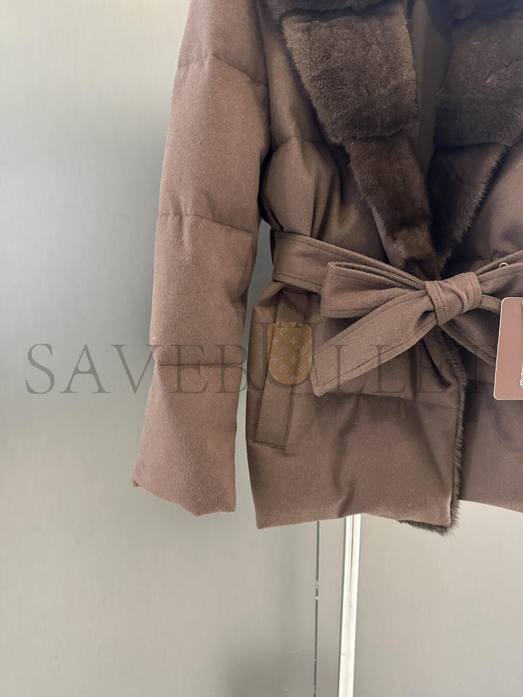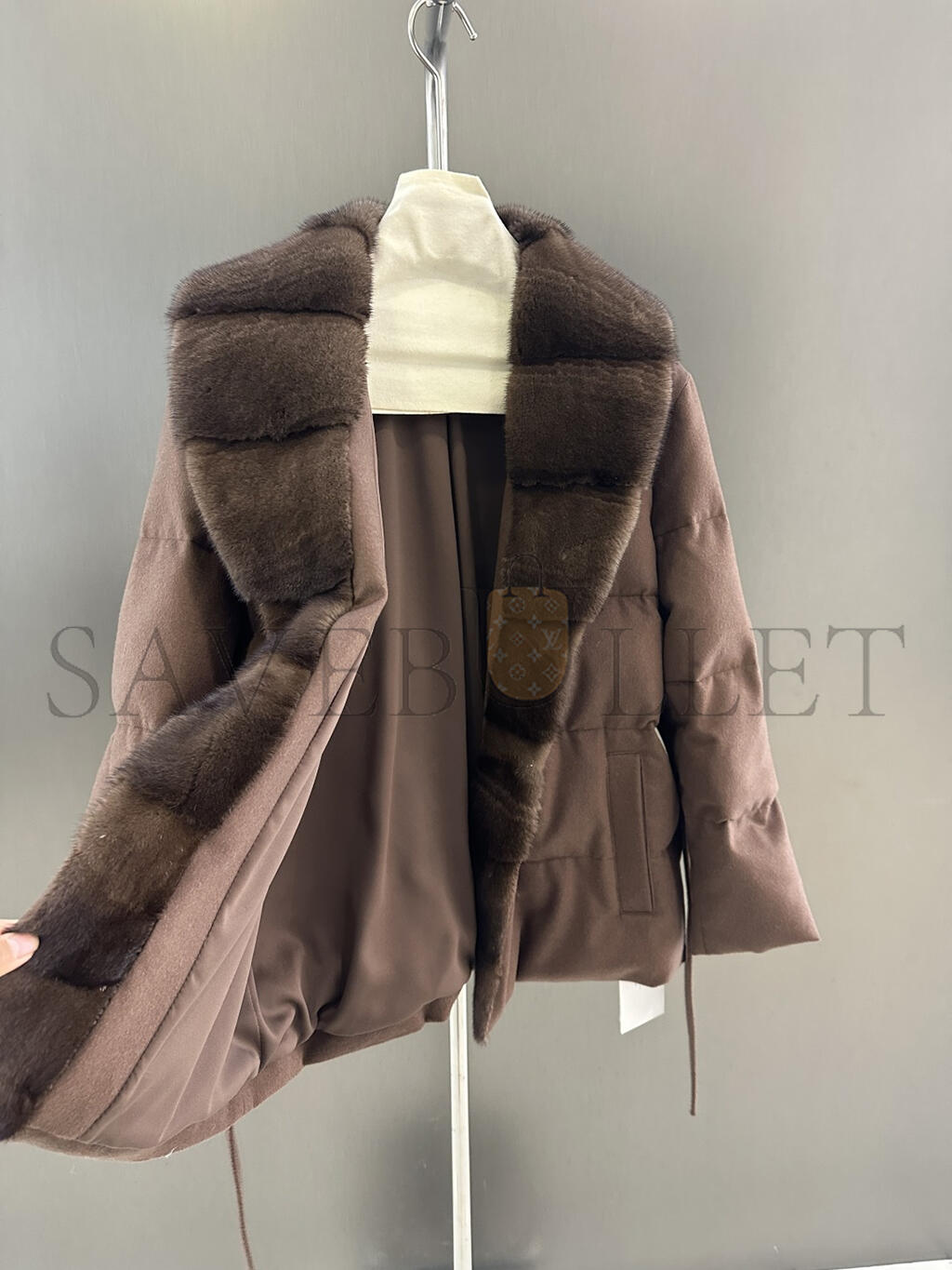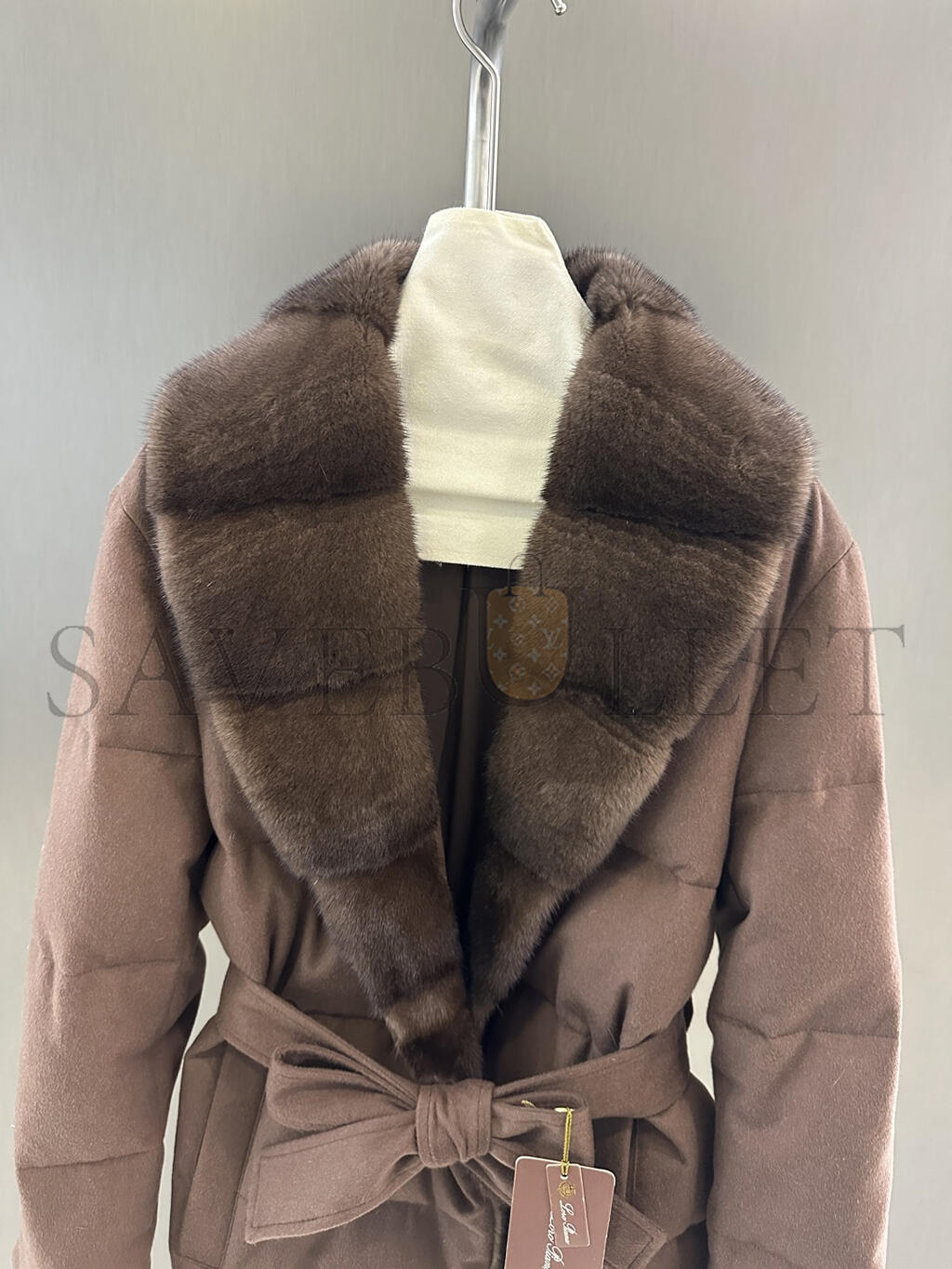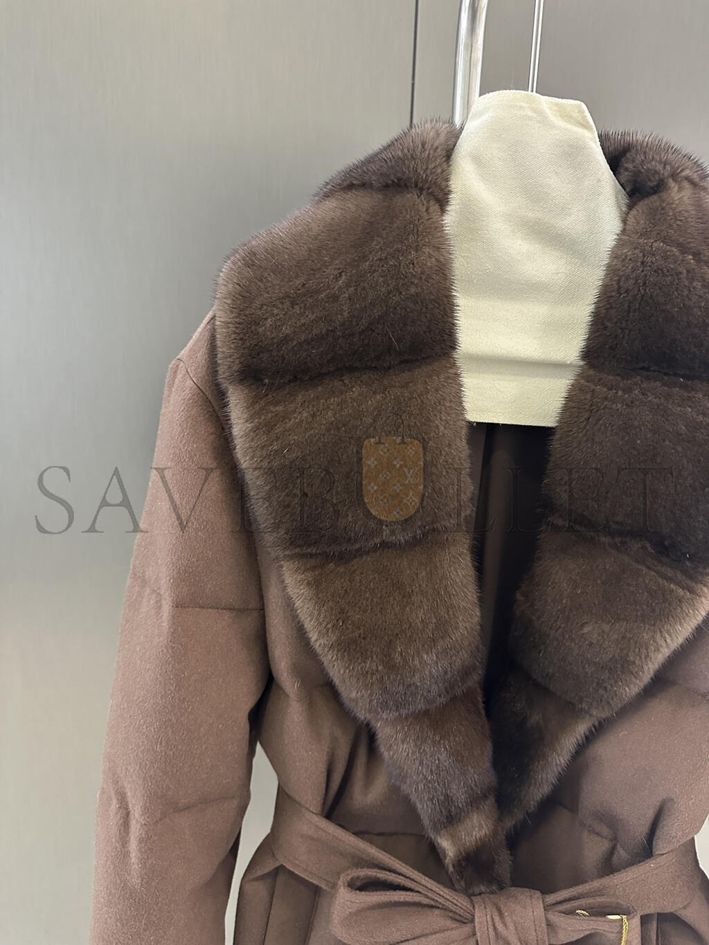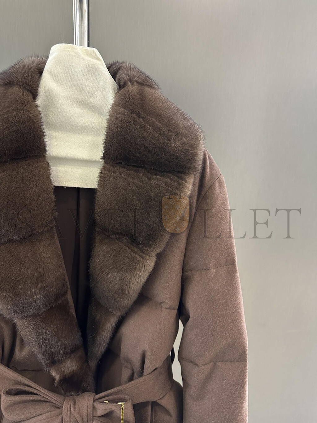 LORO PIANA MINK COLLAR BELTED DOWN JACKET