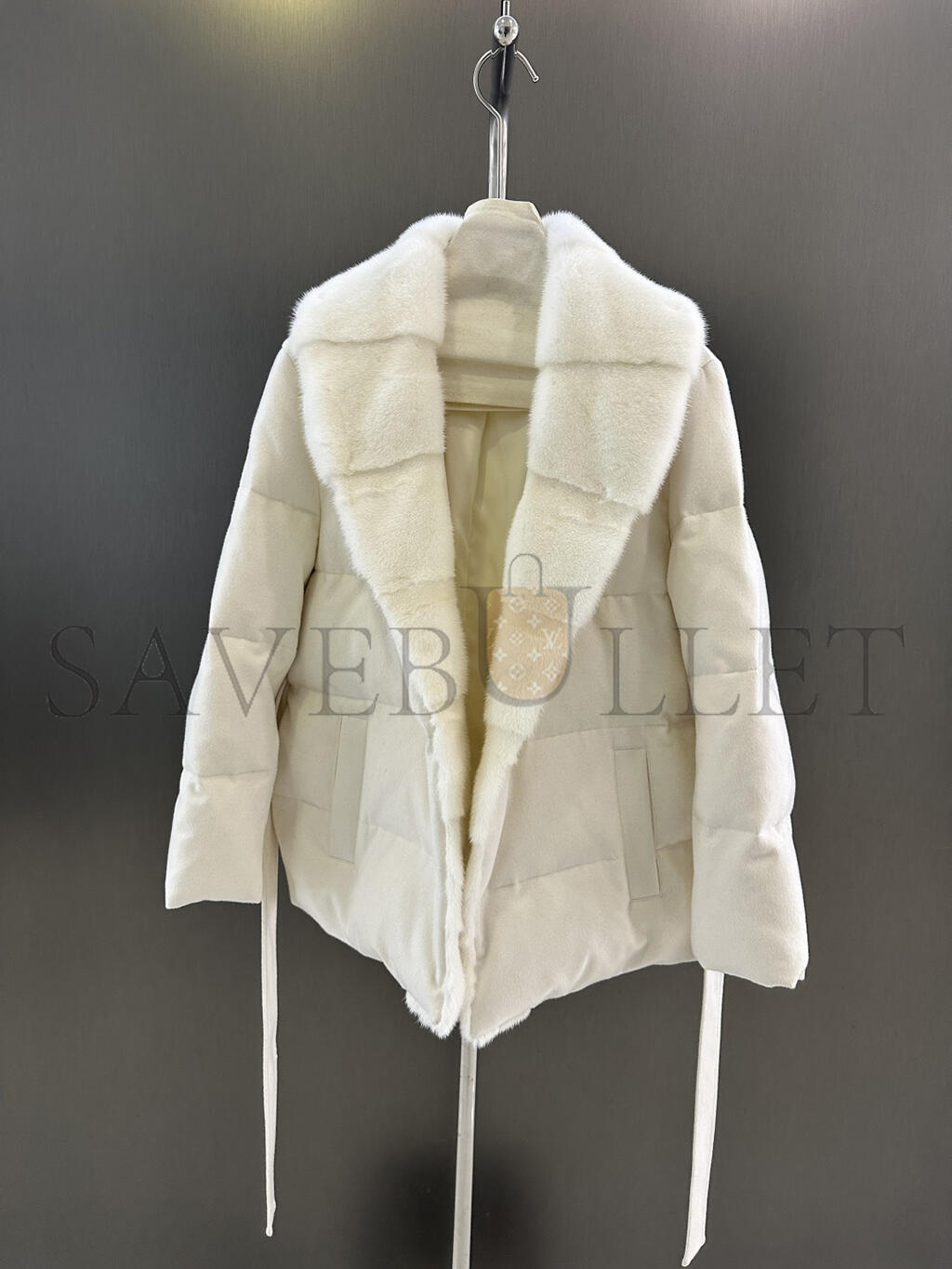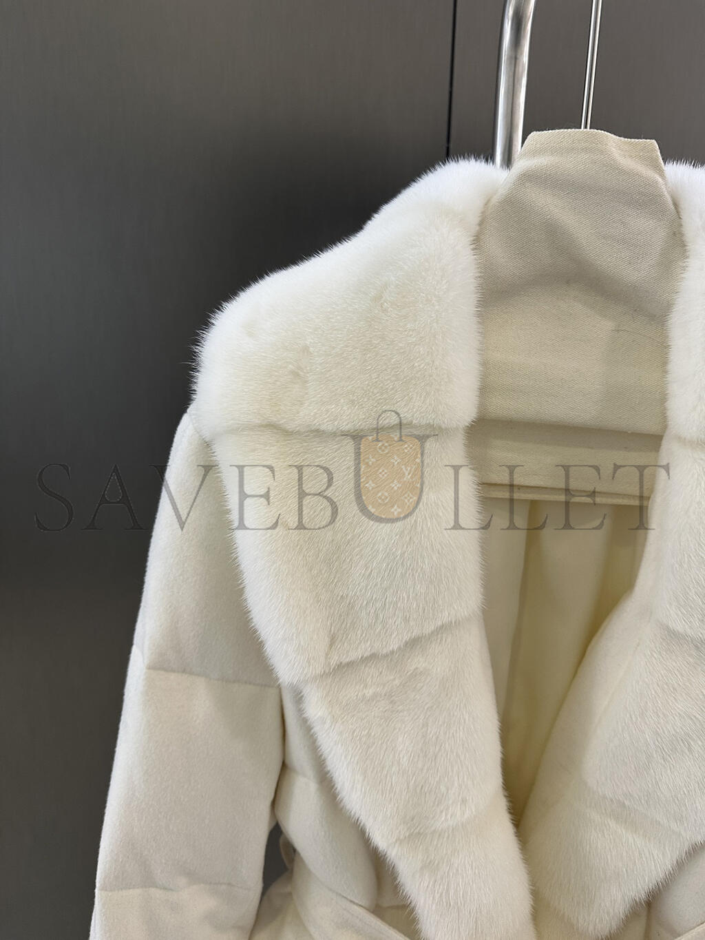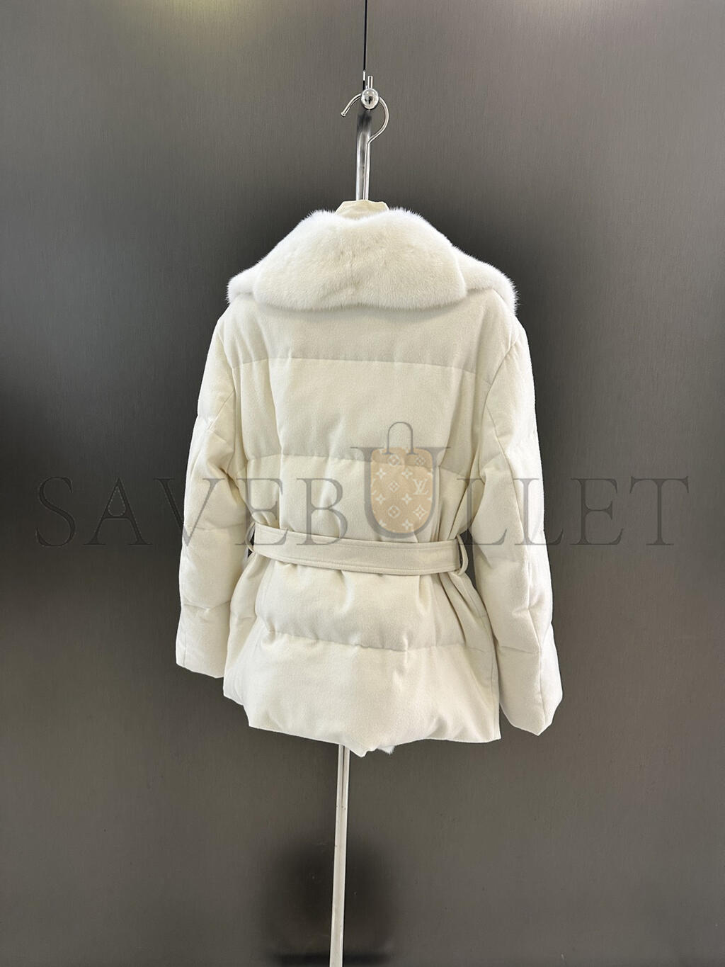 LORO PIANA MINK COLLAR BELTED DOWN JACKET