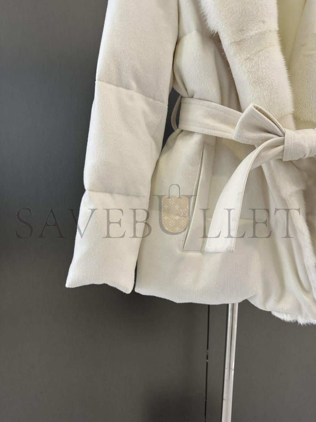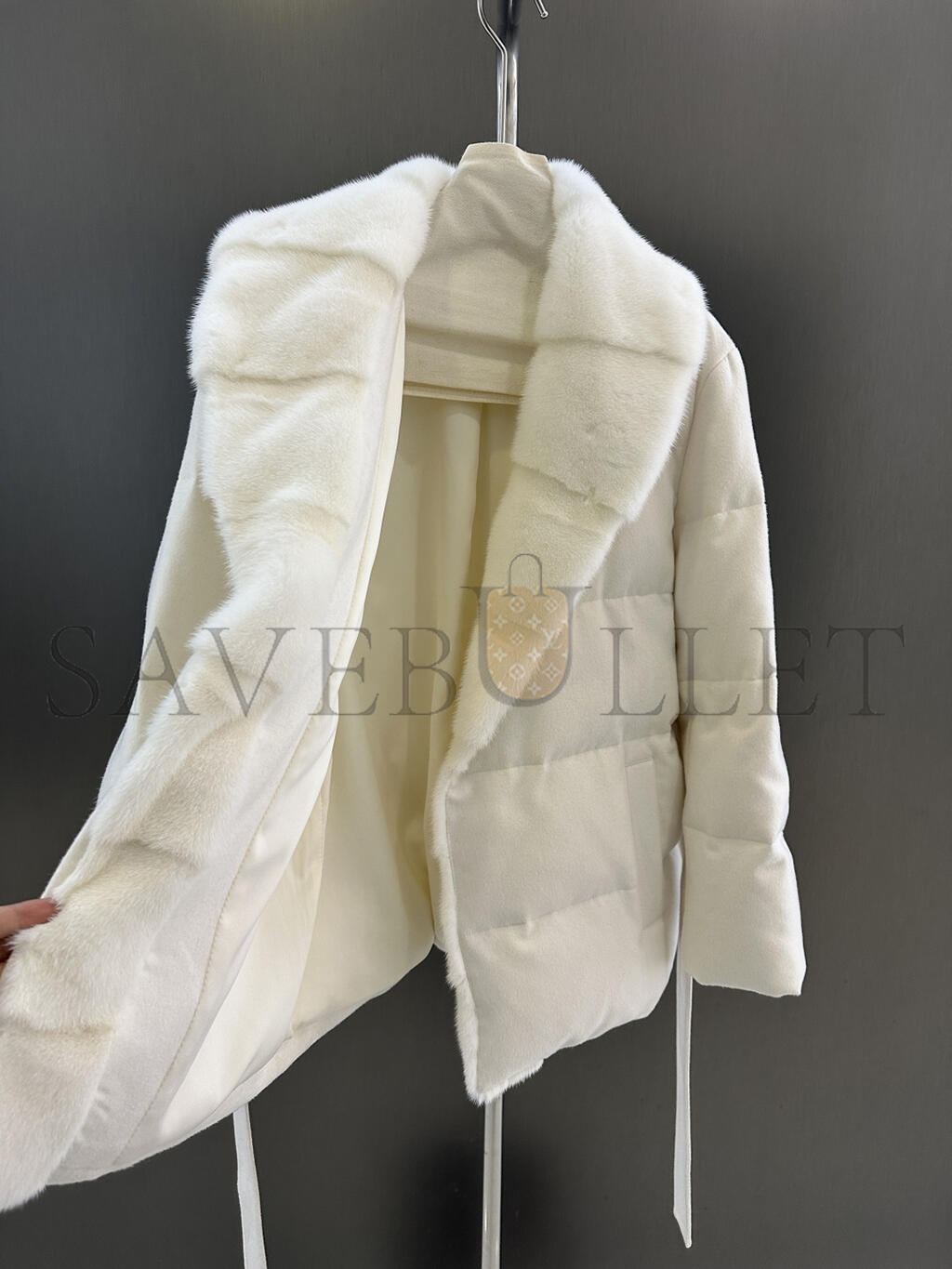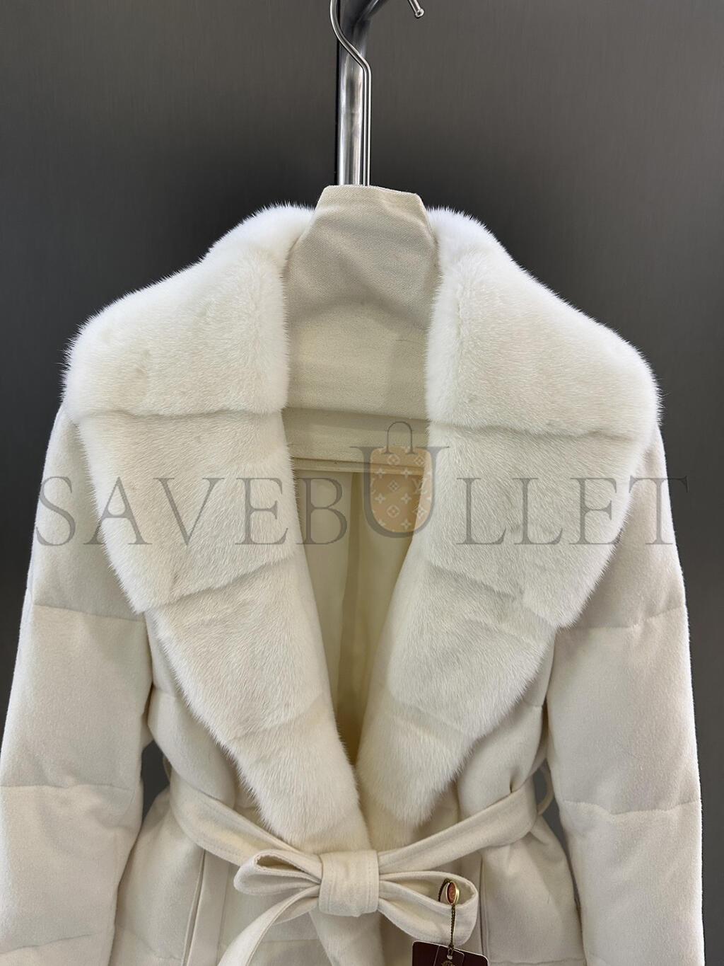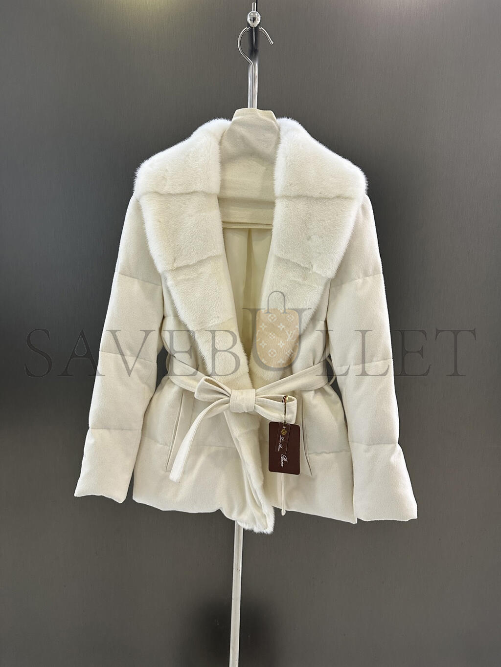 LORO PIANA MINK COLLAR BELTED DOWN JACKET