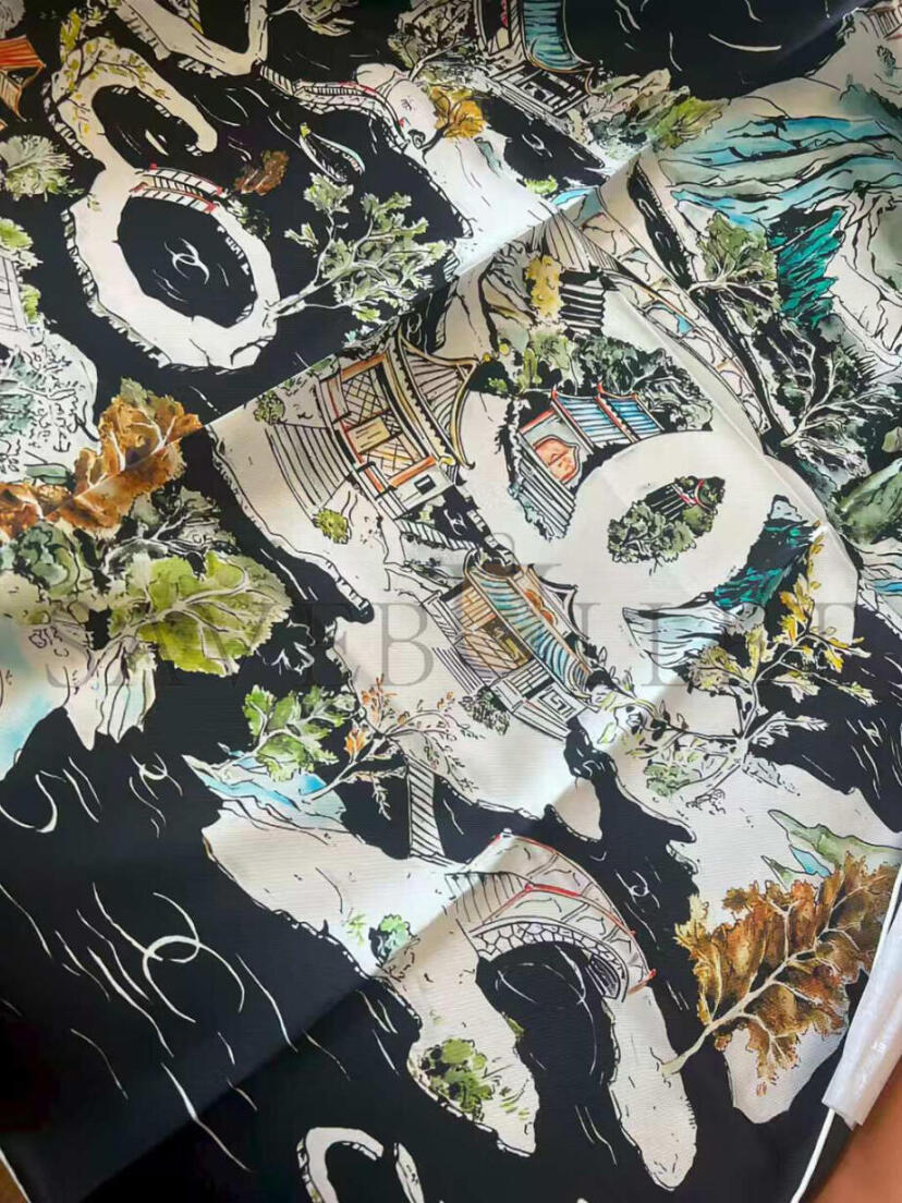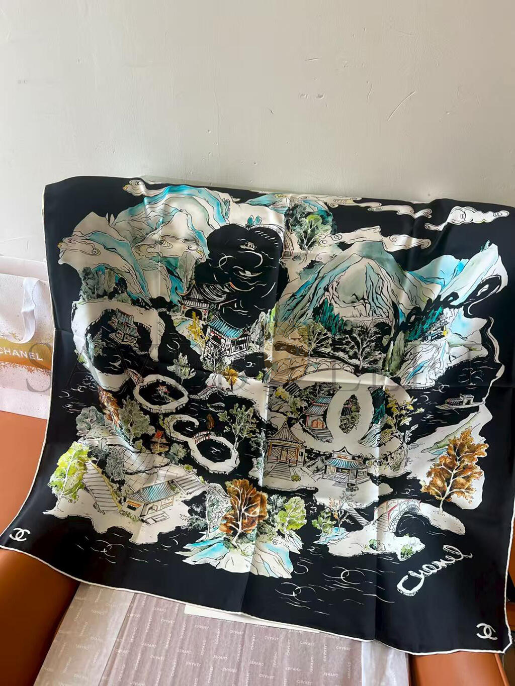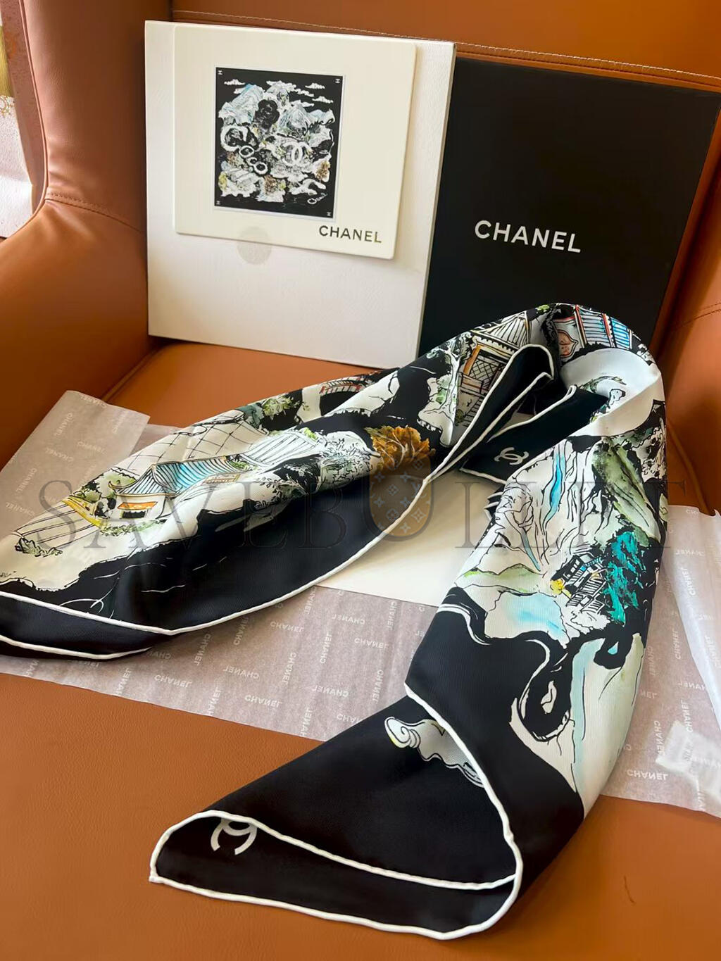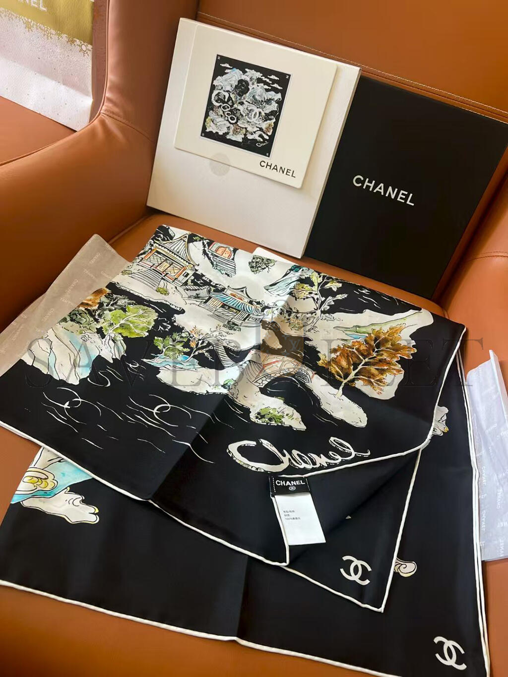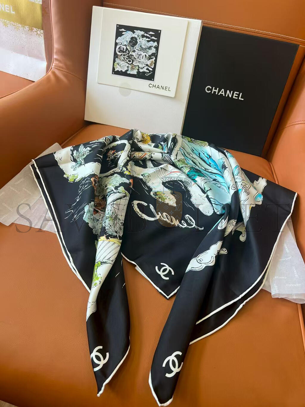 CHANEL SQUARE SCARF SILK TWILL BLACK, MULTICOLOR & WHITE AAB102 (90*90cm)