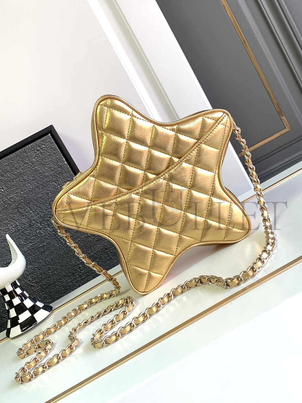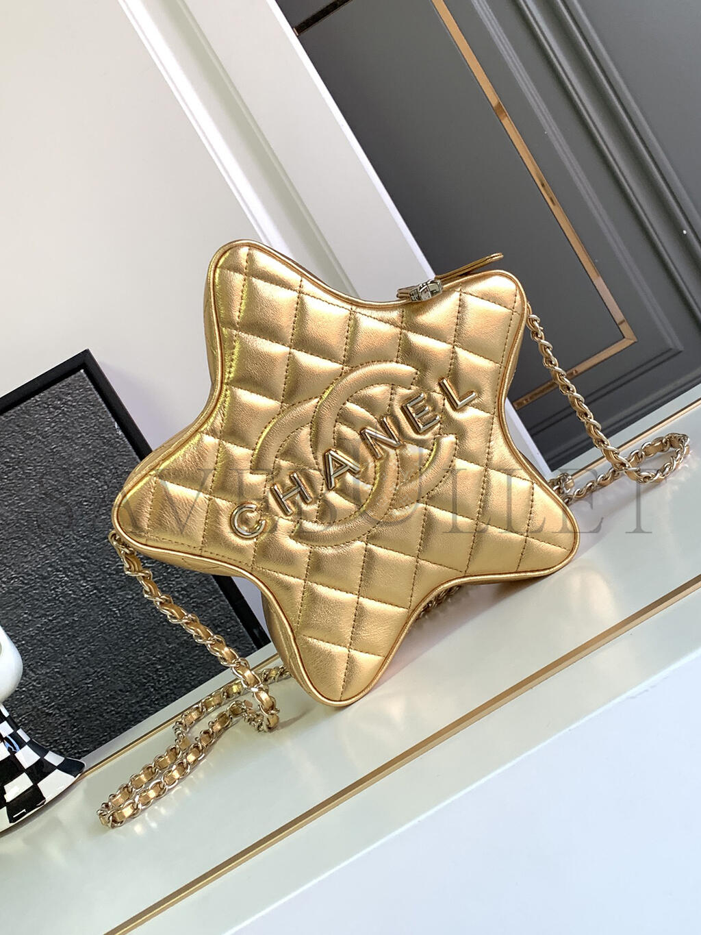 CHANEL METALLIC GOLD LEATHER WALK OF FAME STAR CROSSBODY BAG AS4579 (22.5*22.5*6cm)