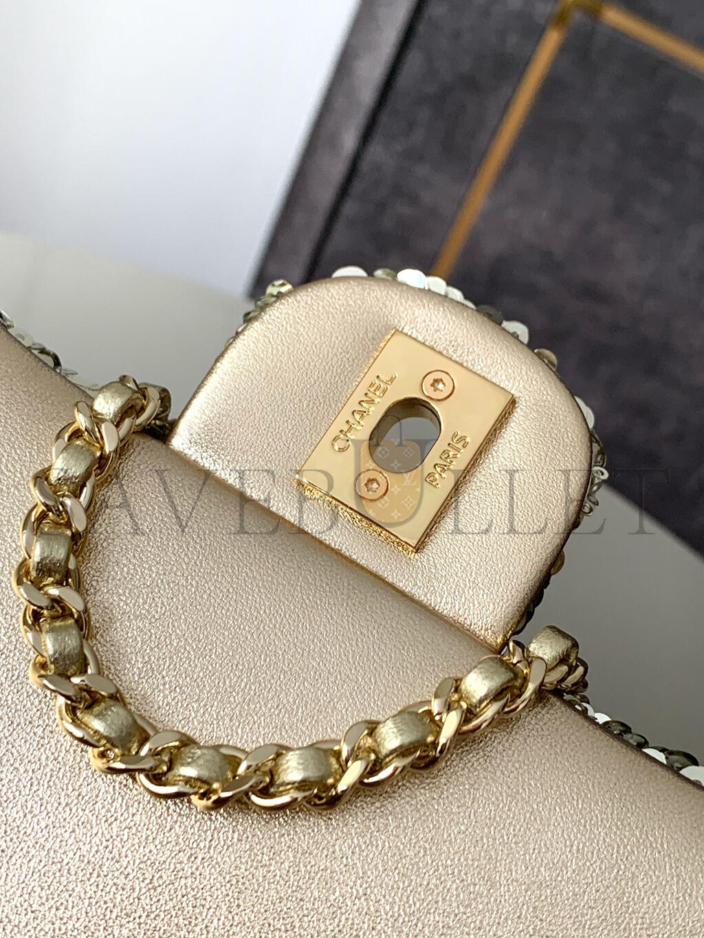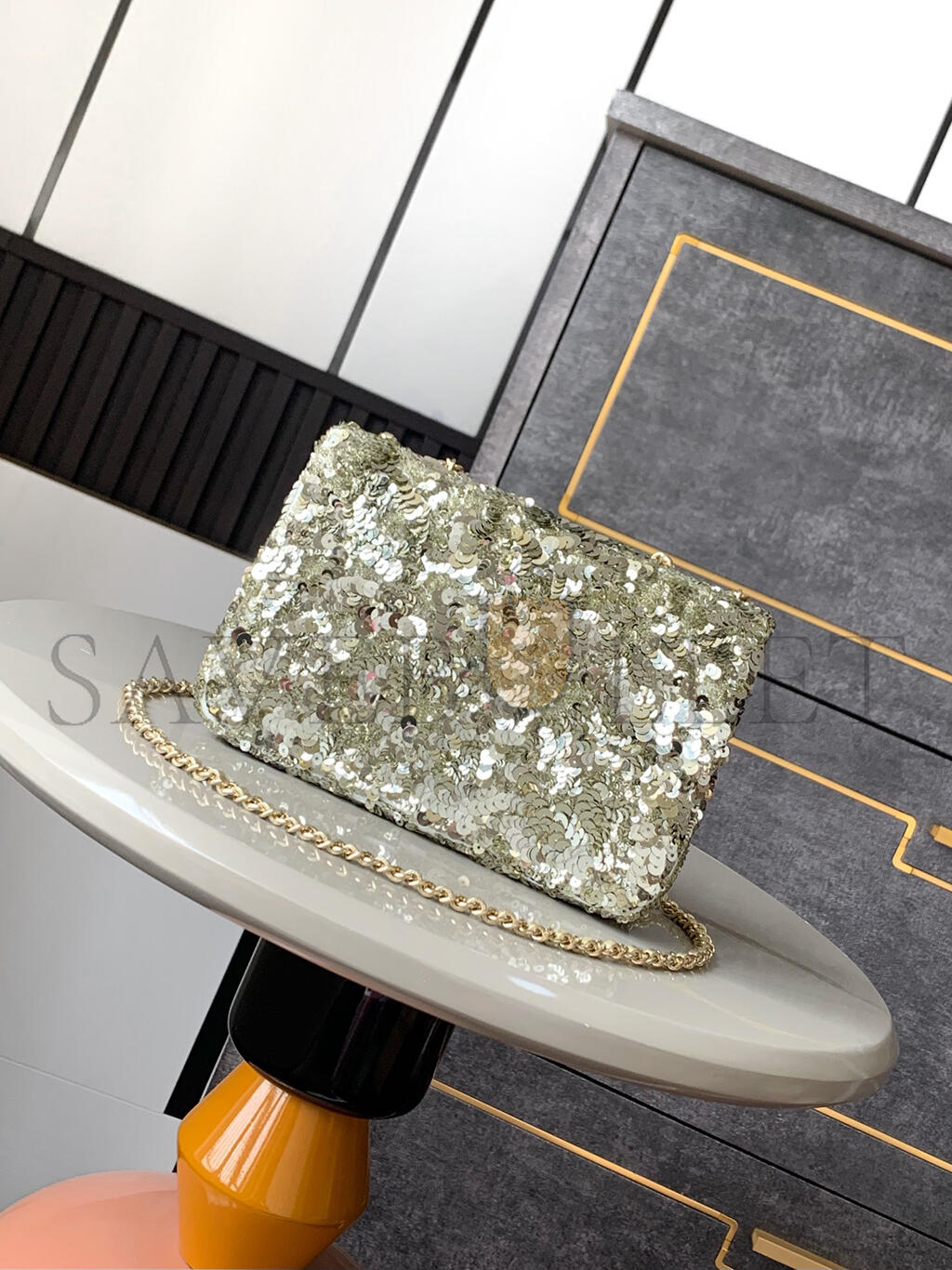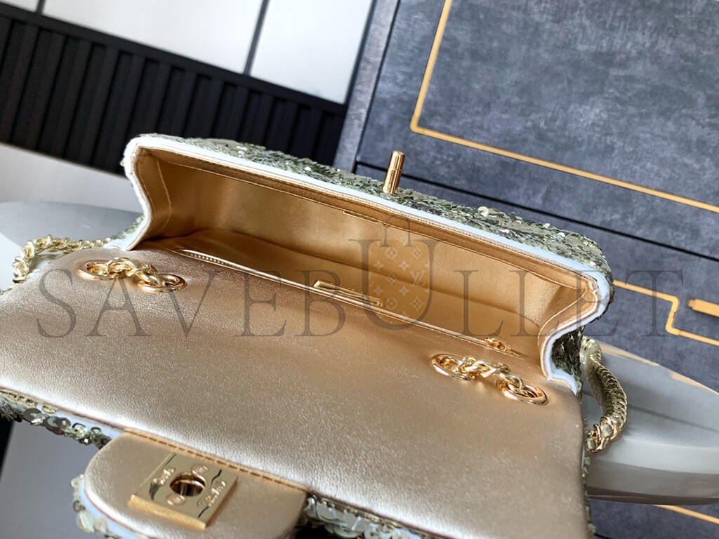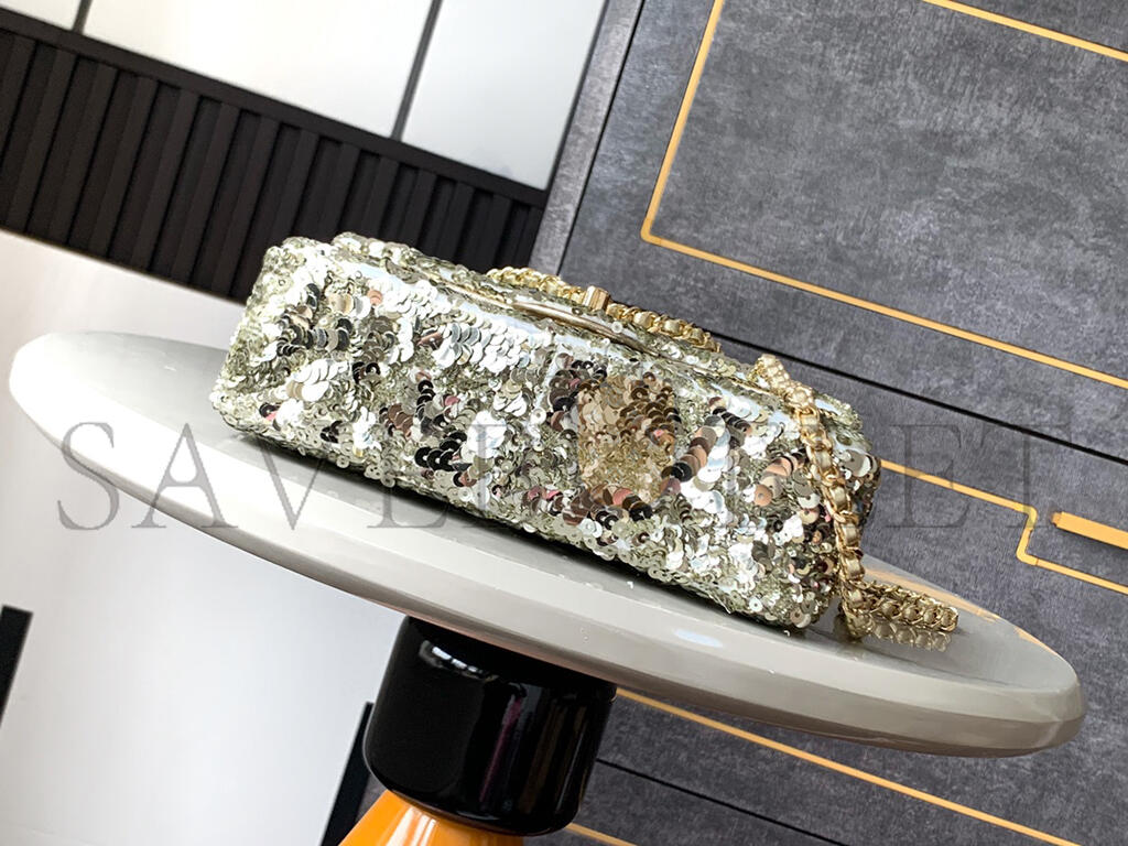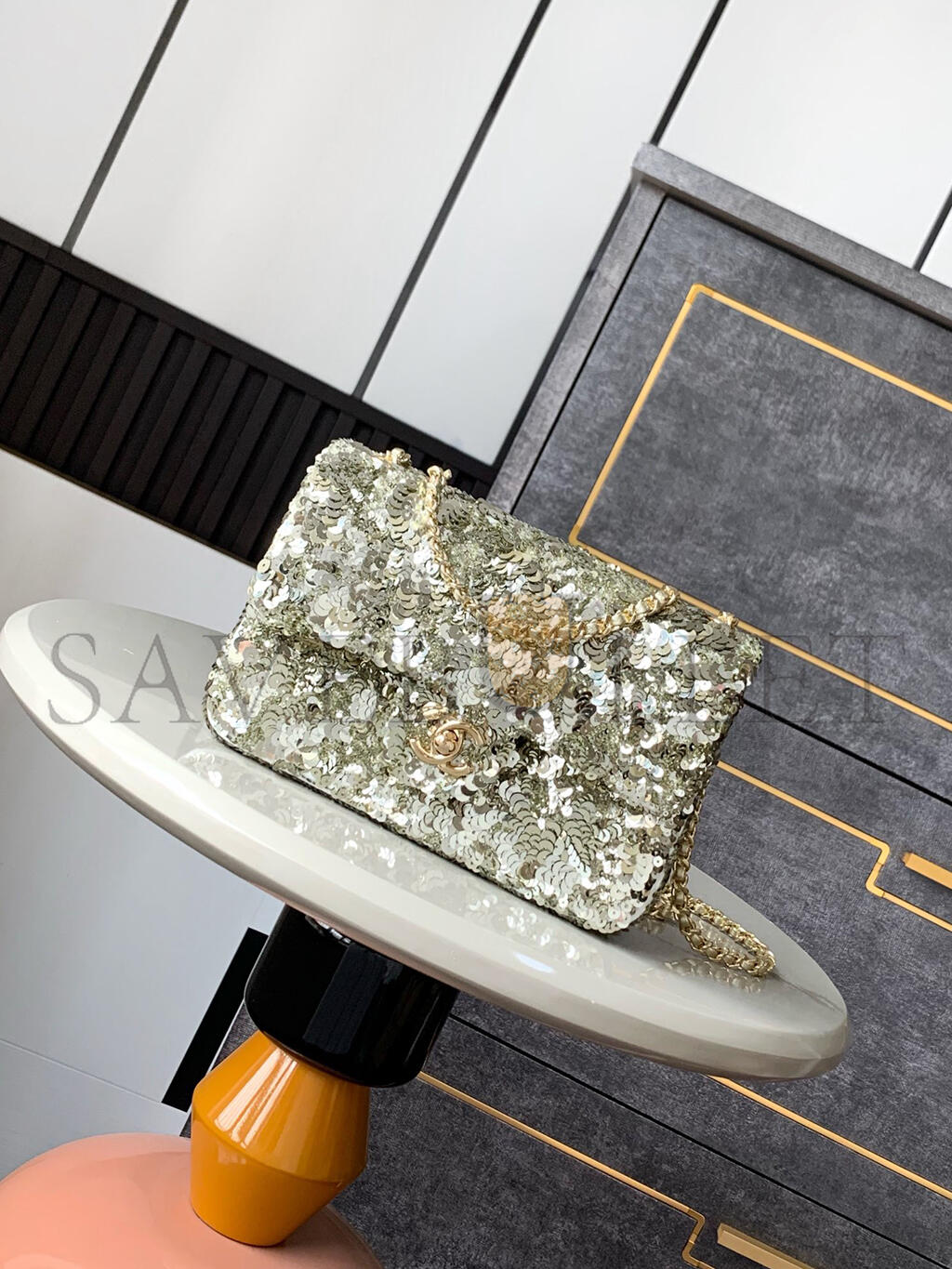 CHANEL FLAP BAG SEQUINS & GOLD-TONE METAL GOLDEN AS4561 (21*14*8cm)